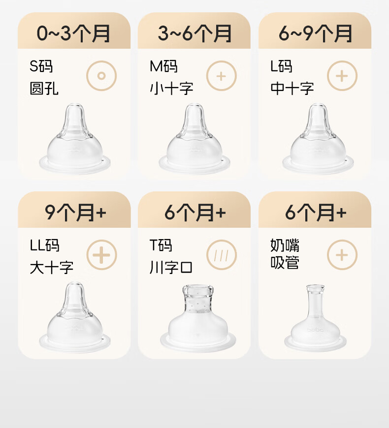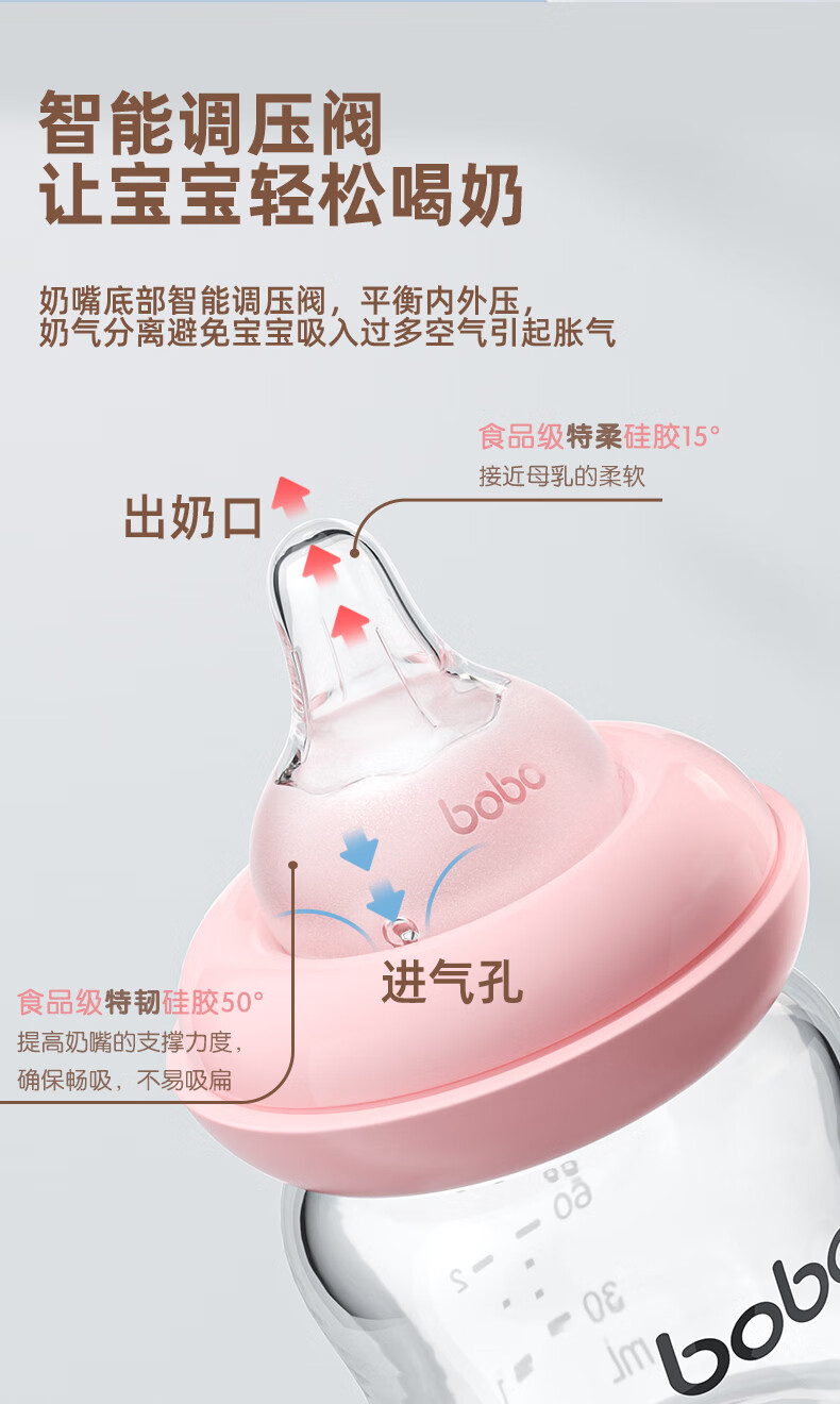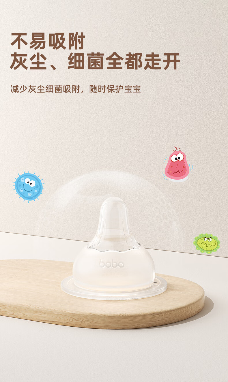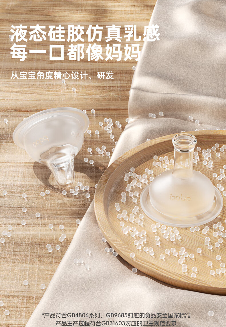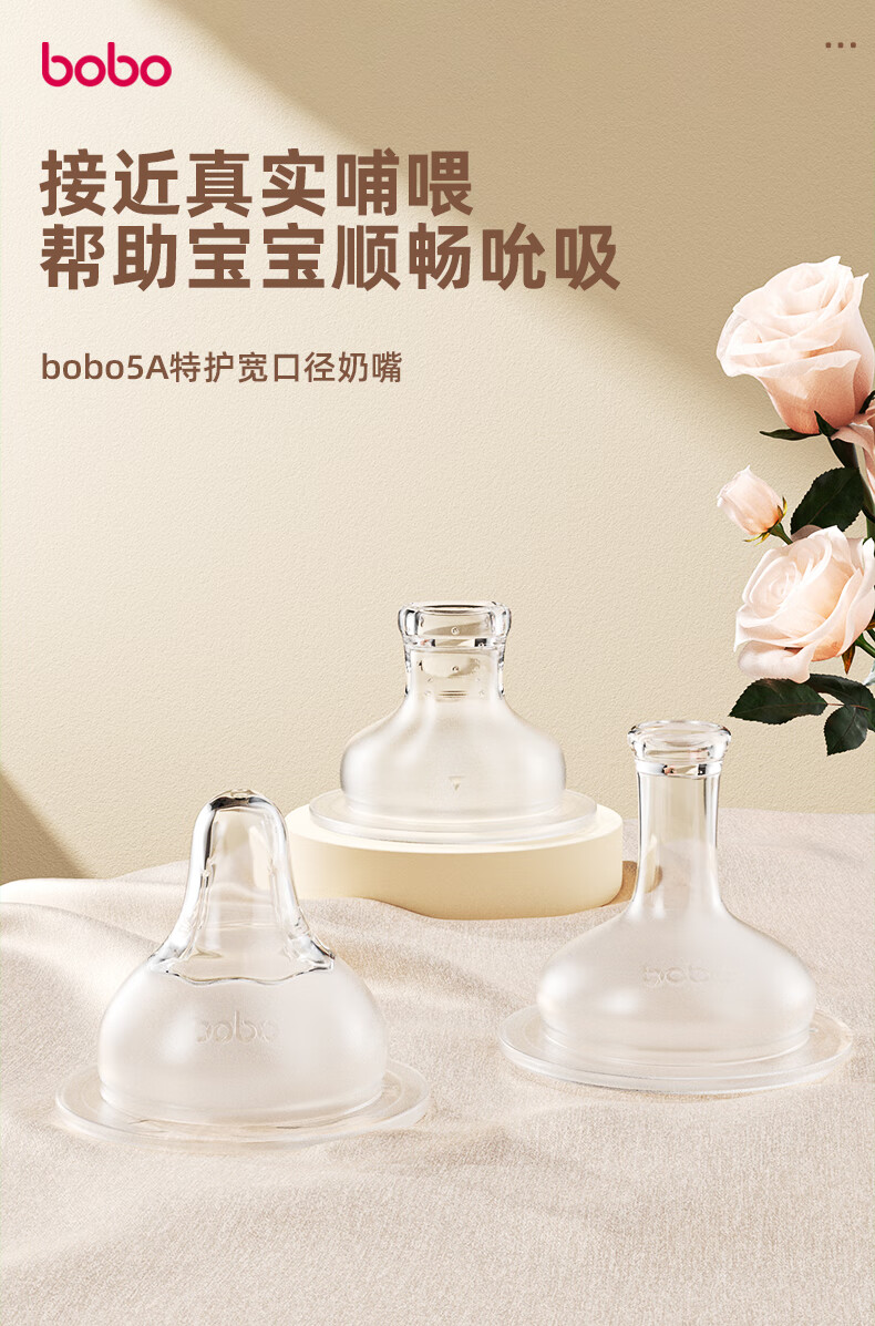 bobo奶嘴宽口径自然实感仿真母乳5A防呛婴儿奶嘴食品级硅胶 M号 3-6月 1只装