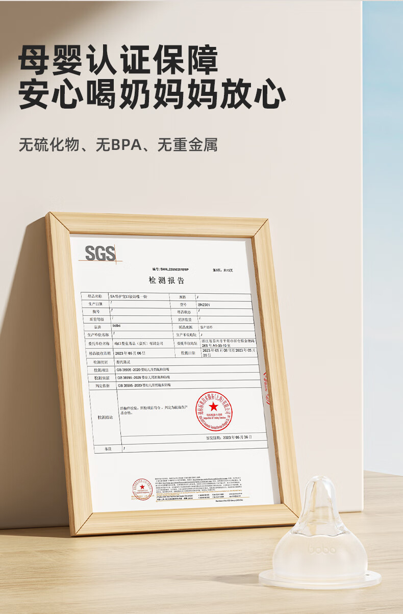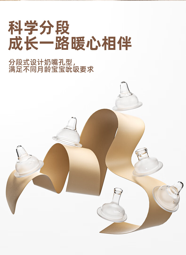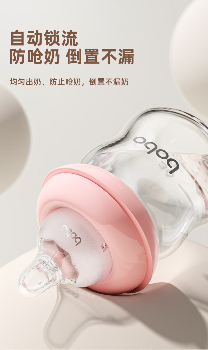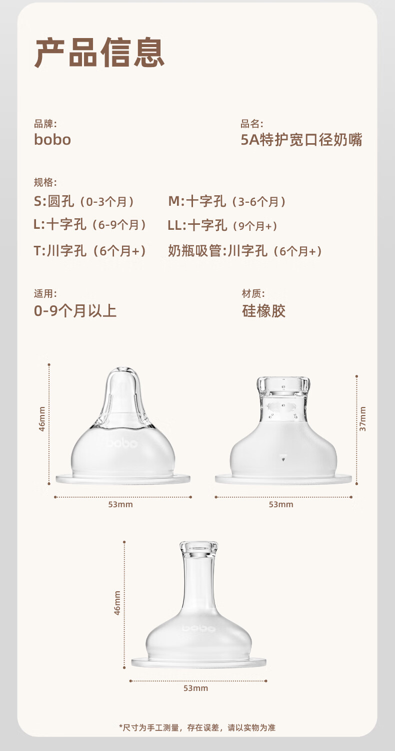 bobo奶嘴宽口径自然实感仿真母乳5A防呛婴儿奶嘴食品级硅胶 M号 3-6月 1只装