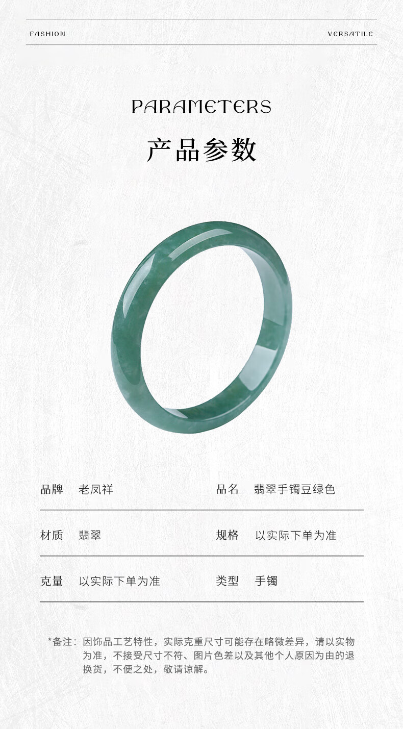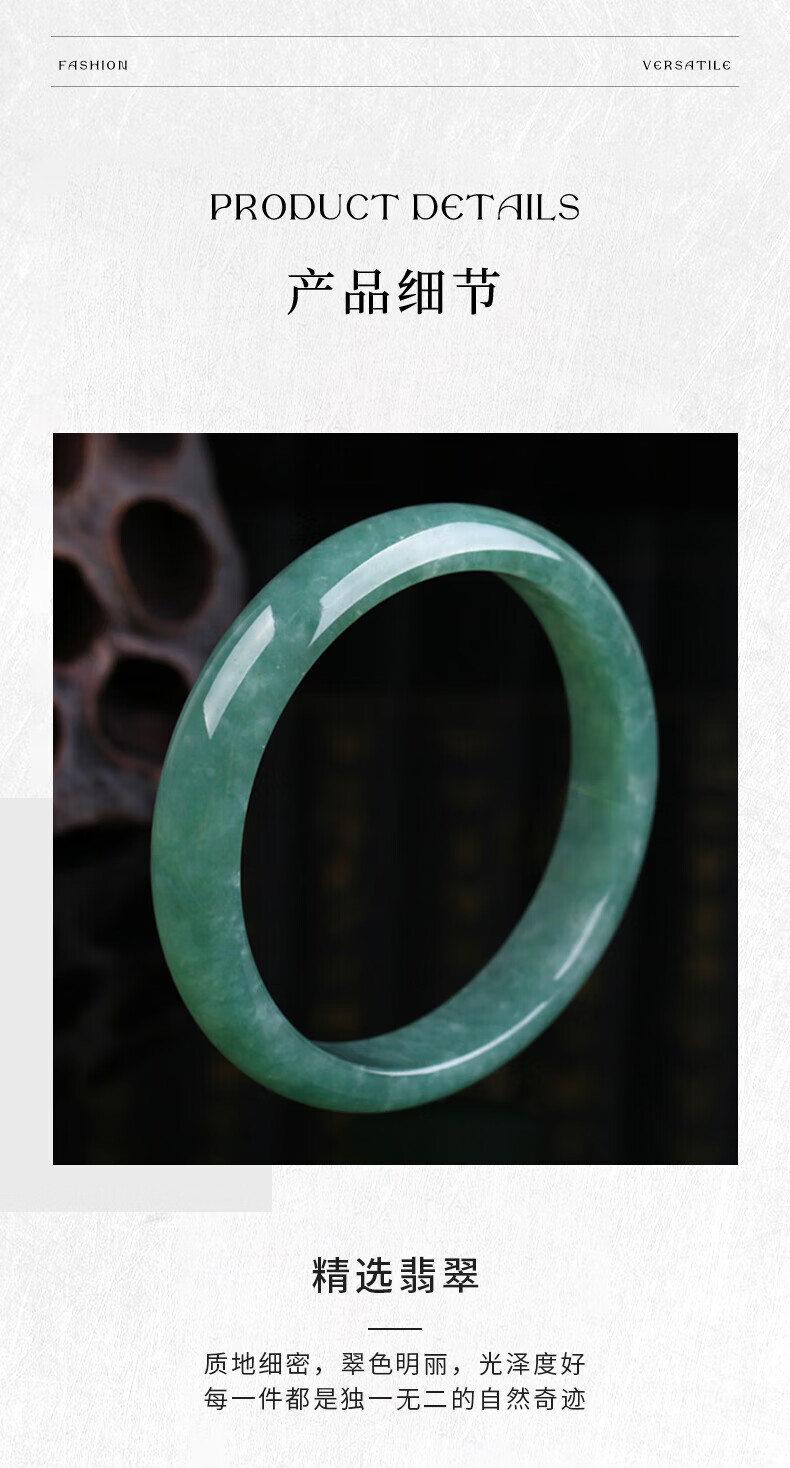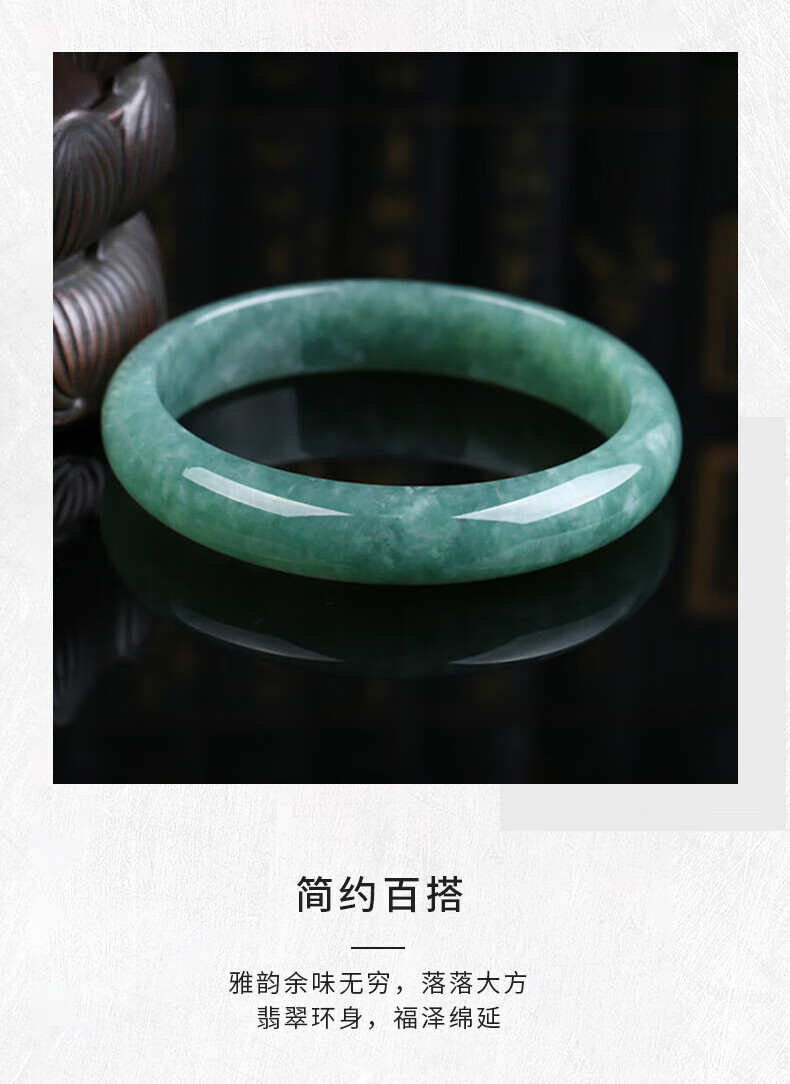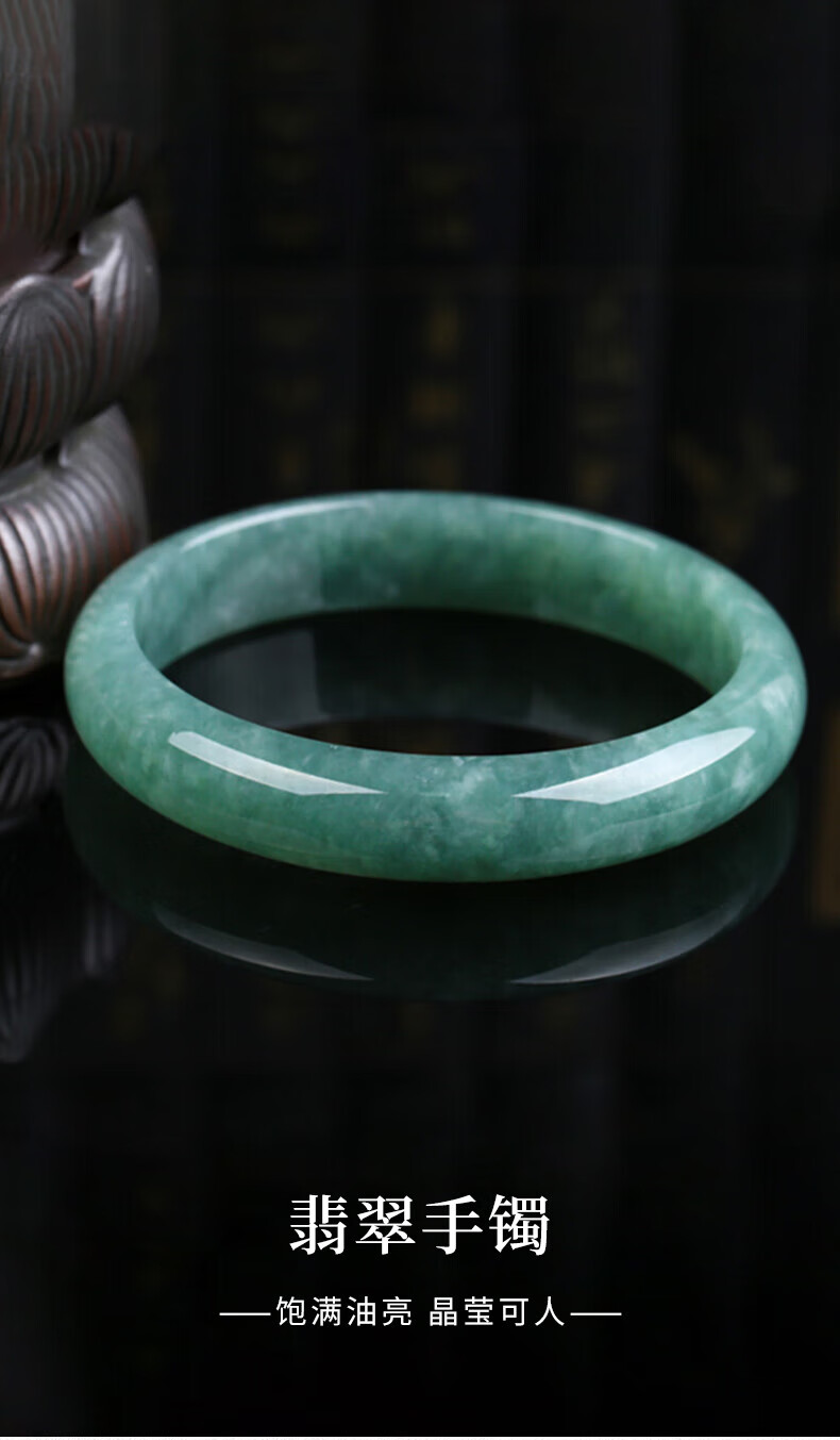 老凤祥翡翠手镯女款油青色平安镯玉手镯送女友老婆圣诞节情人节生日礼物 #60-#62