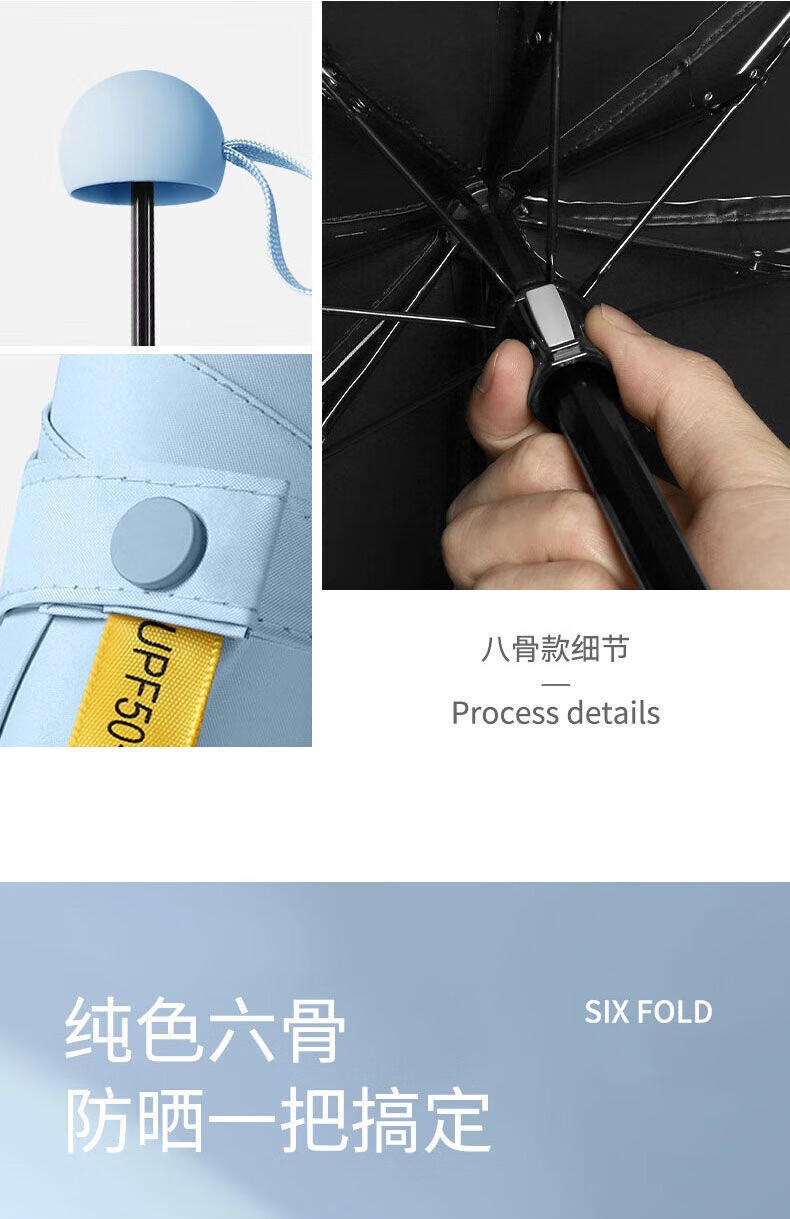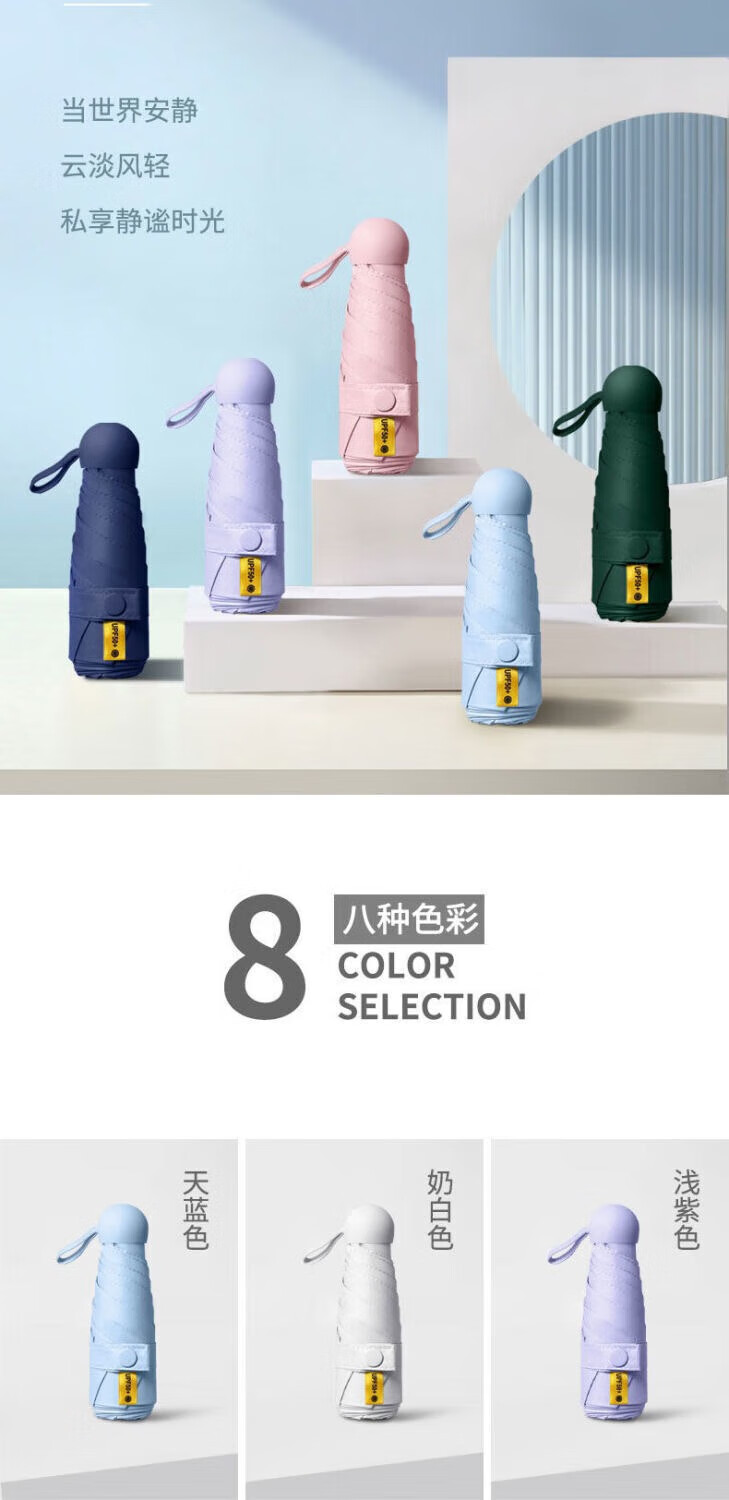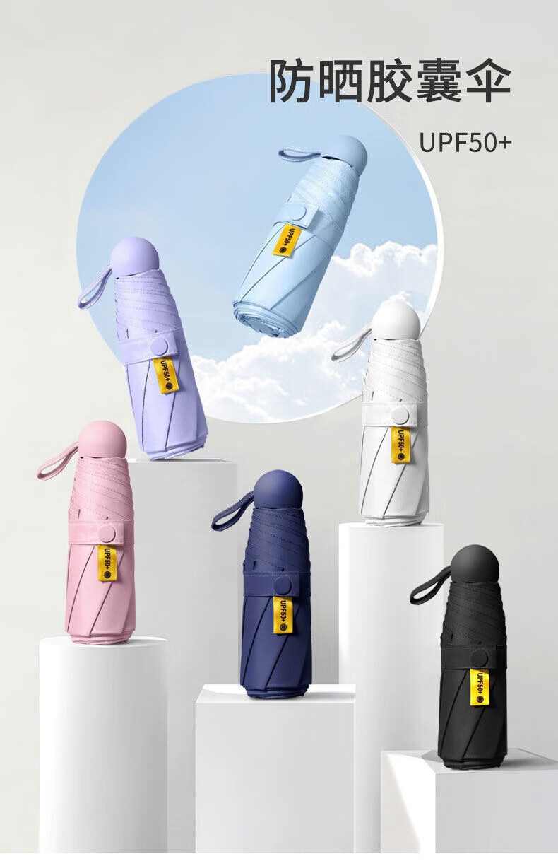 【已验货】胶囊太阳伞女晴雨两用遮阳防晒小巧便携折叠五折迷你雨 便携胶囊雨伞-6骨忘机蓝 一把装