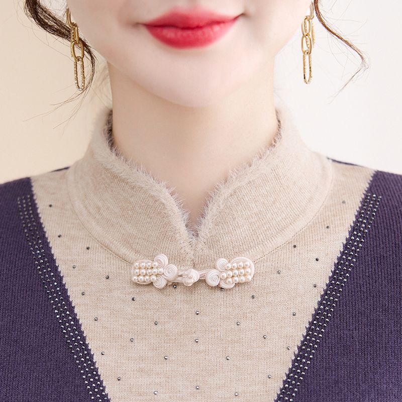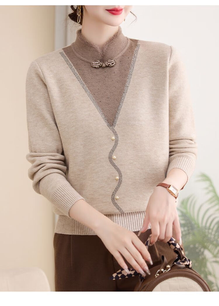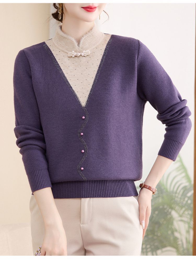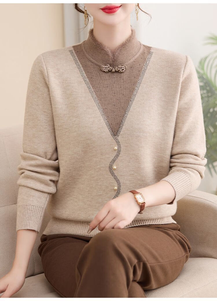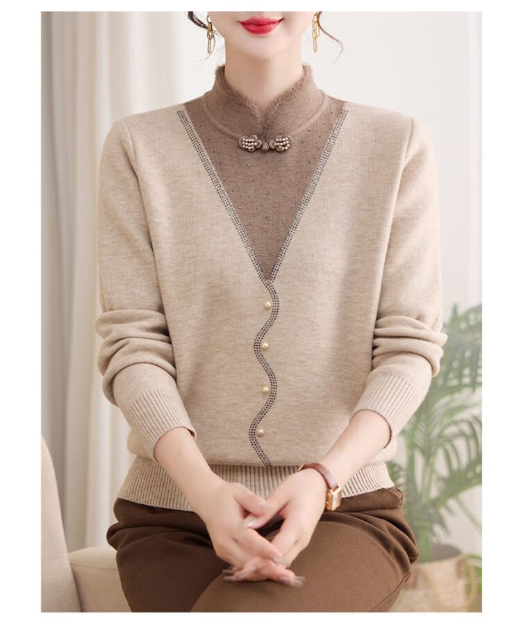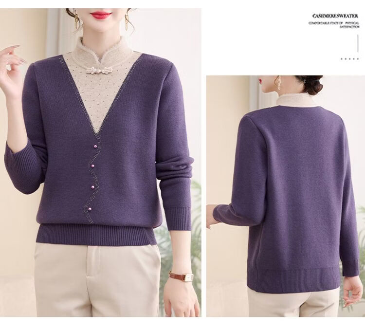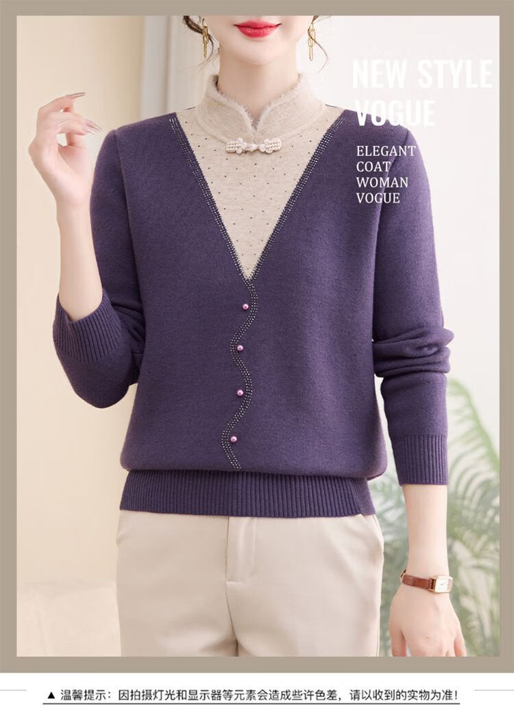 妈妈秋冬国风假两件毛衣一体绒针织打底衫新款女装加绒加厚上衣 【25125】安哥拉红 加绒 XL 建议90-110斤