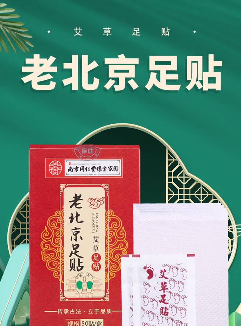 南京同仁堂艾草足贴草本湿气贴助眠贴足部养护足底艾贴 1盒50贴