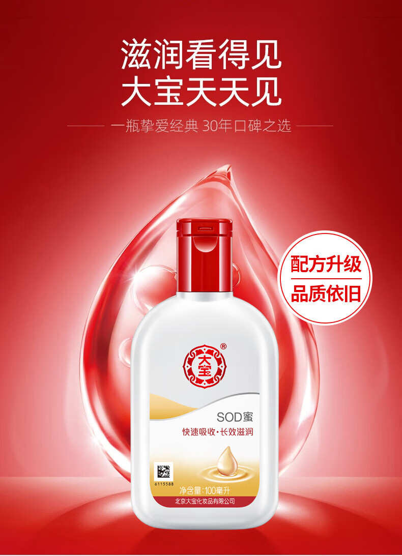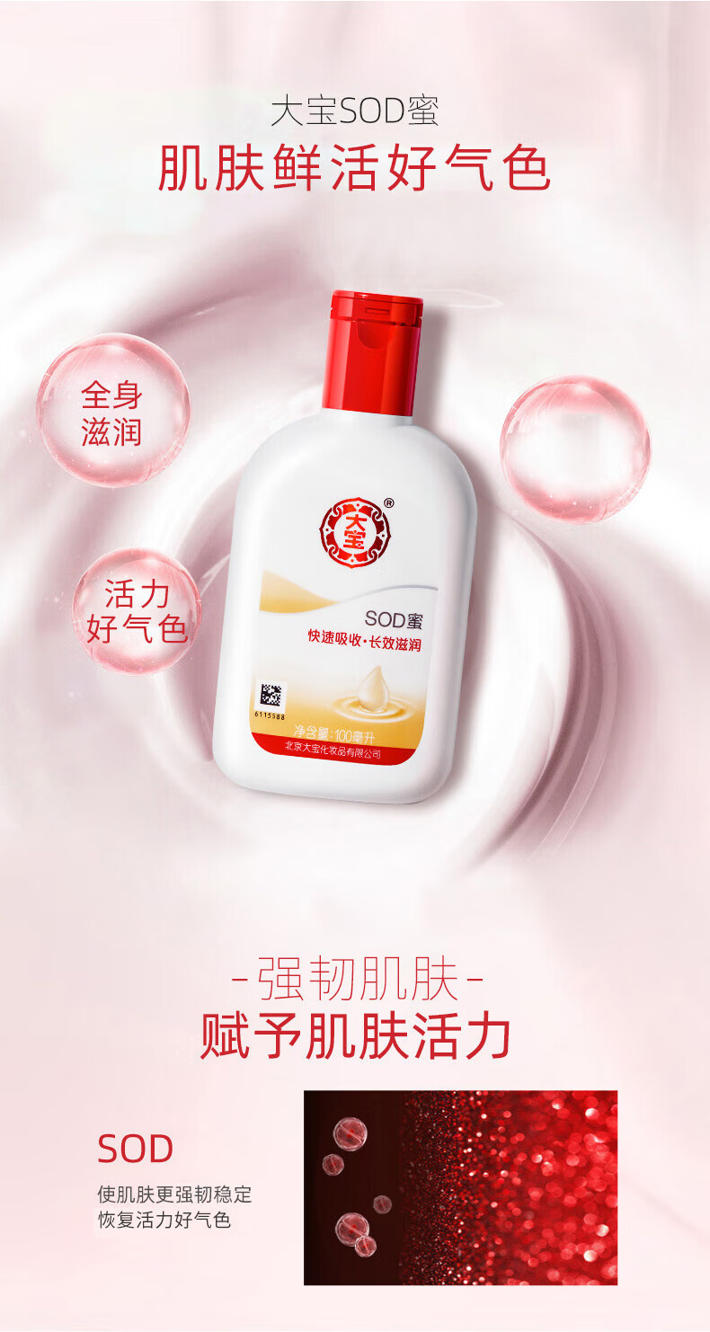 大宝SOD乳液男女士学生补水滋润秋冬懒人润肤乳全身体面脸部霜蜜礼物 【买一送一】100ml到手两瓶