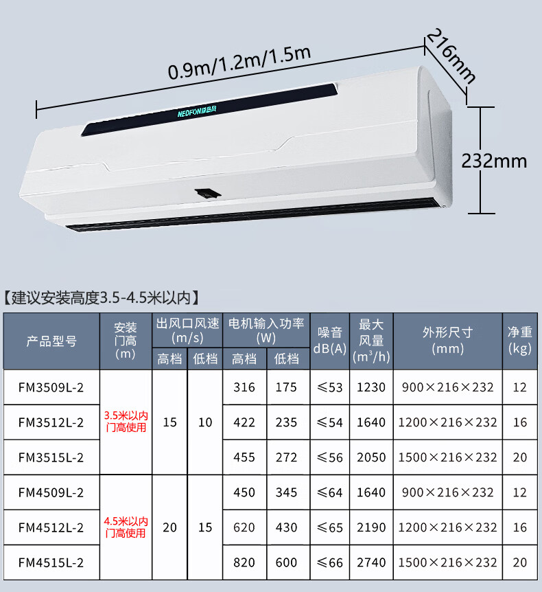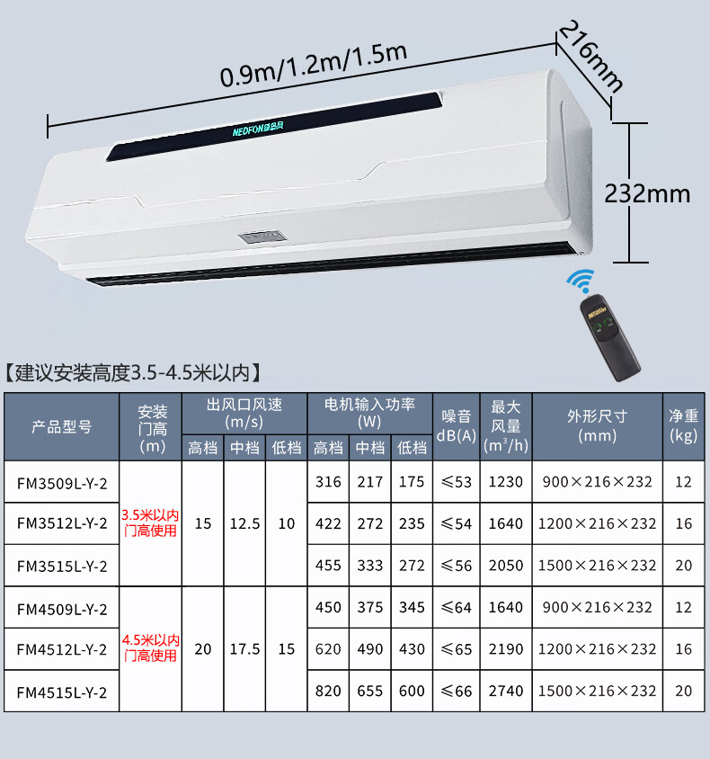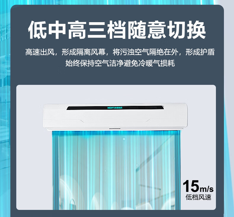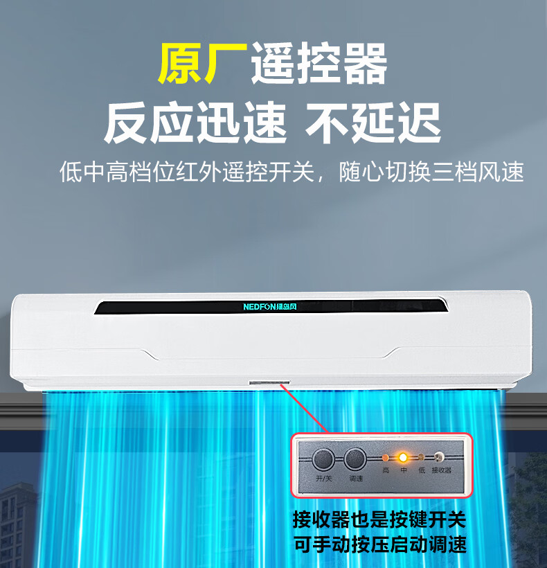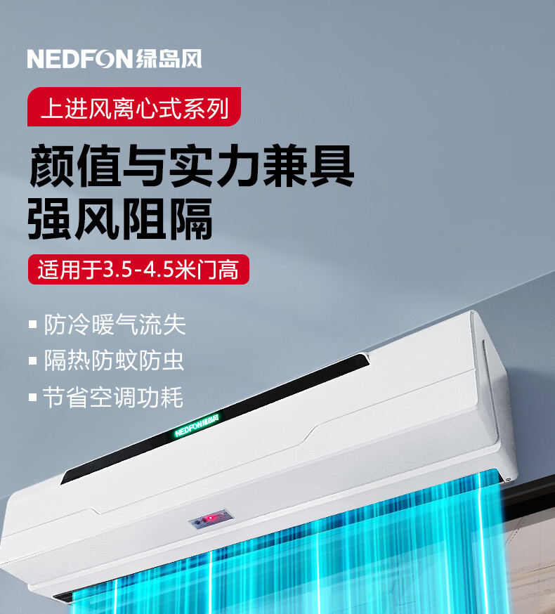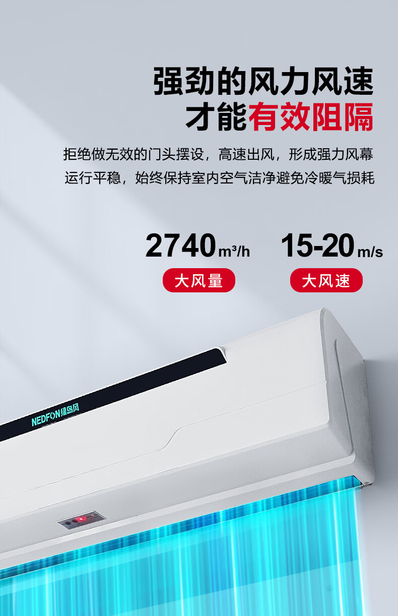 绿岛风(Nedfon) 离心遥控双电机风幕机商超风帘机餐饮店自然风空气幕强劲大风款 (0.9米)开关款FM3509L-2【3.5米高度内】