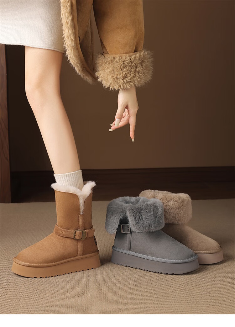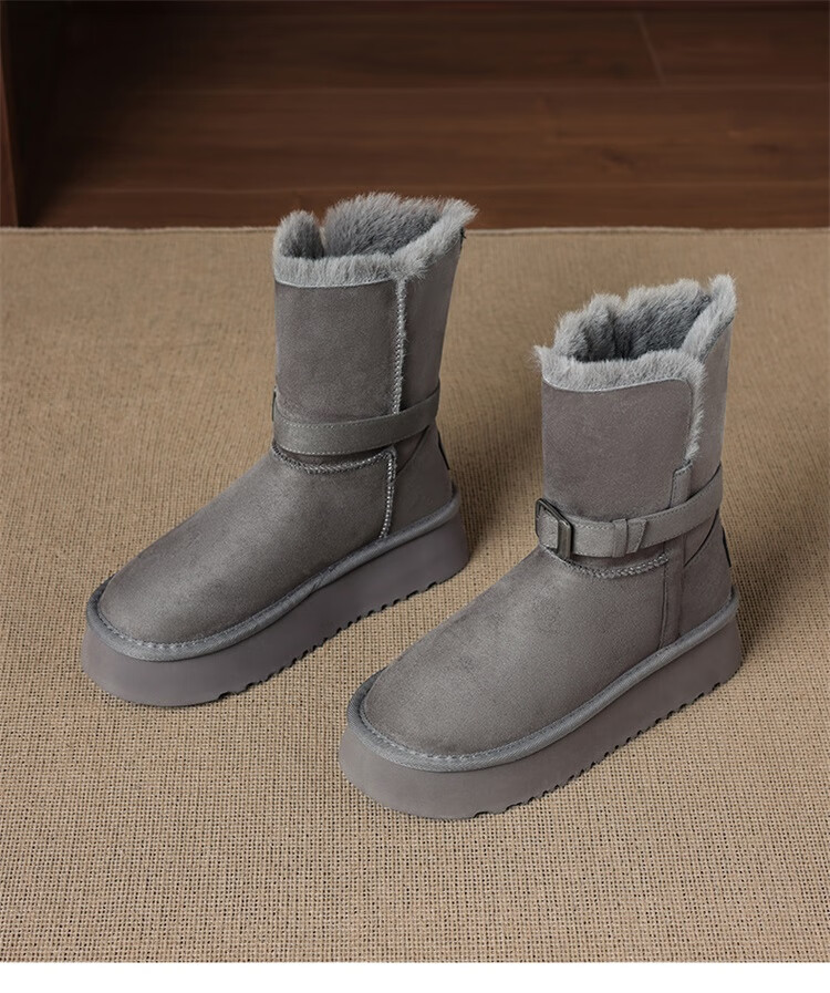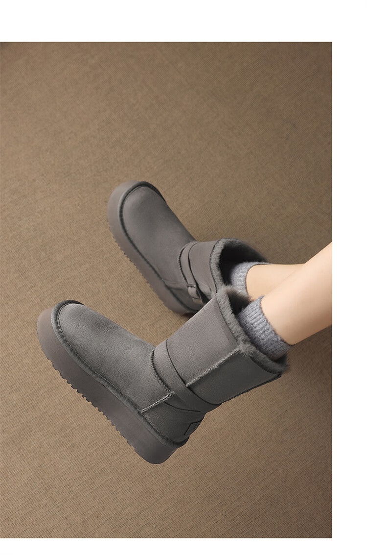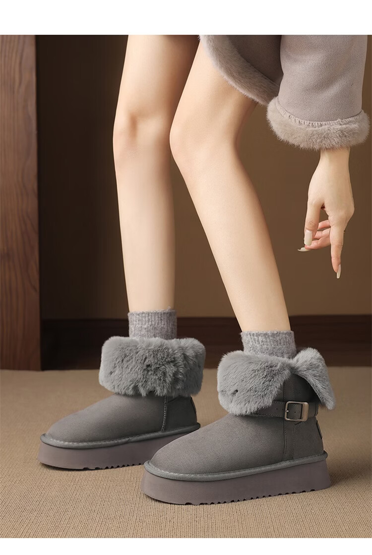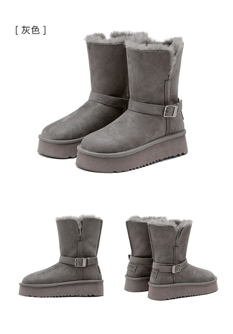 星期六厚底皮毛一体雪地靴女2025新款冬季真皮加绒短靴加厚保暖毛毛棉鞋 灰色 【加绒保暖】跟高4.5cm 38