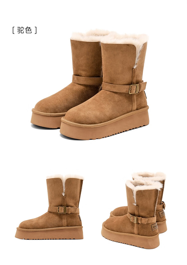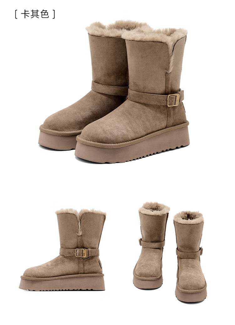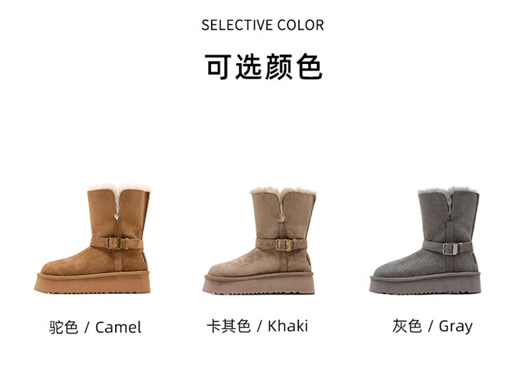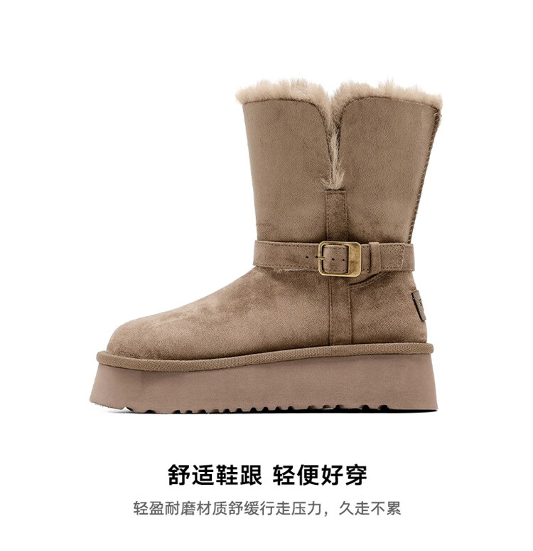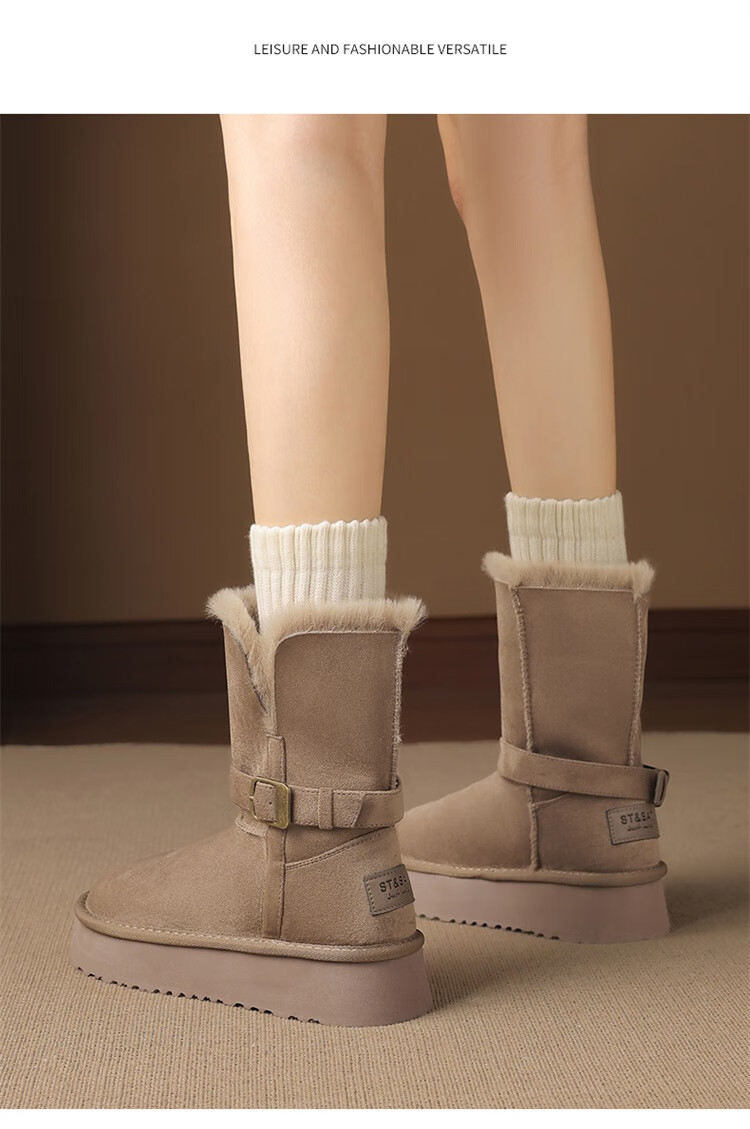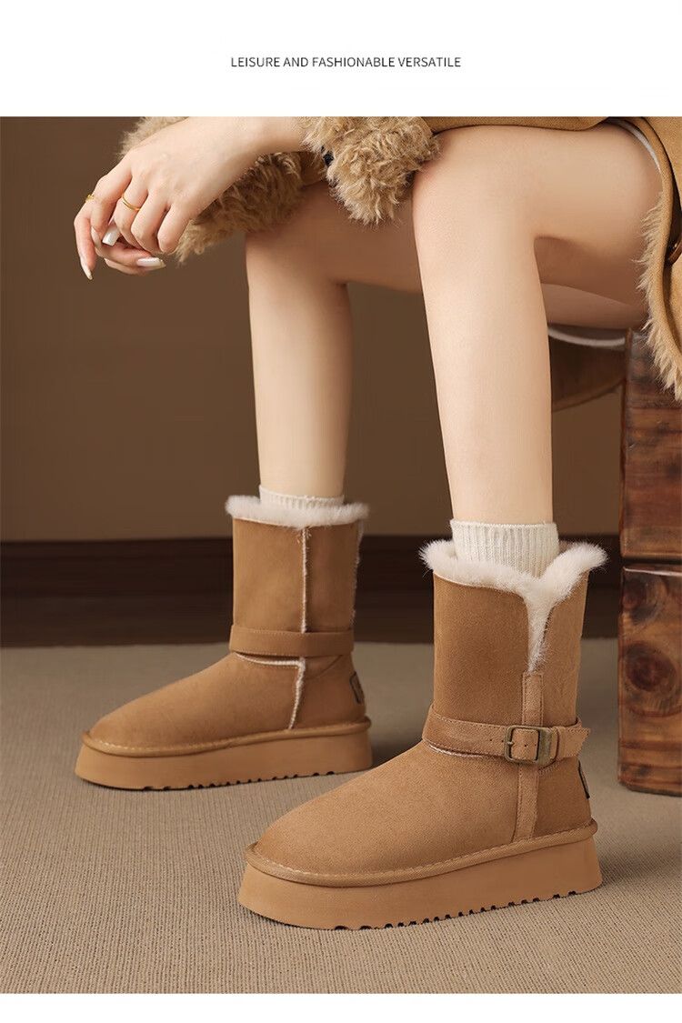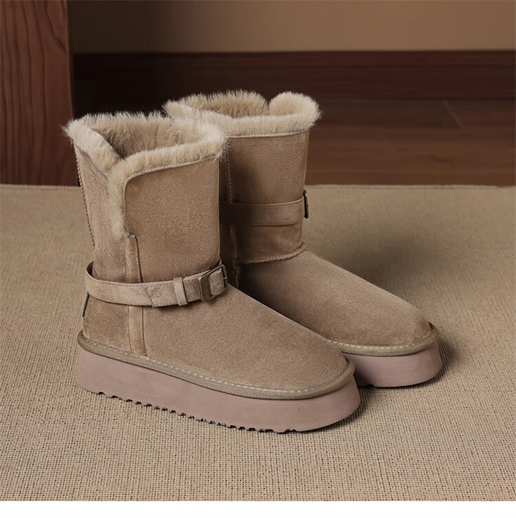 星期六雪地靴女款冬季加绒加厚2025新款真皮羊毛厚底增高防滑毛毛棉鞋女 卡其色 【牛剖层皮革】【上口羊毛】 37