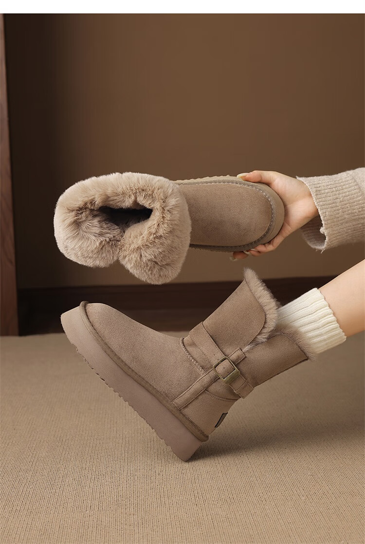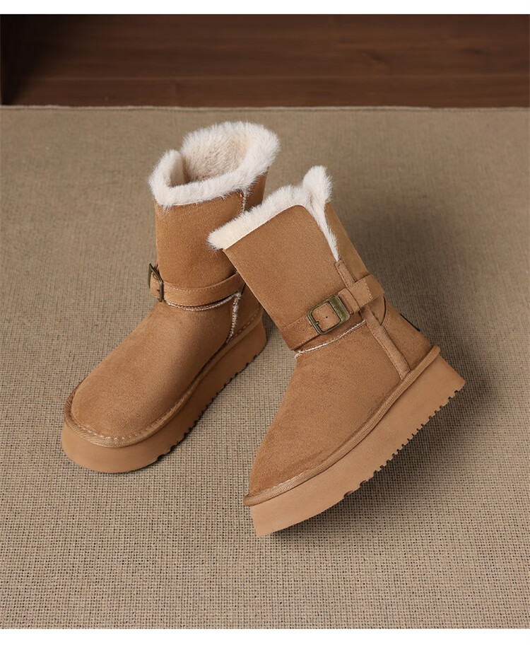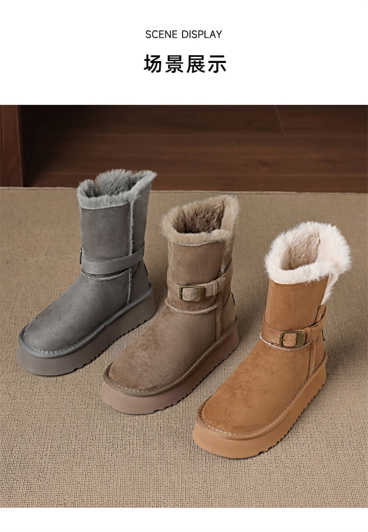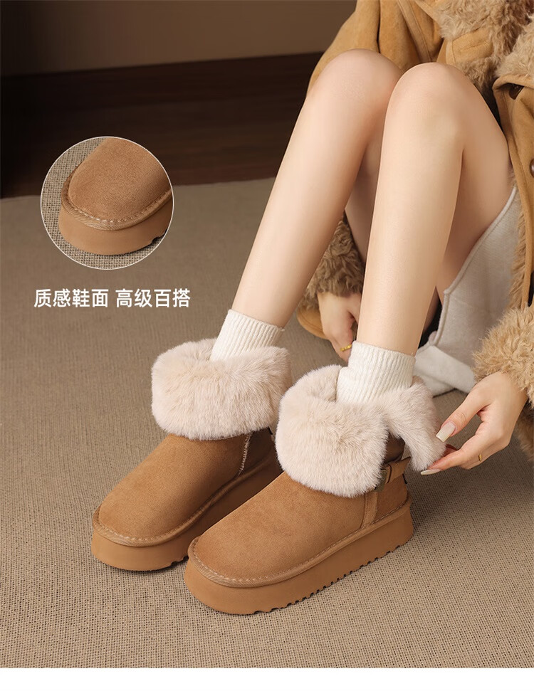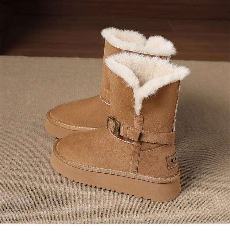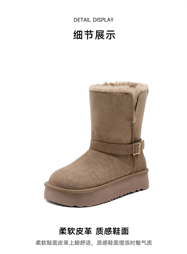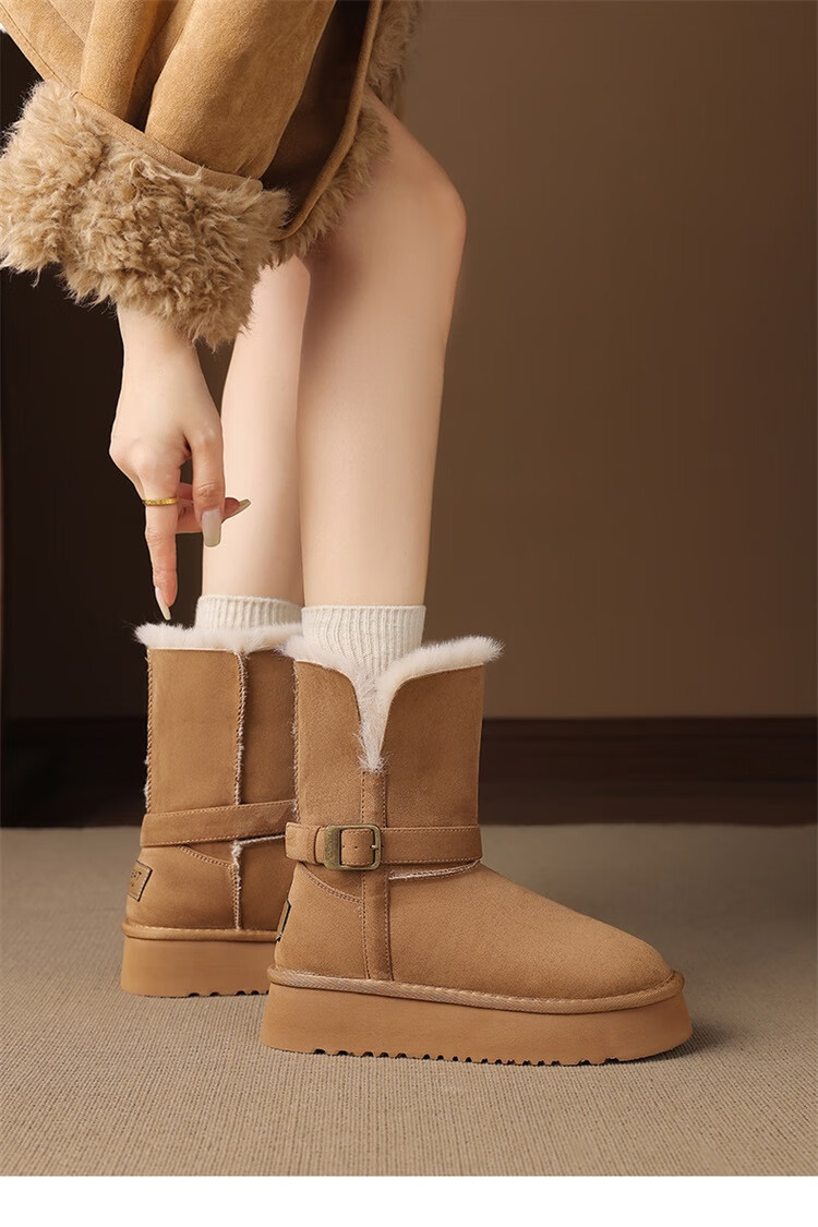星期六雪地靴女款冬季加绒加厚2025新款真皮羊毛厚底增高防滑毛毛棉鞋女 卡其色 【牛剖层皮革】【上口羊毛】 37