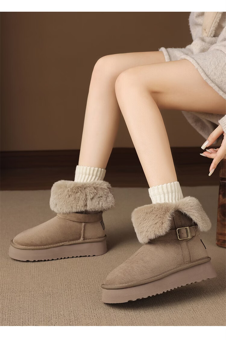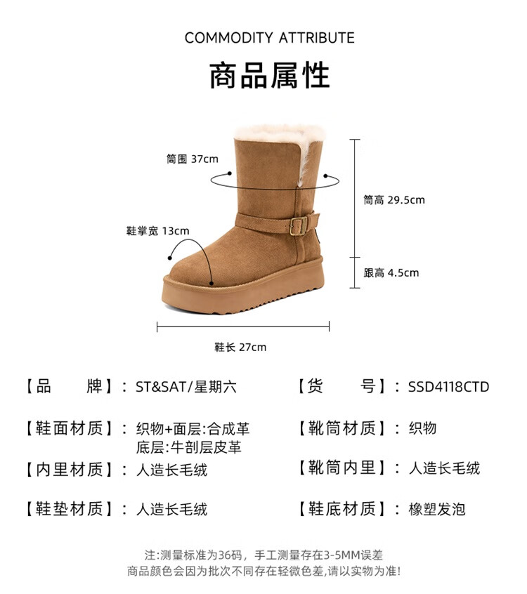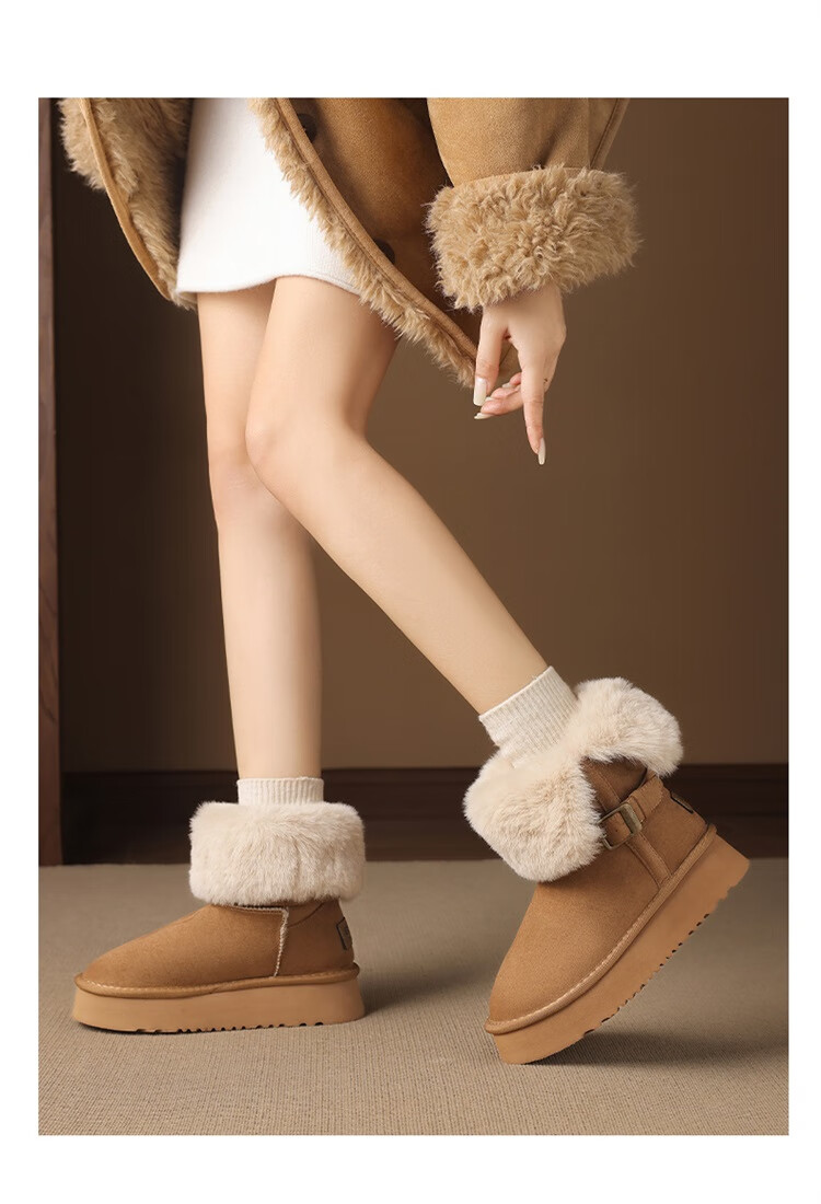 星期六加绒厚底雪地靴女款2025新款冬季棕色复古保暖短靴小个子增高棉鞋 驼色 【加绒加厚】跟高3cm 39