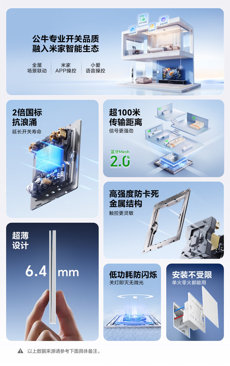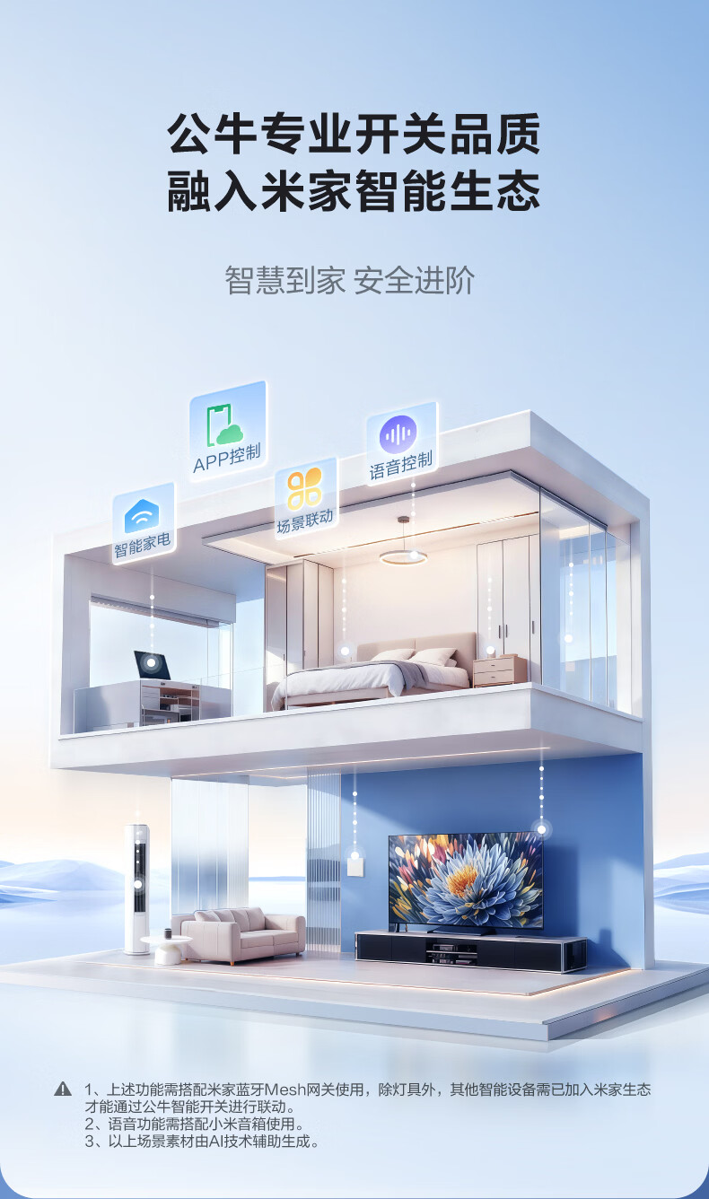 公牛智能开关灵犀G57超薄智能开关单零火米家APP小爱音箱语音控制旗舰 超薄【单火/零火】二位智能开关-暮雪白