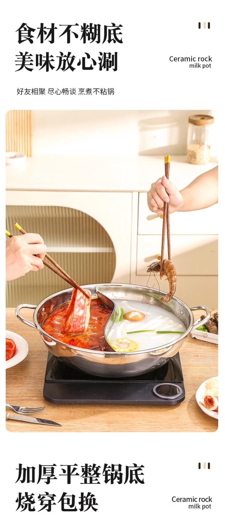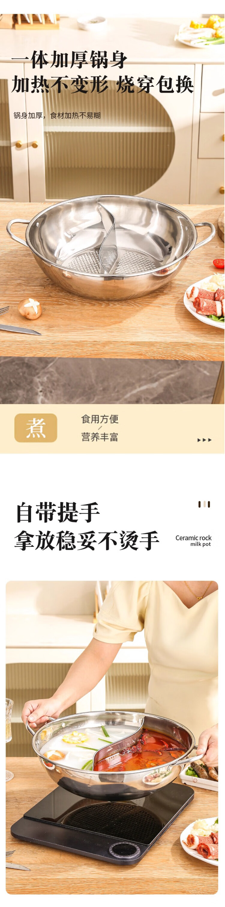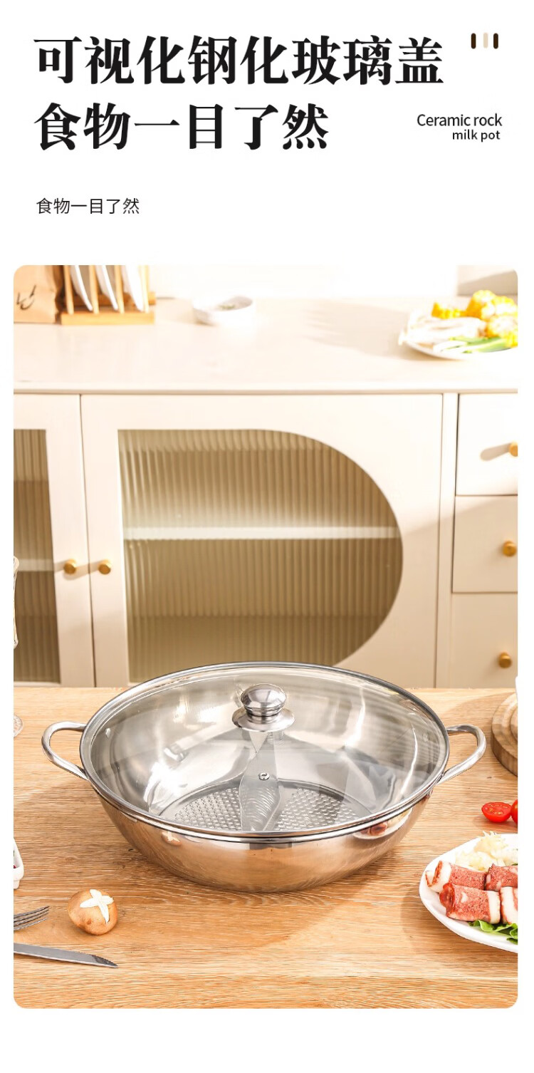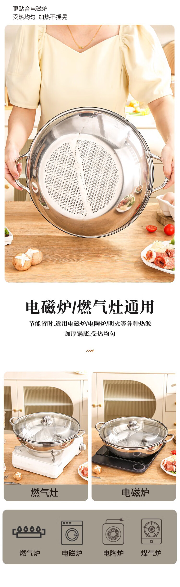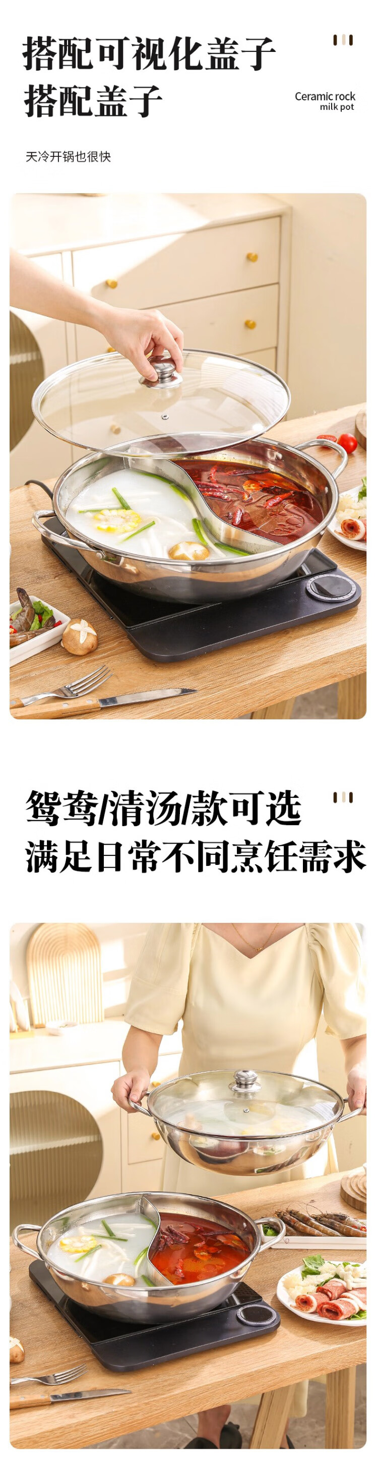 简漾不锈钢鸳鸯锅电磁炉专用家用火锅锅具单锅火锅盆2025年新款清汤锅 36cm+玻璃盖 1英寸