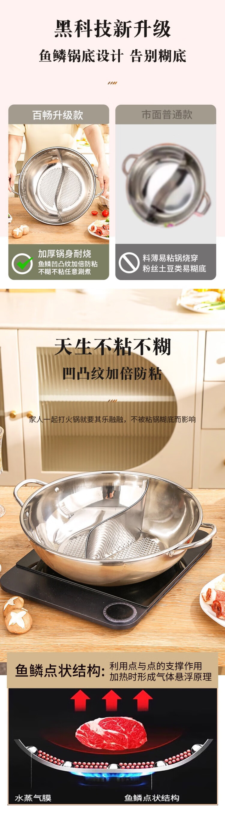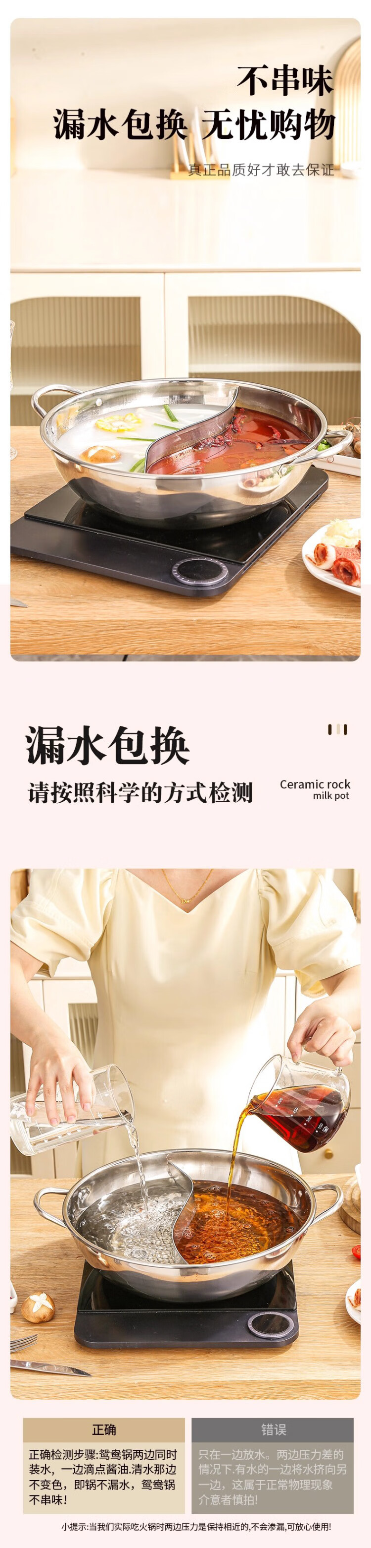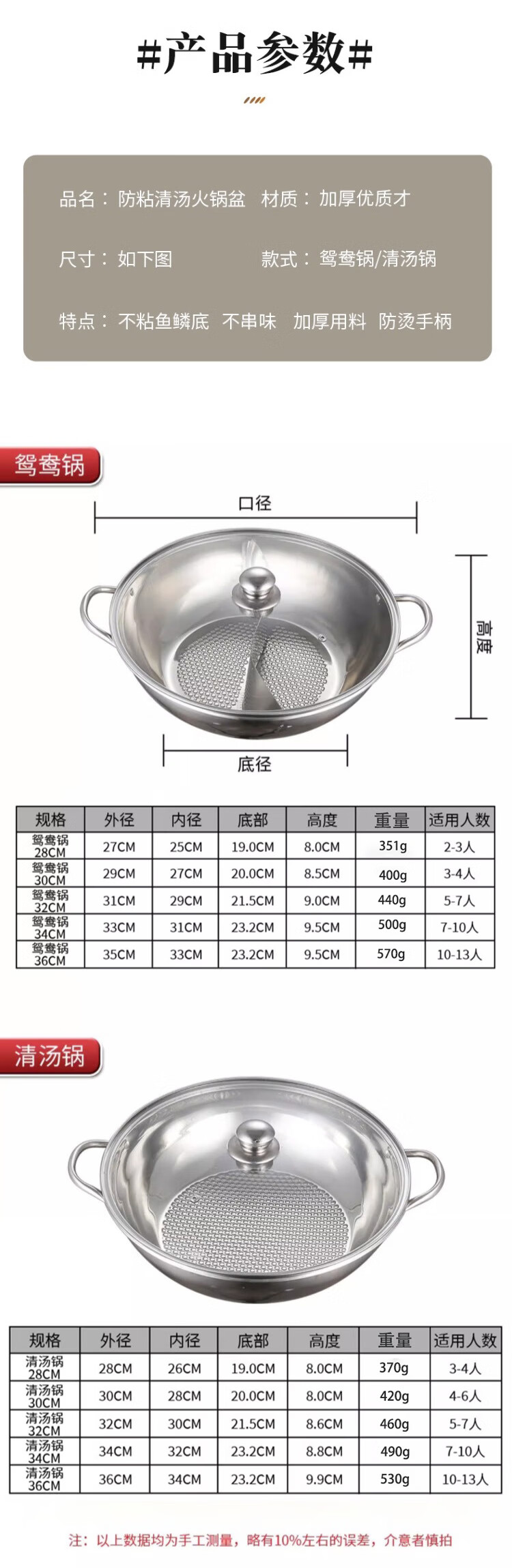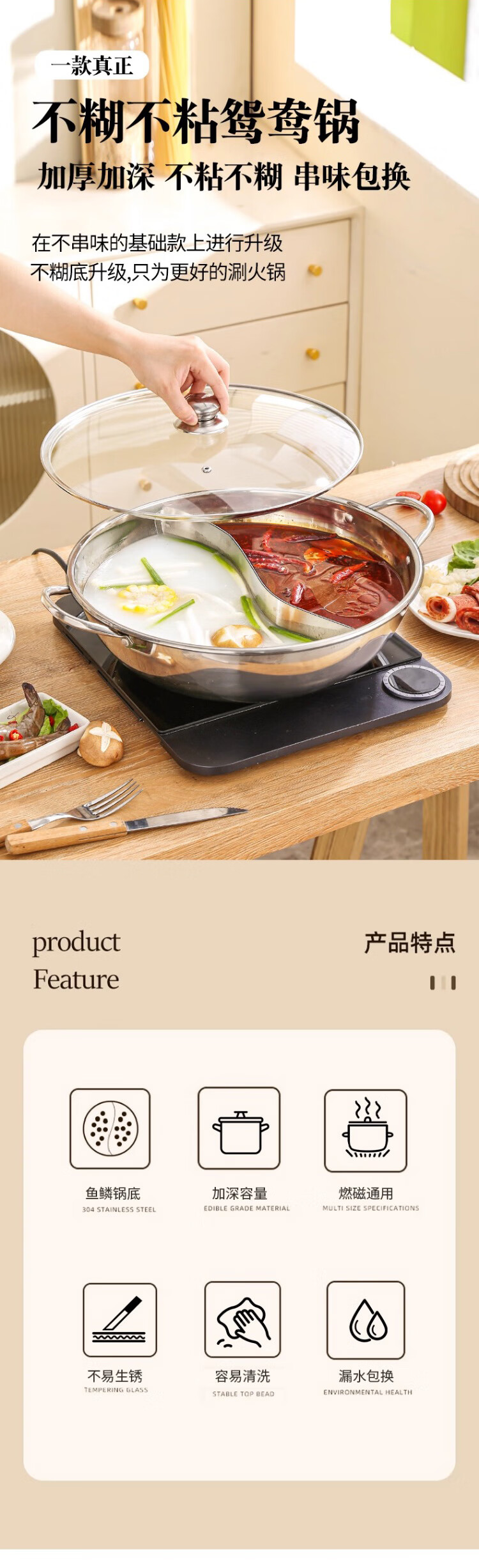 简漾不锈钢鸳鸯锅电磁炉专用家用火锅锅具单锅火锅盆2025年新款清汤锅 36cm+玻璃盖 1英寸