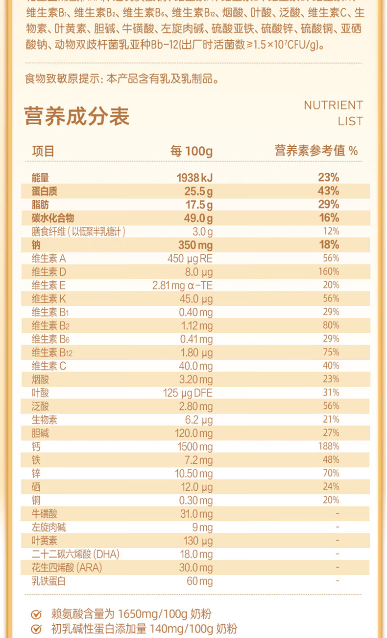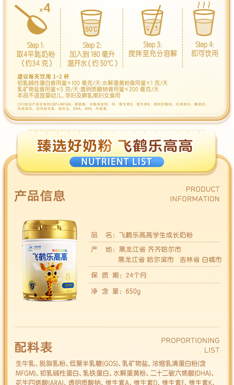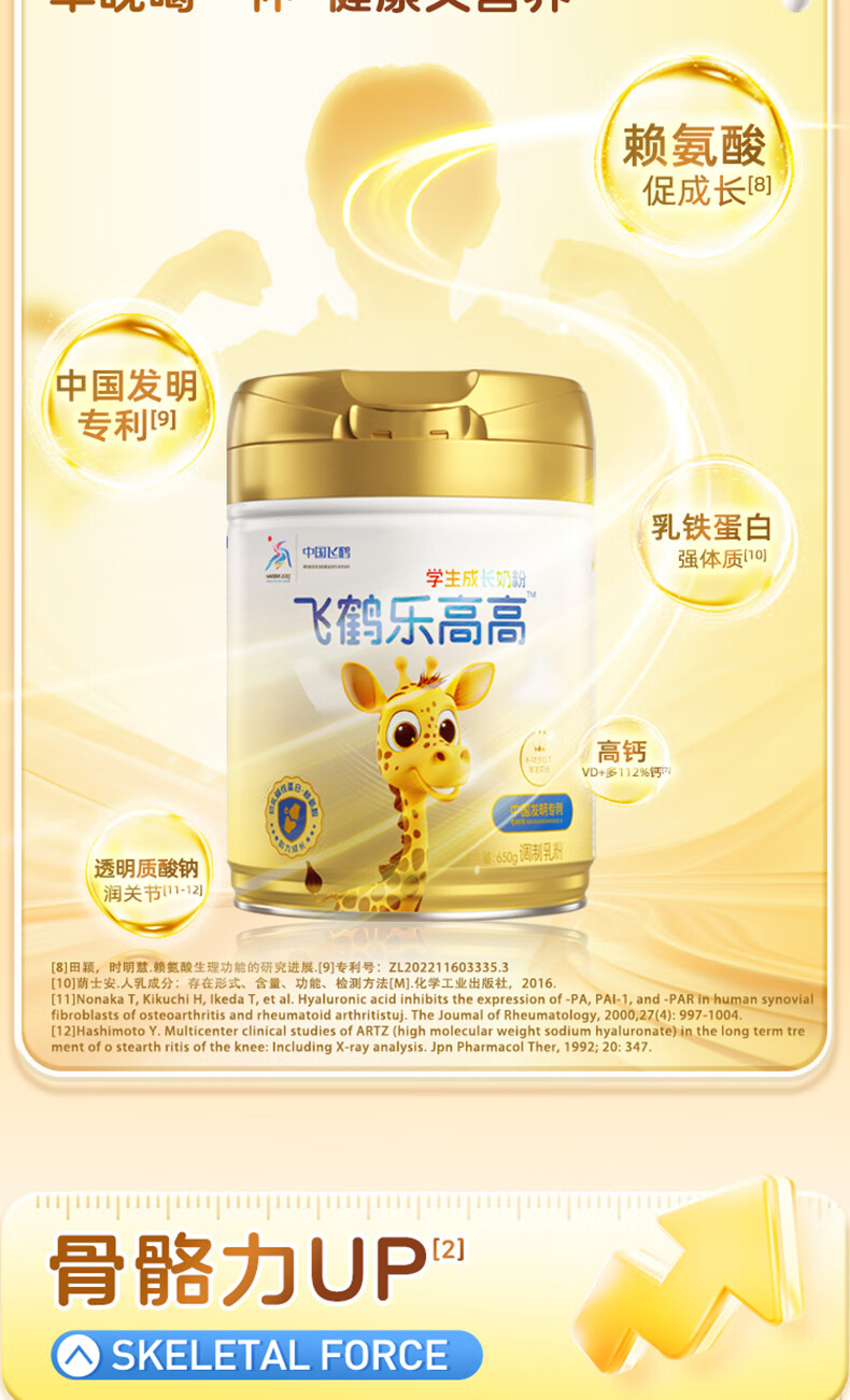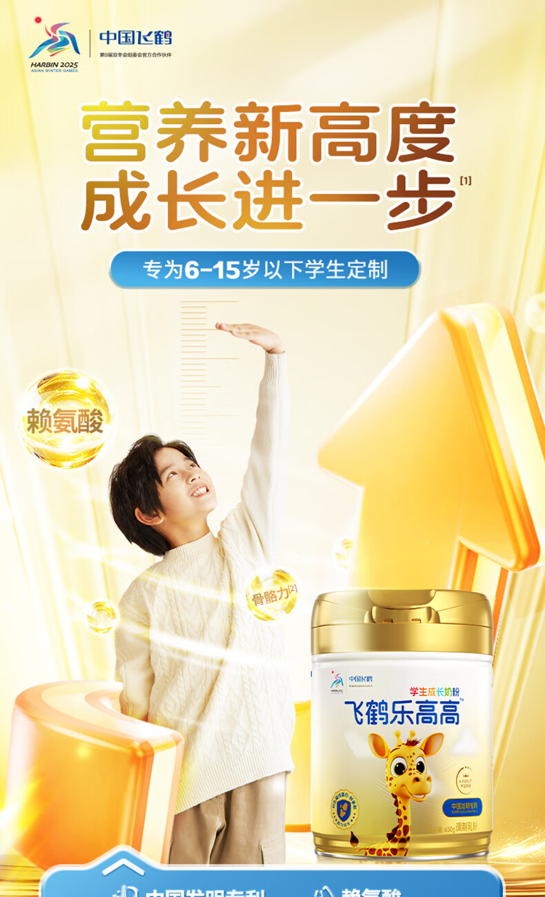 飞鹤乐高高学生成长奶粉650g乳铁蛋白高钙赖氨酸青少年6-15岁送儿童