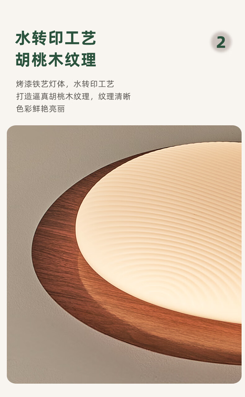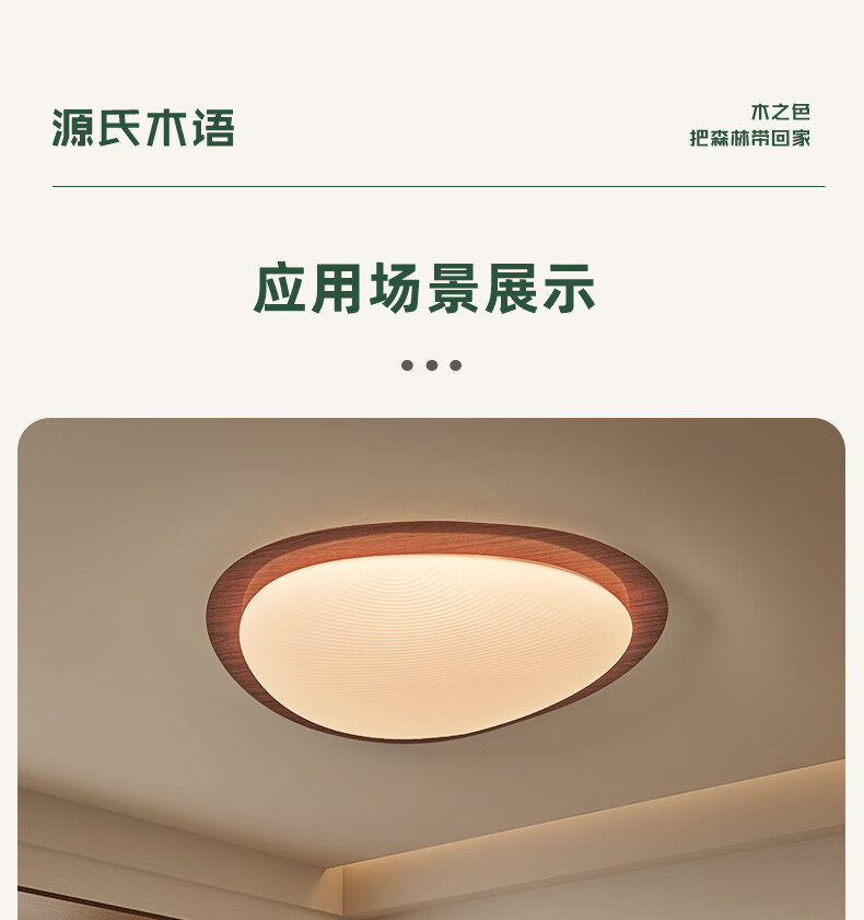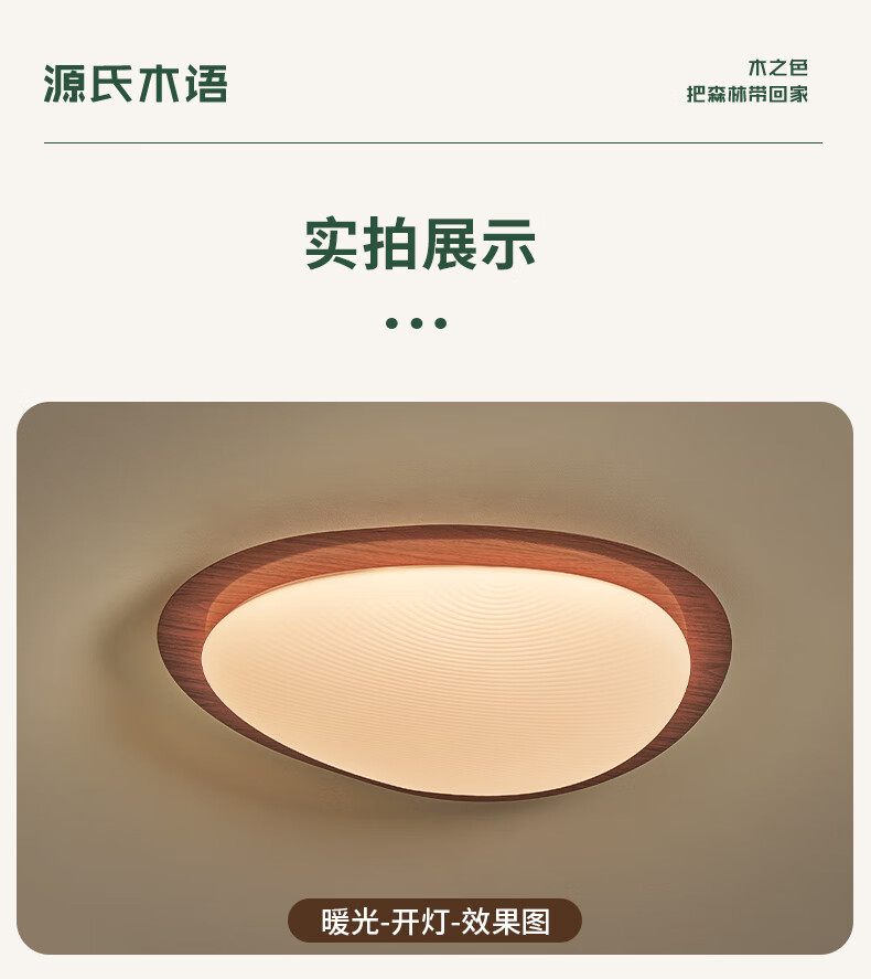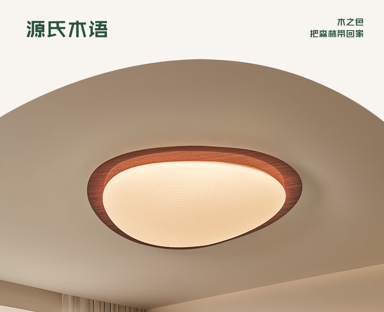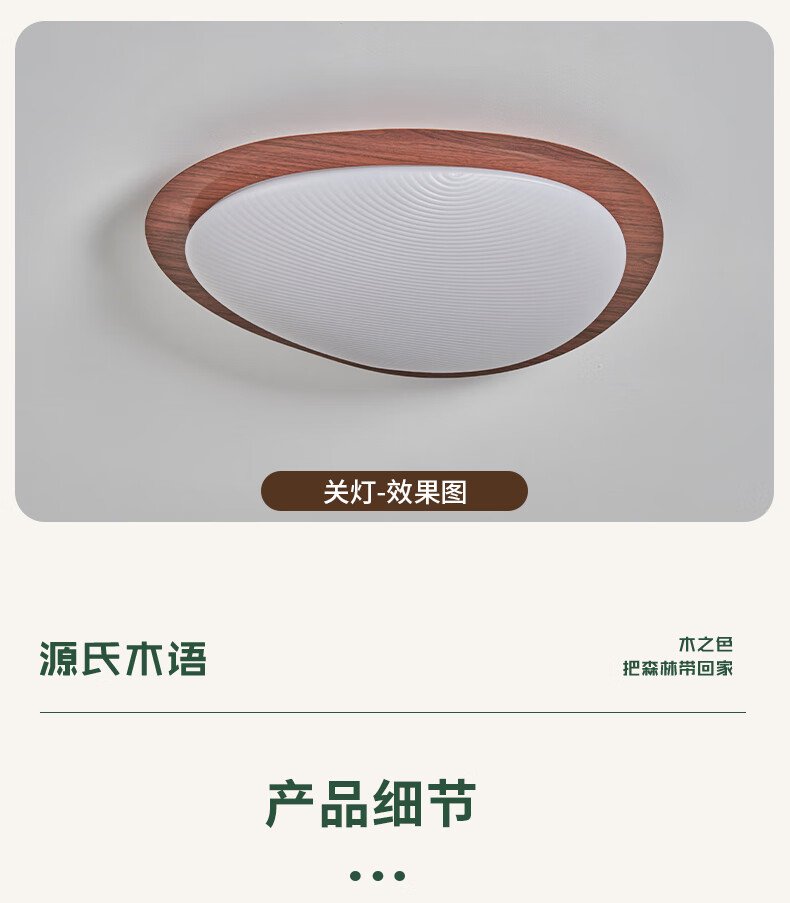 源氏木语原木纹主卧室房间书房吸顶灯全光谱护眼侘寂风中古led灯 全光谱护眼-胡桃木纹-51cm-无极调光