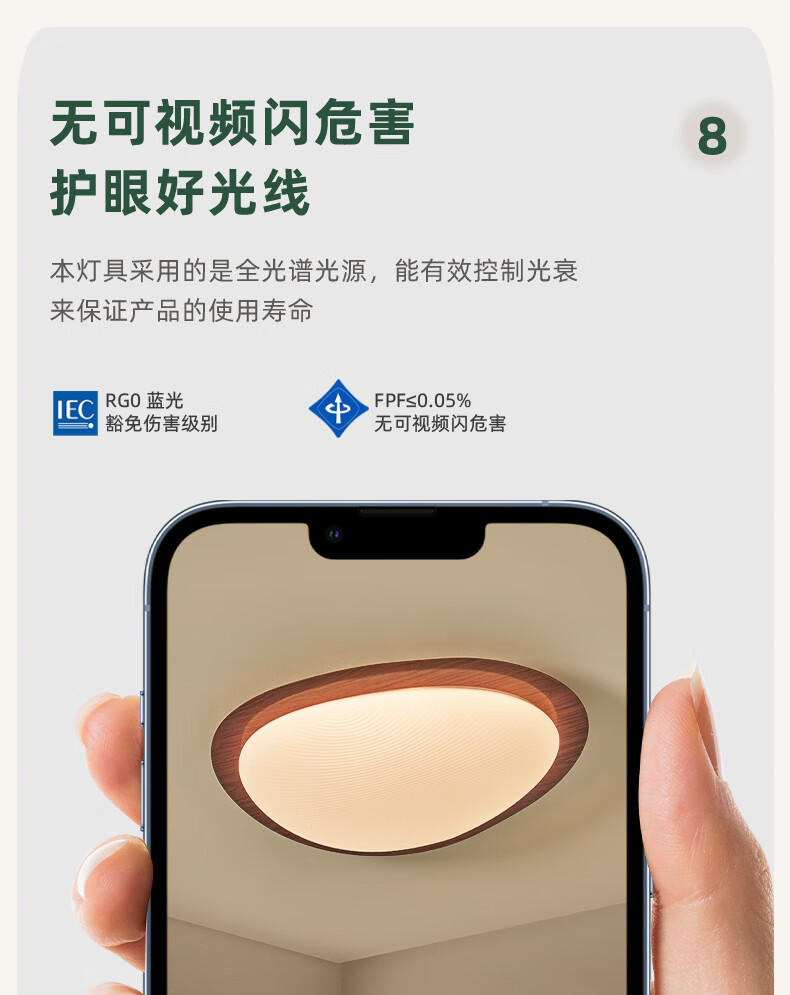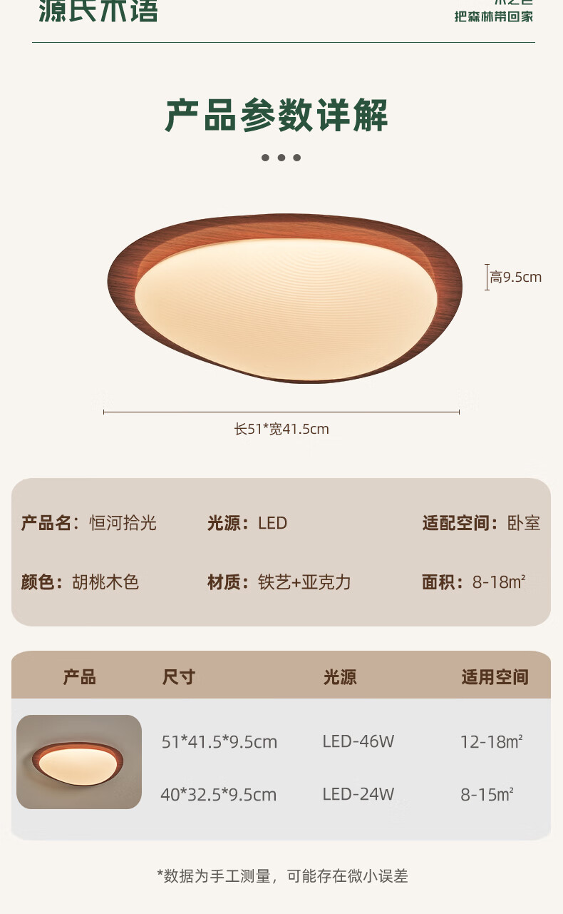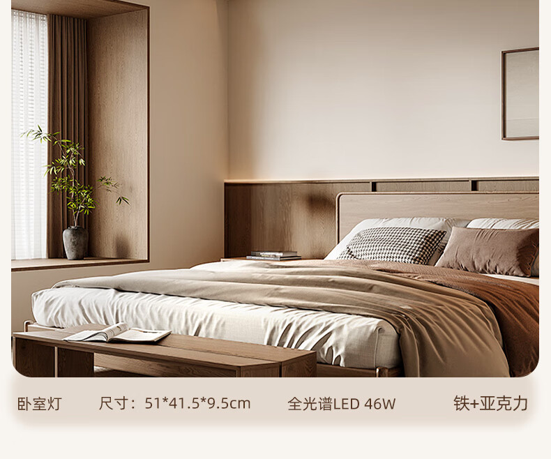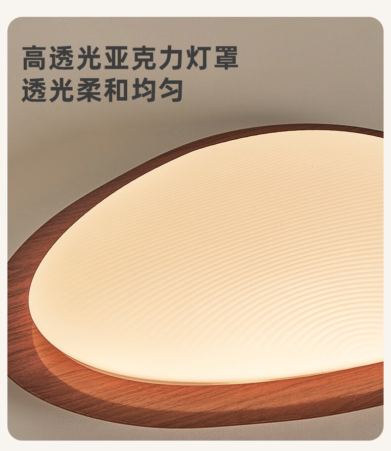 源氏木语原木纹主卧室房间书房吸顶灯全光谱护眼侘寂风中古led灯 全光谱护眼-胡桃木纹-51cm-无极调光
