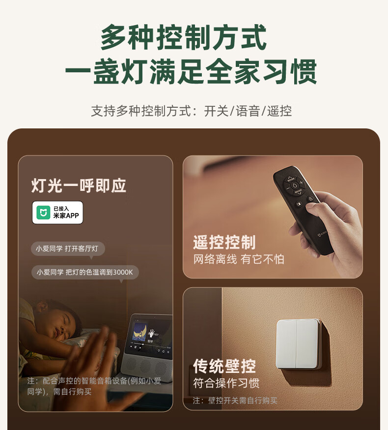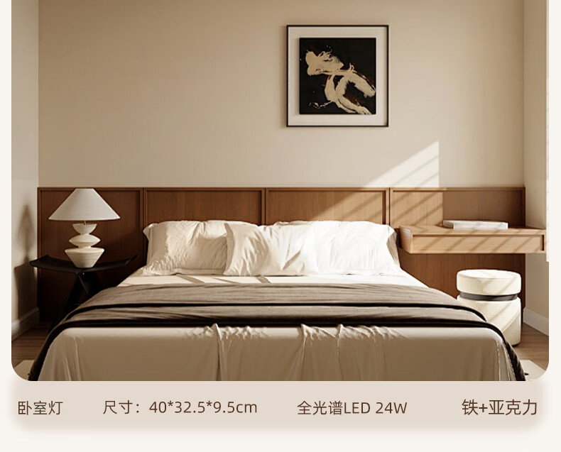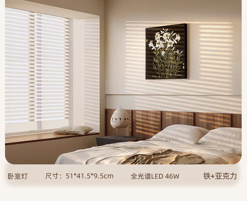 阳光照明 LED全光谱新款中古风客厅大灯 护眼卧室吸顶灯 灯具 【包安装】非智控-木绘丨60w卧室方灯丨三段调光