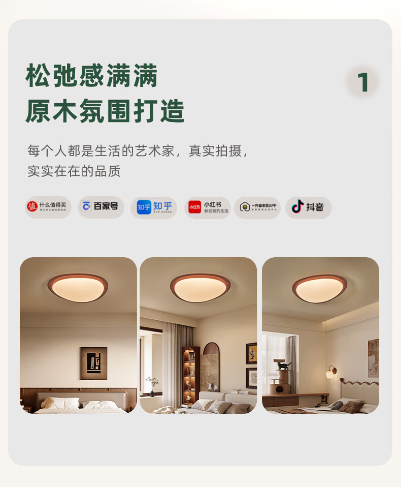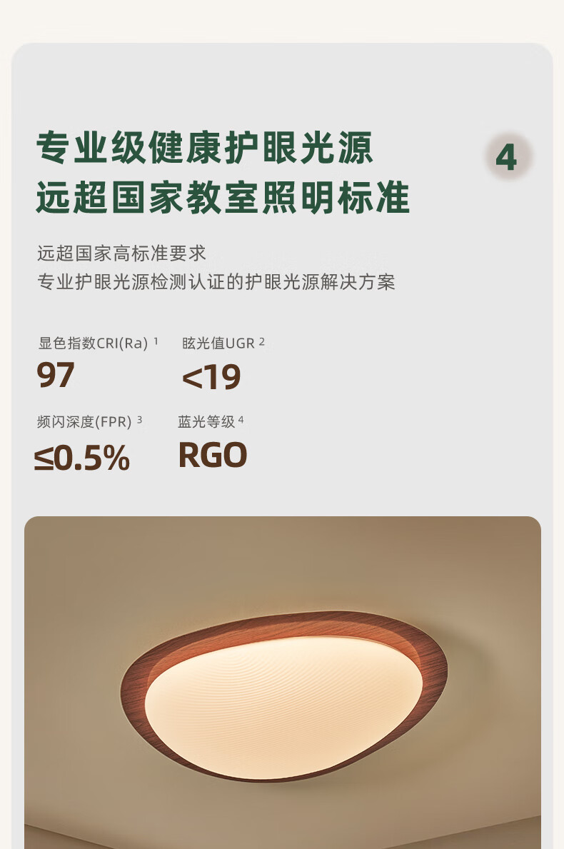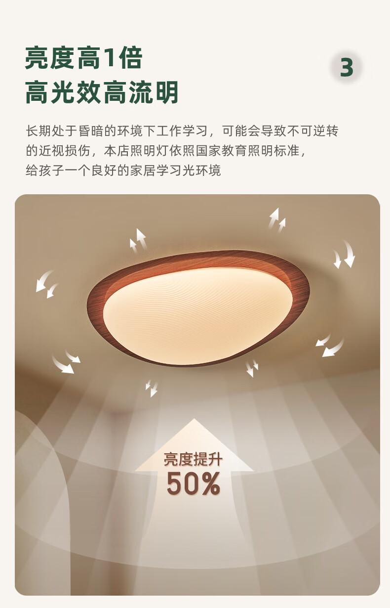 阳光照明 LED全光谱新款中古风客厅大灯 护眼卧室吸顶灯 灯具 【包安装】非智控-木绘丨48w卧室圆灯丨三段调光