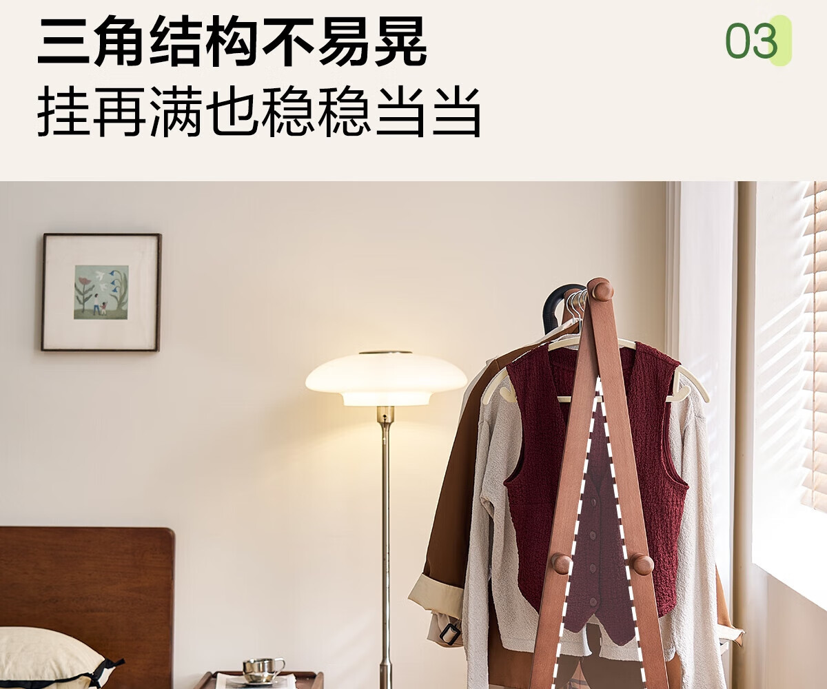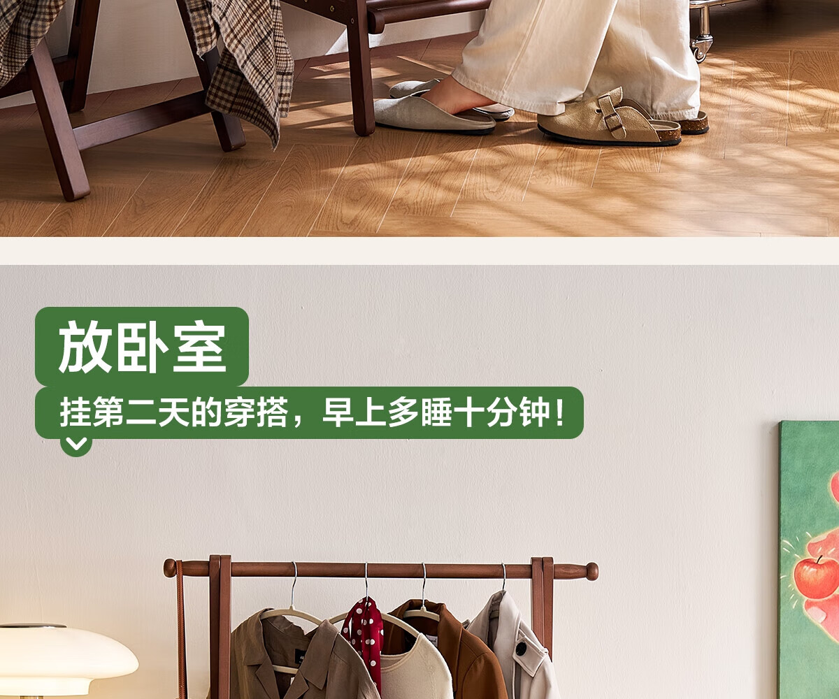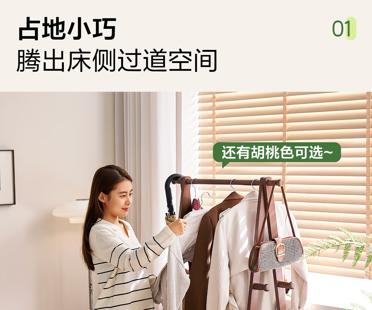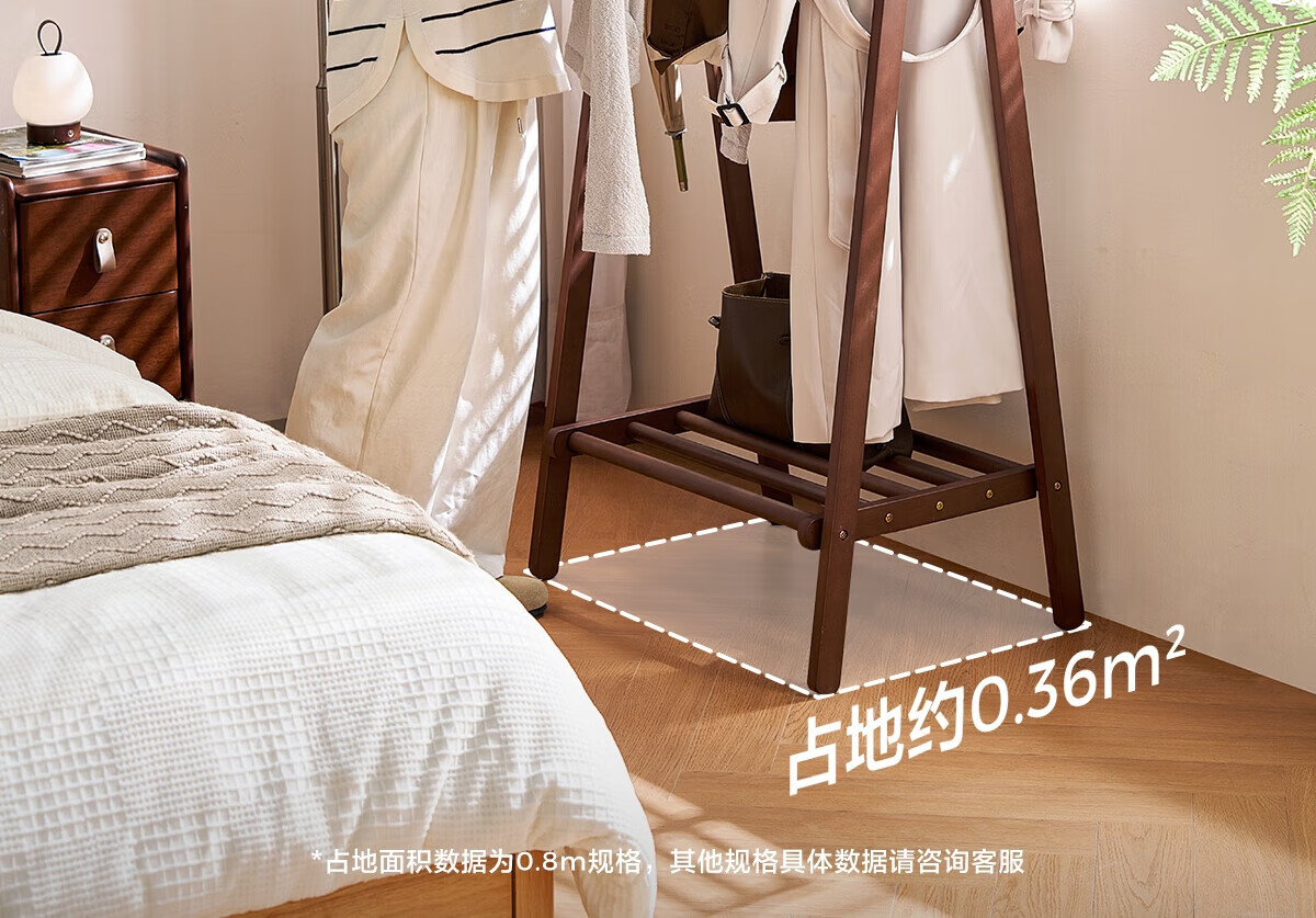 林氏家居榉木全实木挂衣架落地卧室衣帽架床尾晚上放衣服神器新款LS447P2 【1.2m-胡桃色】榉木全实木