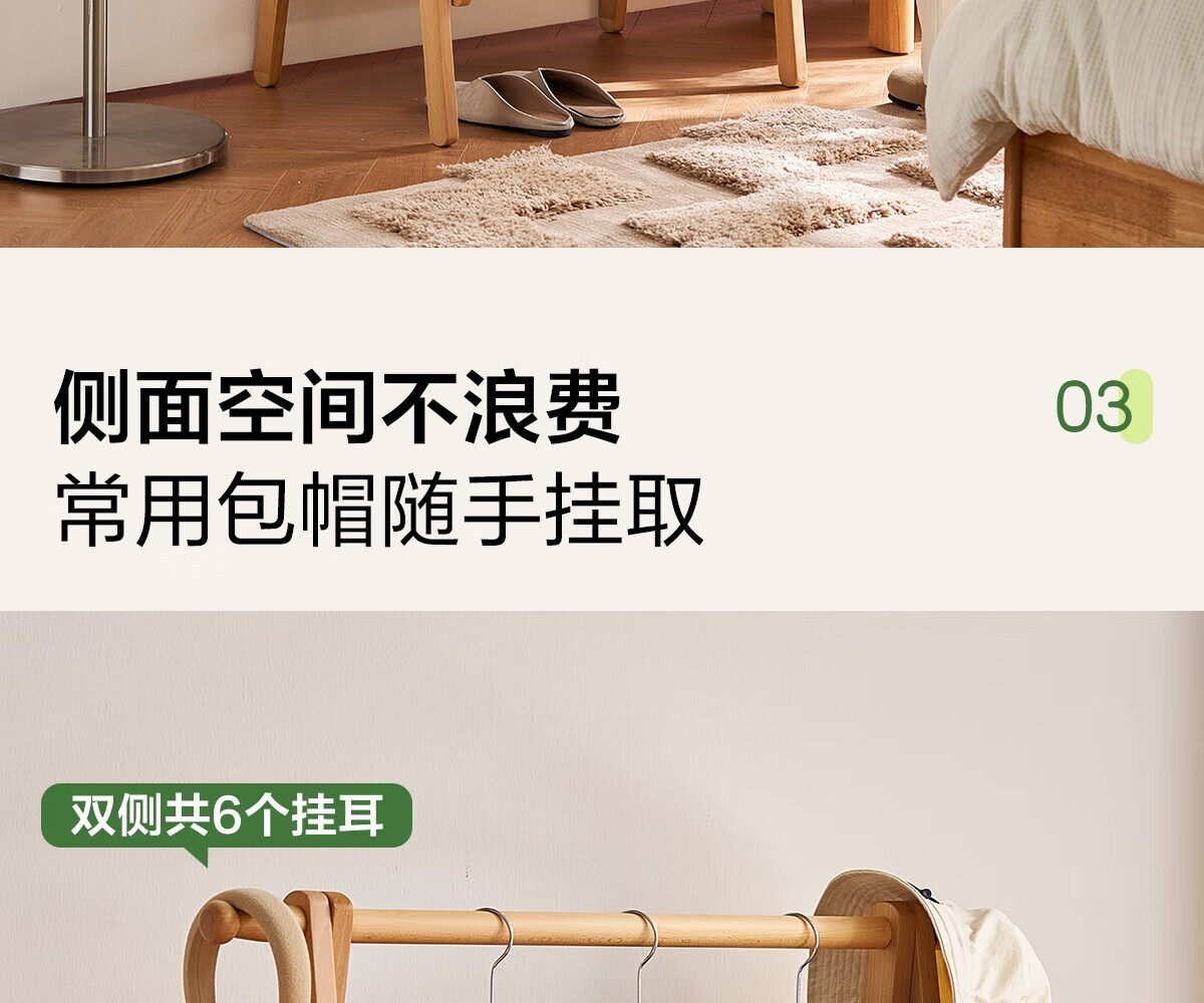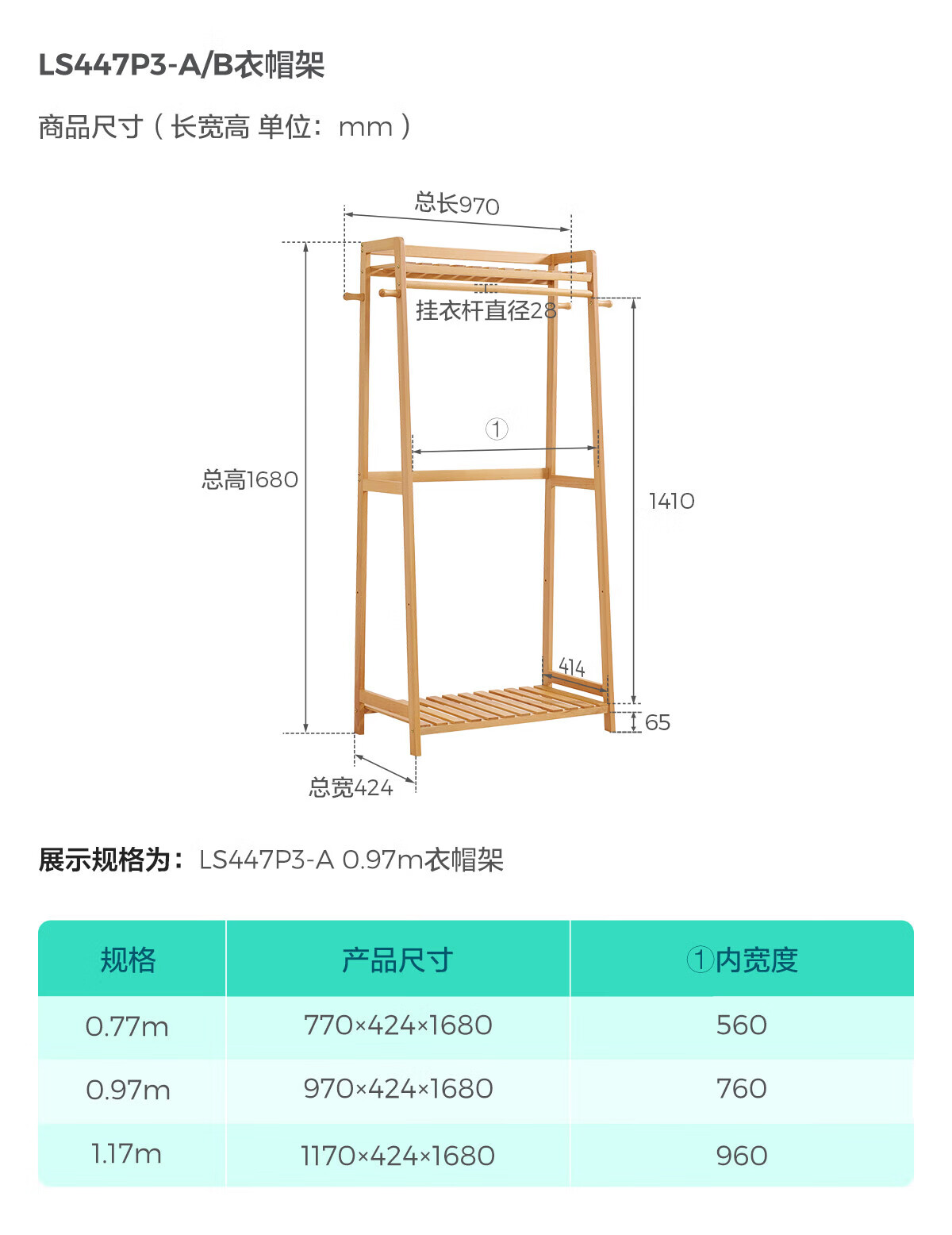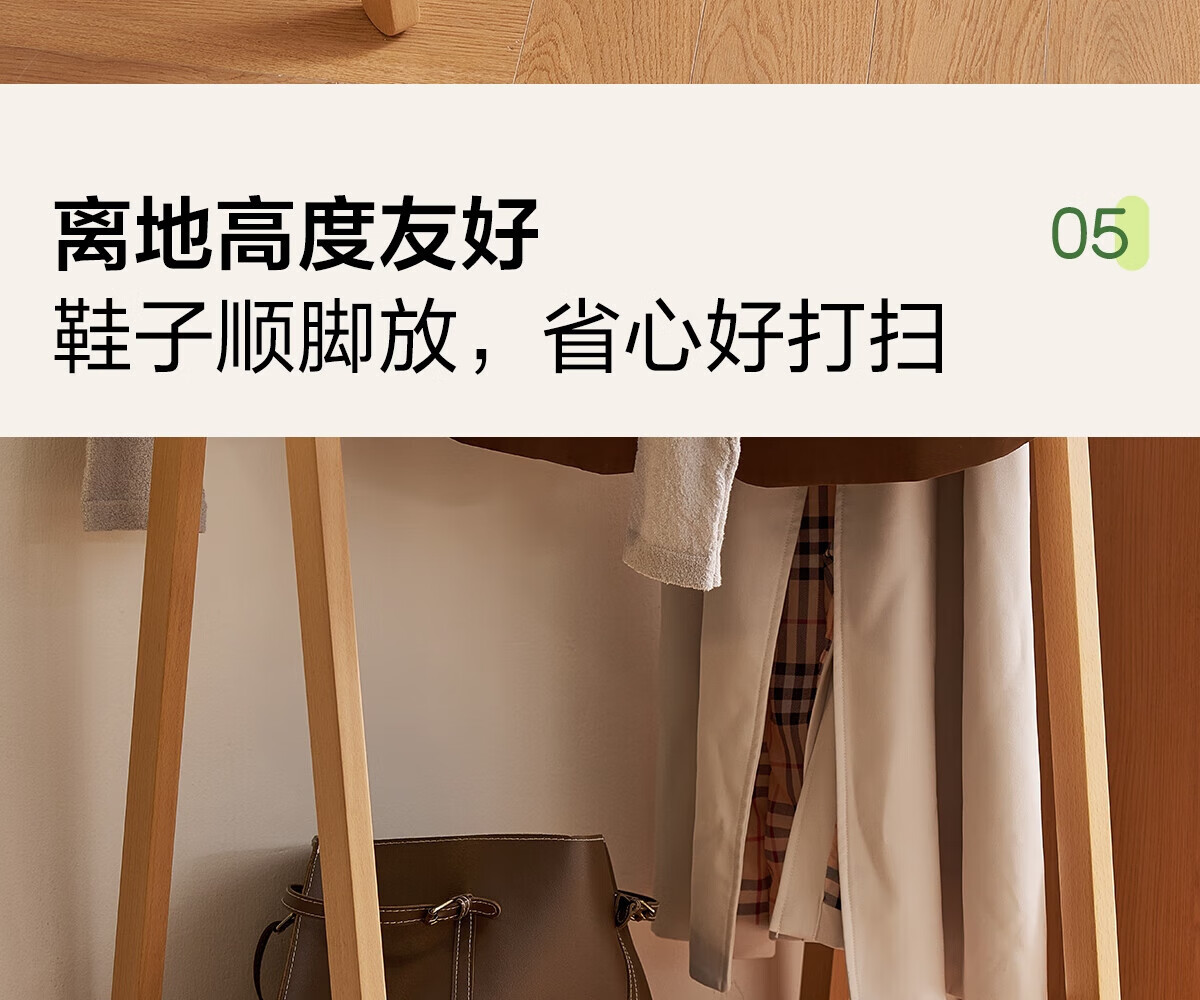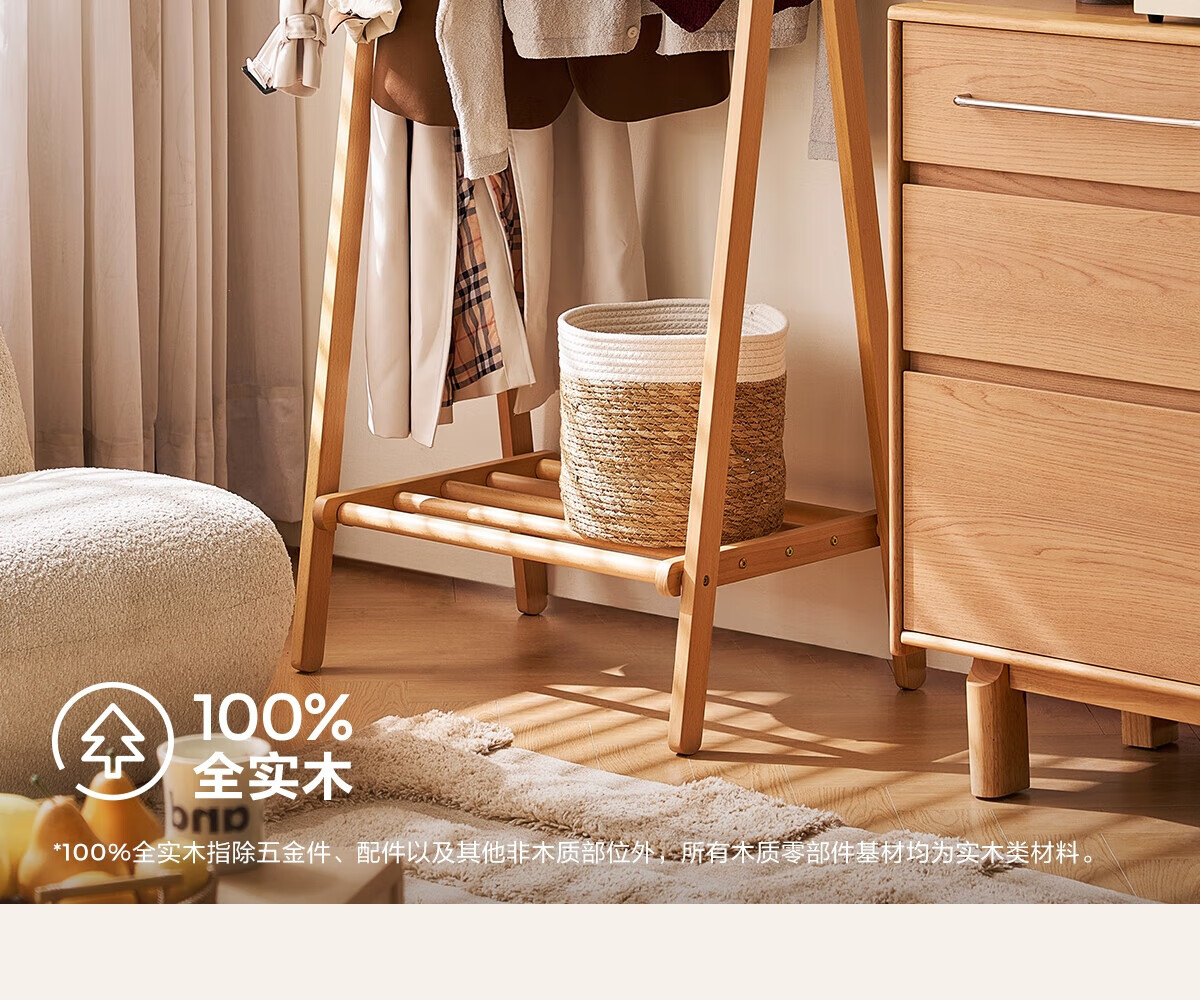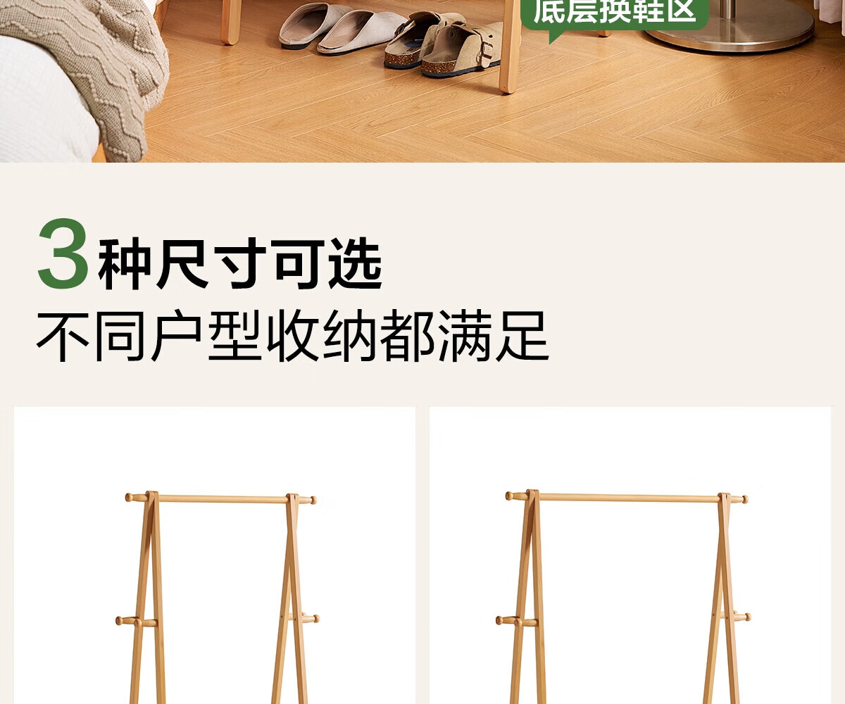 林氏家居榉木全实木挂衣架落地卧室衣帽架床尾晚上放衣服神器新款LS447P2 【1.2m-胡桃色】榉木全实木