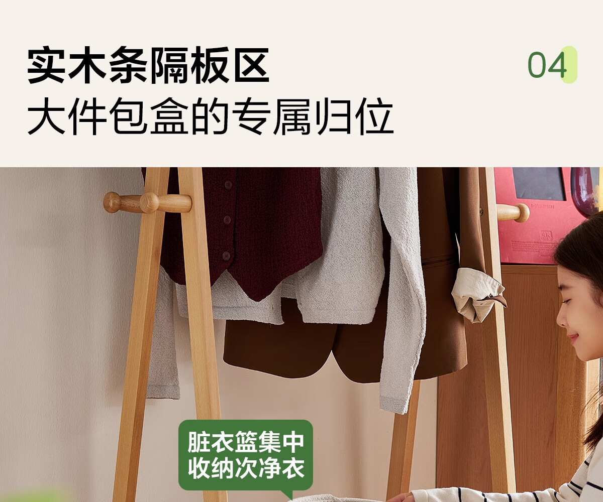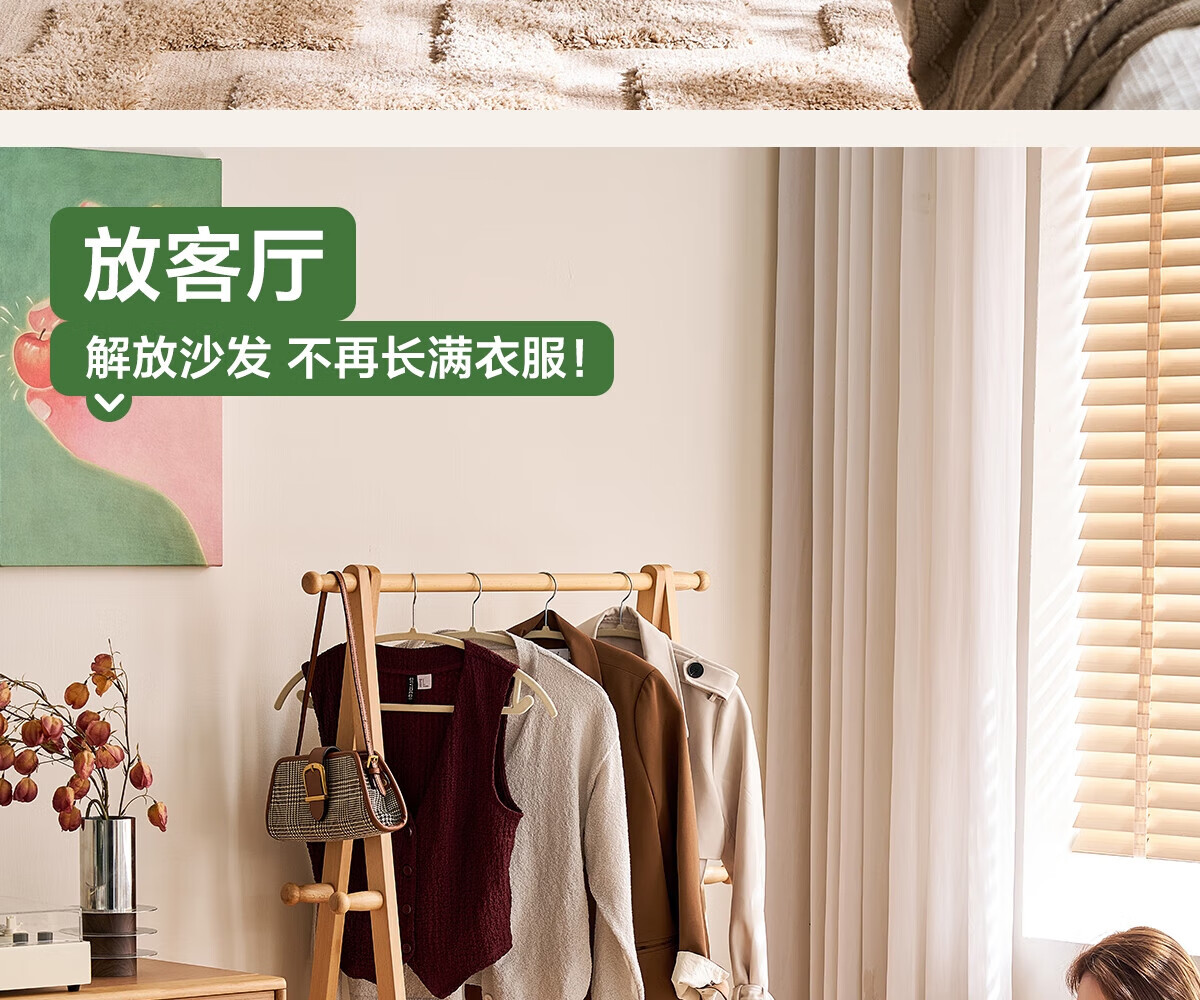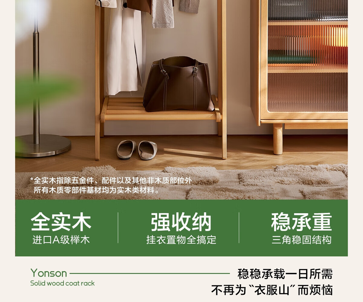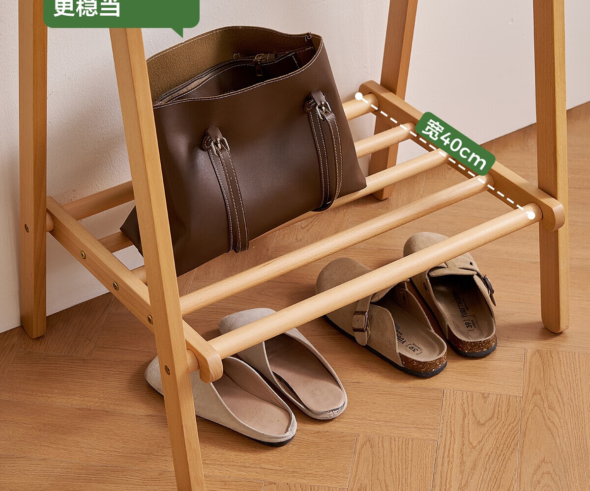 林氏家居榉木全实木挂衣架落地卧室衣帽架床尾晚上放衣服神器新款LS447P2 【1.2m-胡桃色】榉木全实木