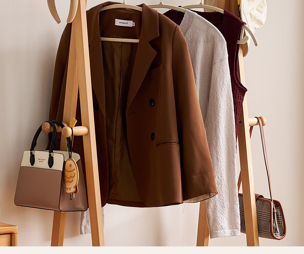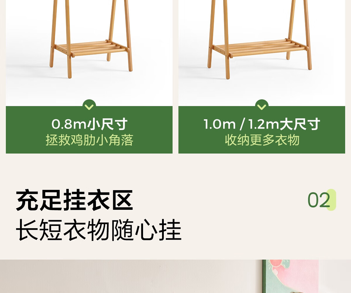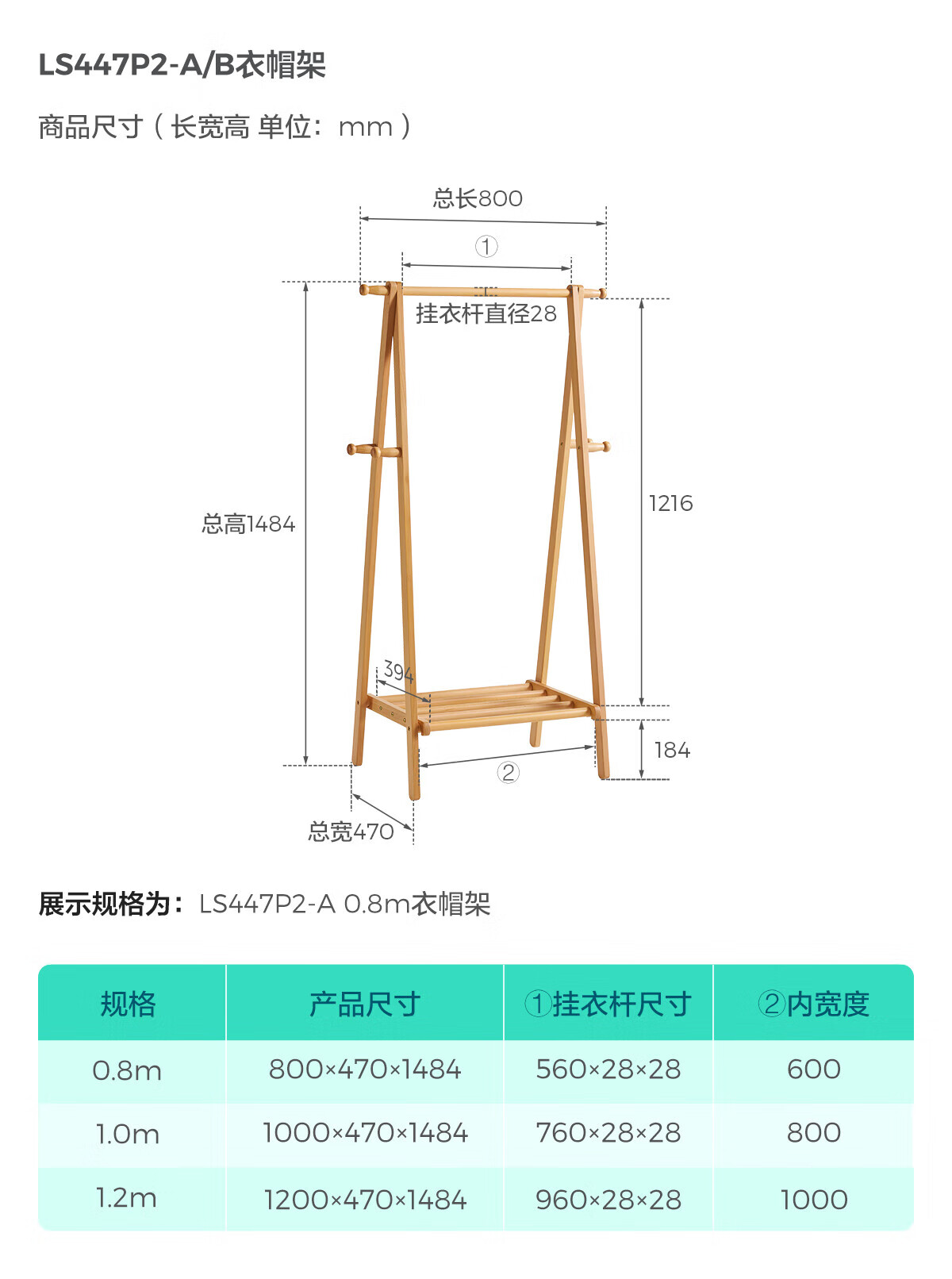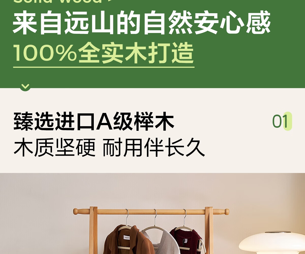 林氏家居榉木全实木挂衣架落地卧室衣帽架床尾晚上放衣服神器新款LS447P2 【1.2m-胡桃色】榉木全实木