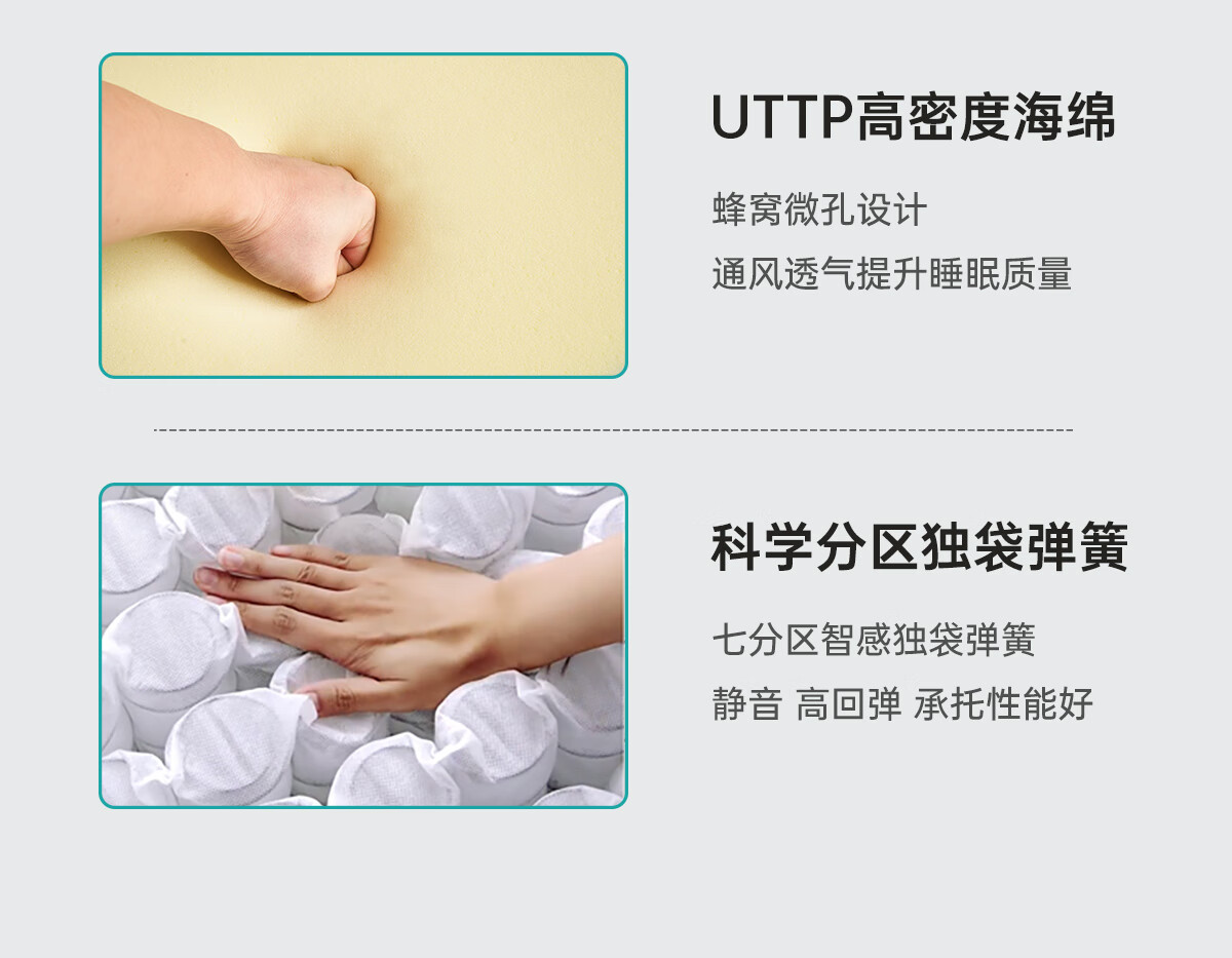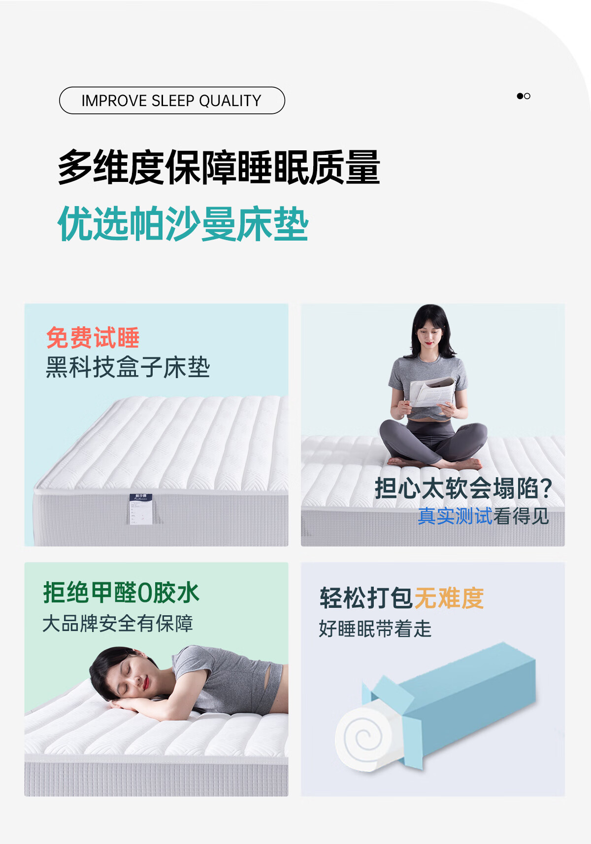 帕沙曼乳胶床垫席梦思双人家用压缩独立弹簧盒子床垫软硬适中 DN50608M Cloud/云感静享·3D浮感床垫【高级灰】 1800mm*2000mm
