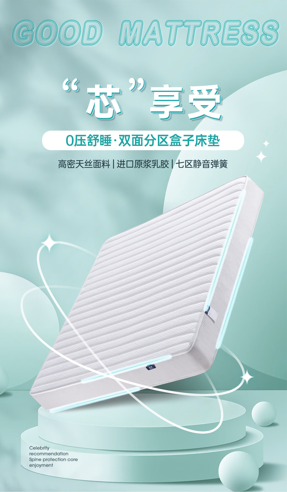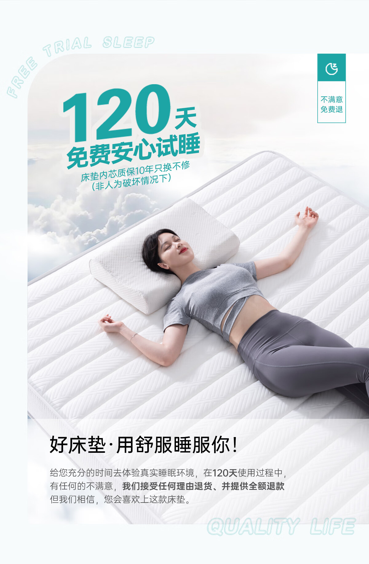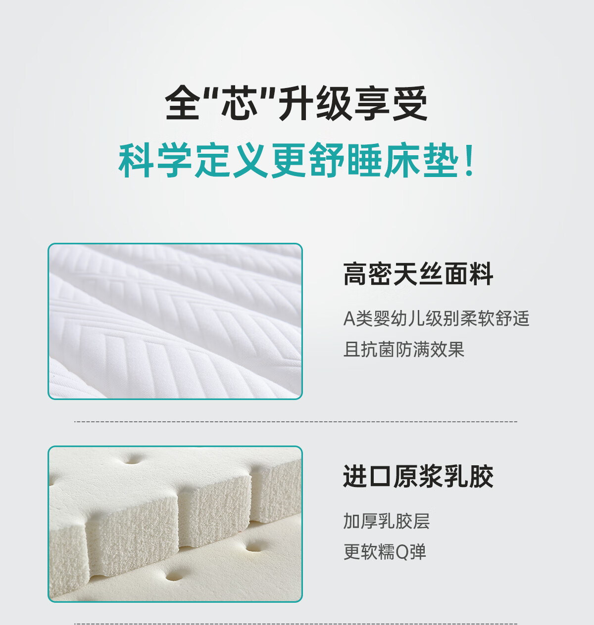 喜临门2cm高纯乳胶7区分区弹簧床垫3D芯材床垫白骑士pro1.5x2米软硬适中