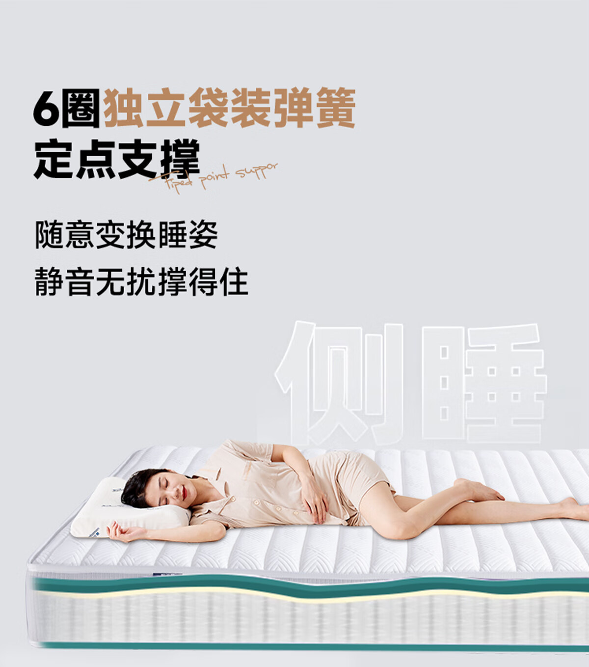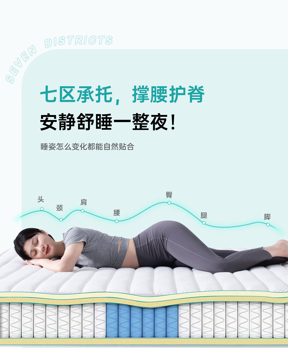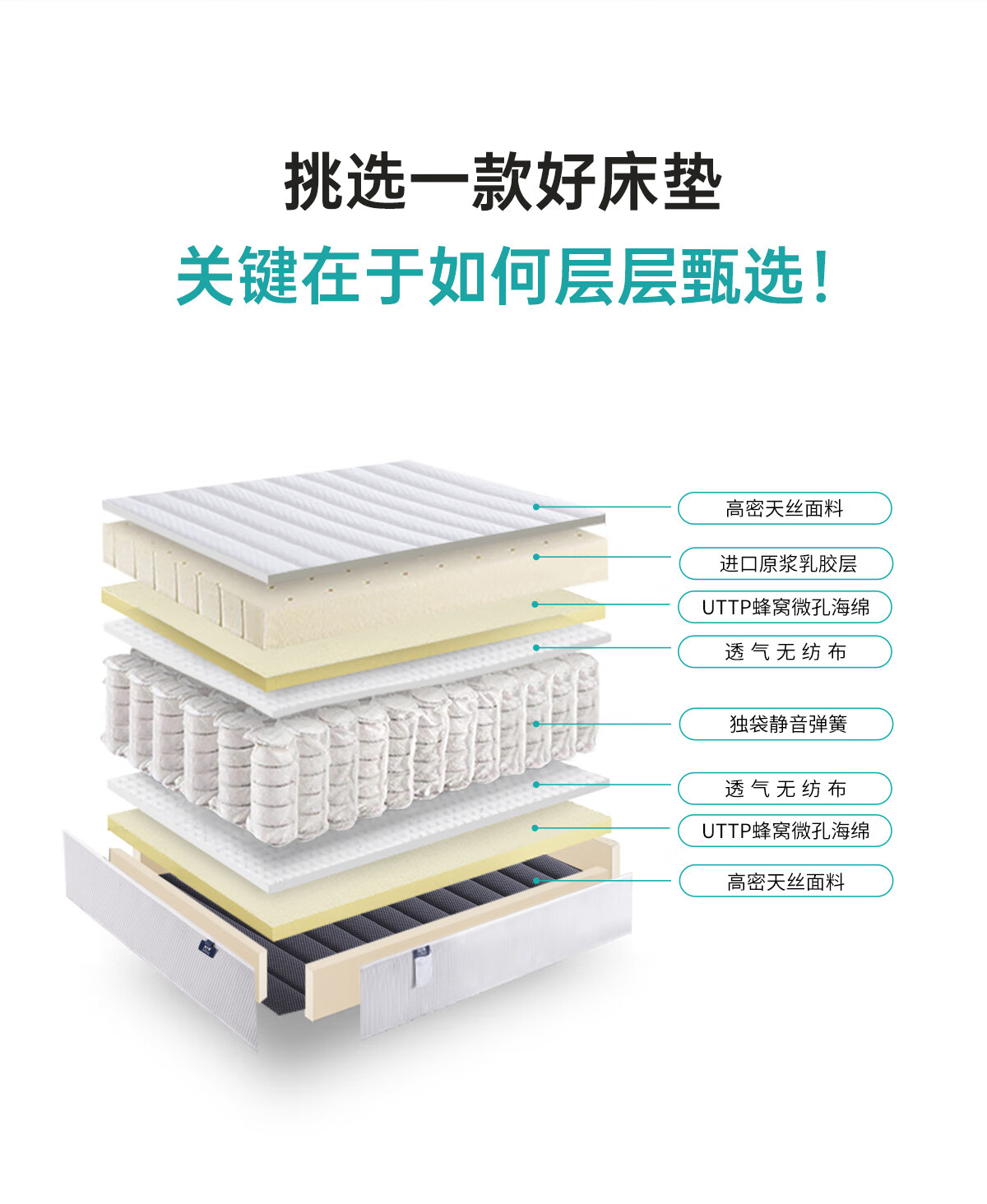喜临门2cm高纯乳胶7区分区弹簧床垫3D芯材床垫白骑士pro1.5x2米软硬适中