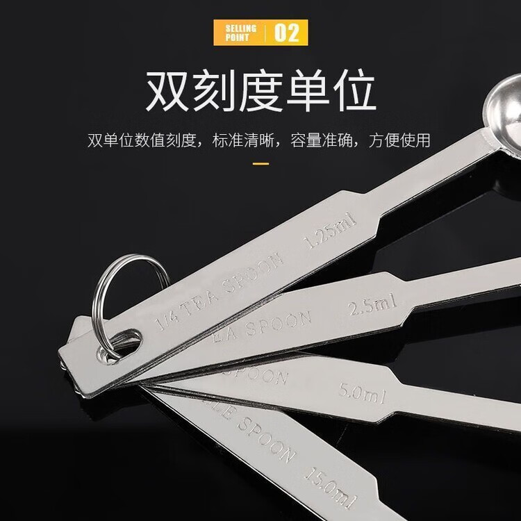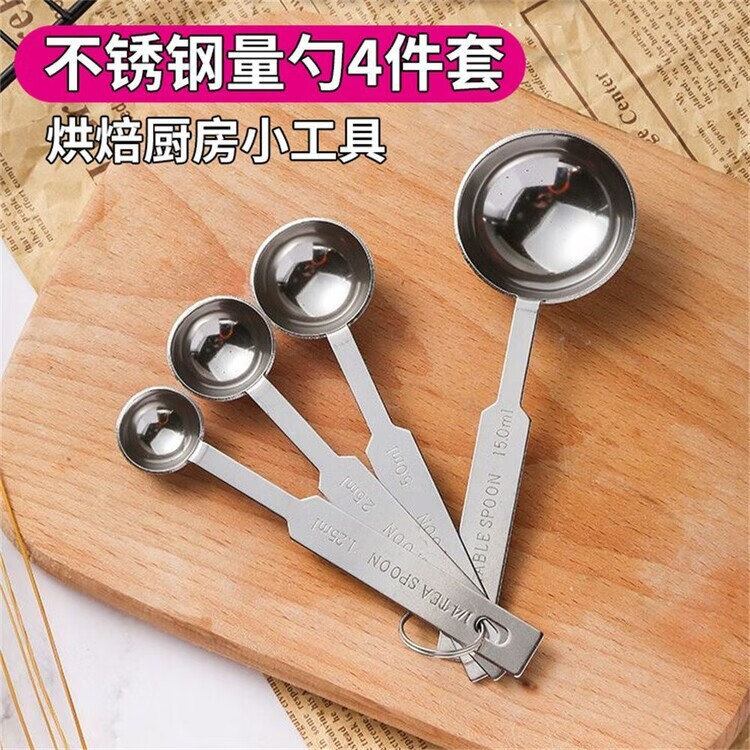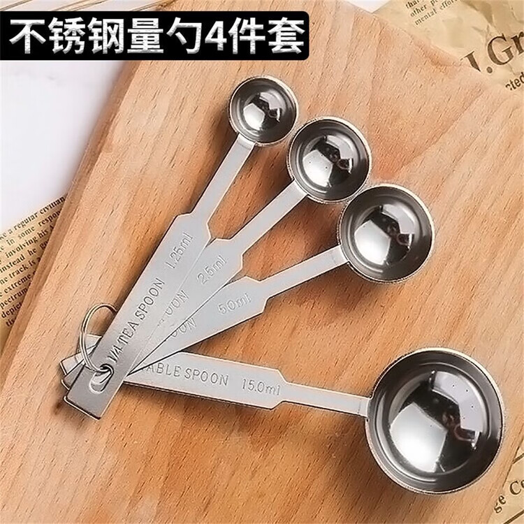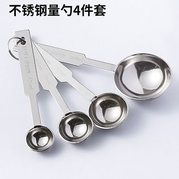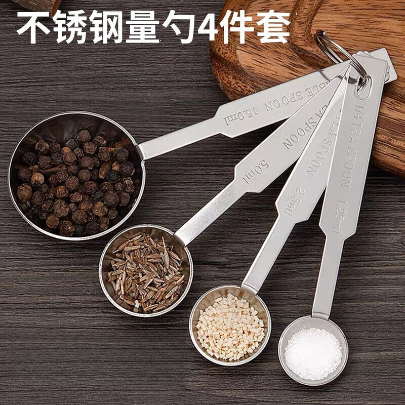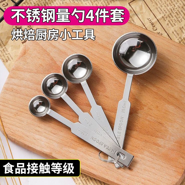 花沐禧不锈钢量勺4件套烘焙微量勺厨房带刻度咖啡粉匙长柄定量小勺子 小量勺四件套