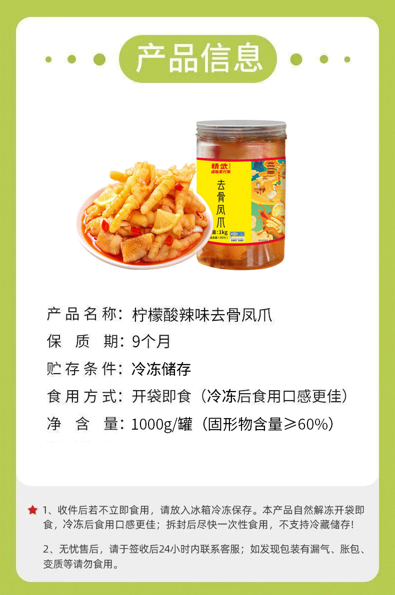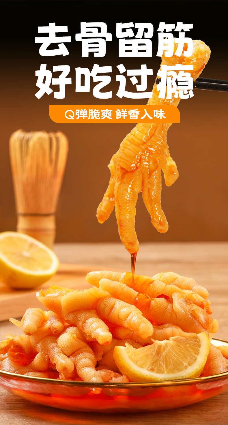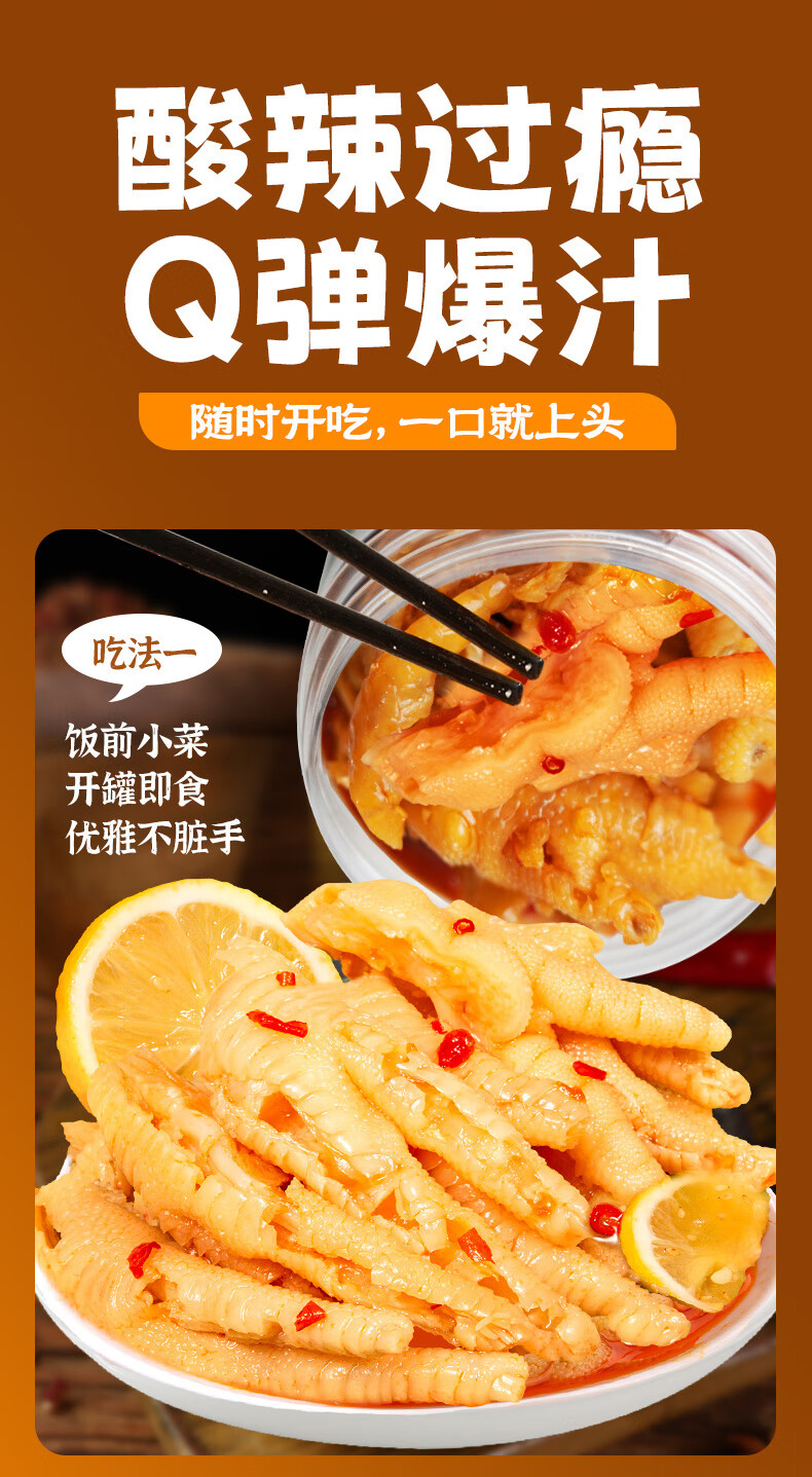精武无骨鸡爪柠檬酸辣去骨凤爪鸭爪休闲食品零食脱骨鸭掌 柠檬酸辣去骨凤爪1000g*1罐