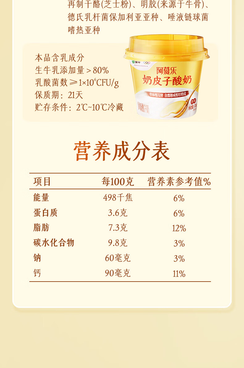 蒙牛阿慕乐奶皮子原味风味酸牛乳预制杯 135g×10杯