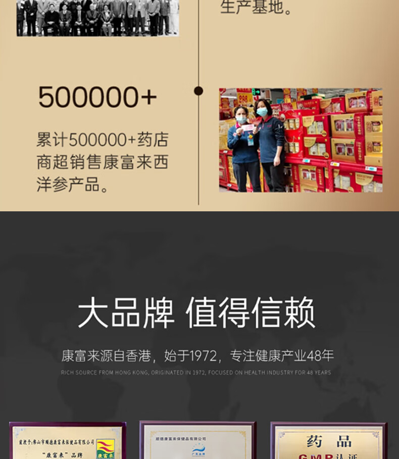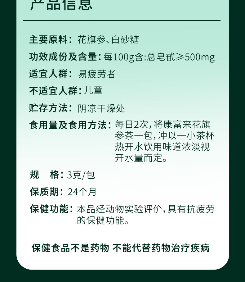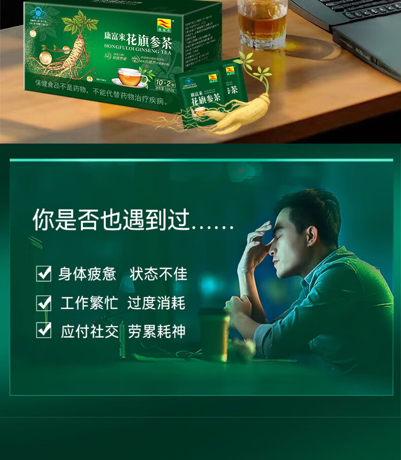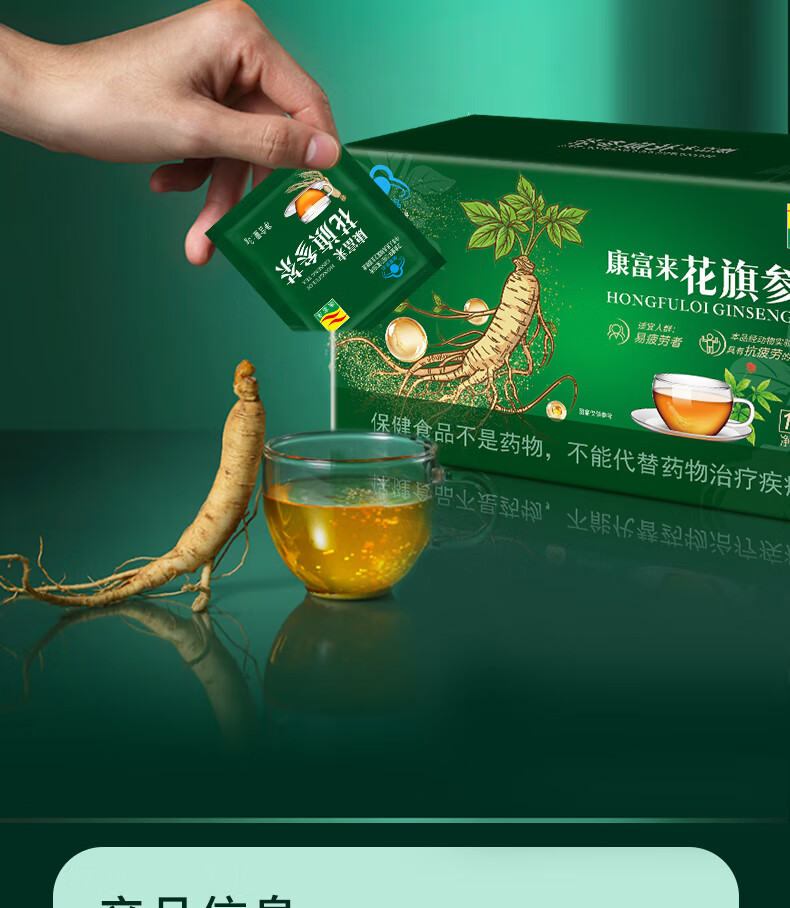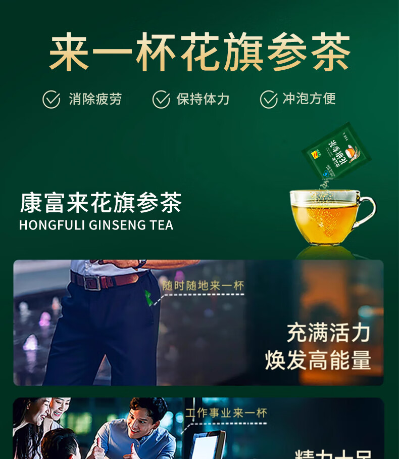 康富来花旗参茶 西洋参抗疲劳 成人老人保健品 加班熬夜保持体力营养 15袋/共3盒