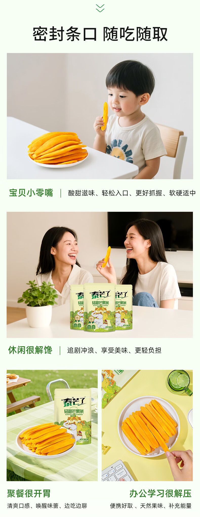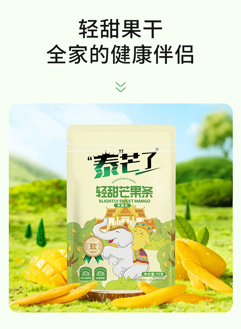 泰芒了轻甜芒果条泰国风味网红蜜饯果脯休闲小吃原味芒果干独立装 轻甜芒果条70g*3