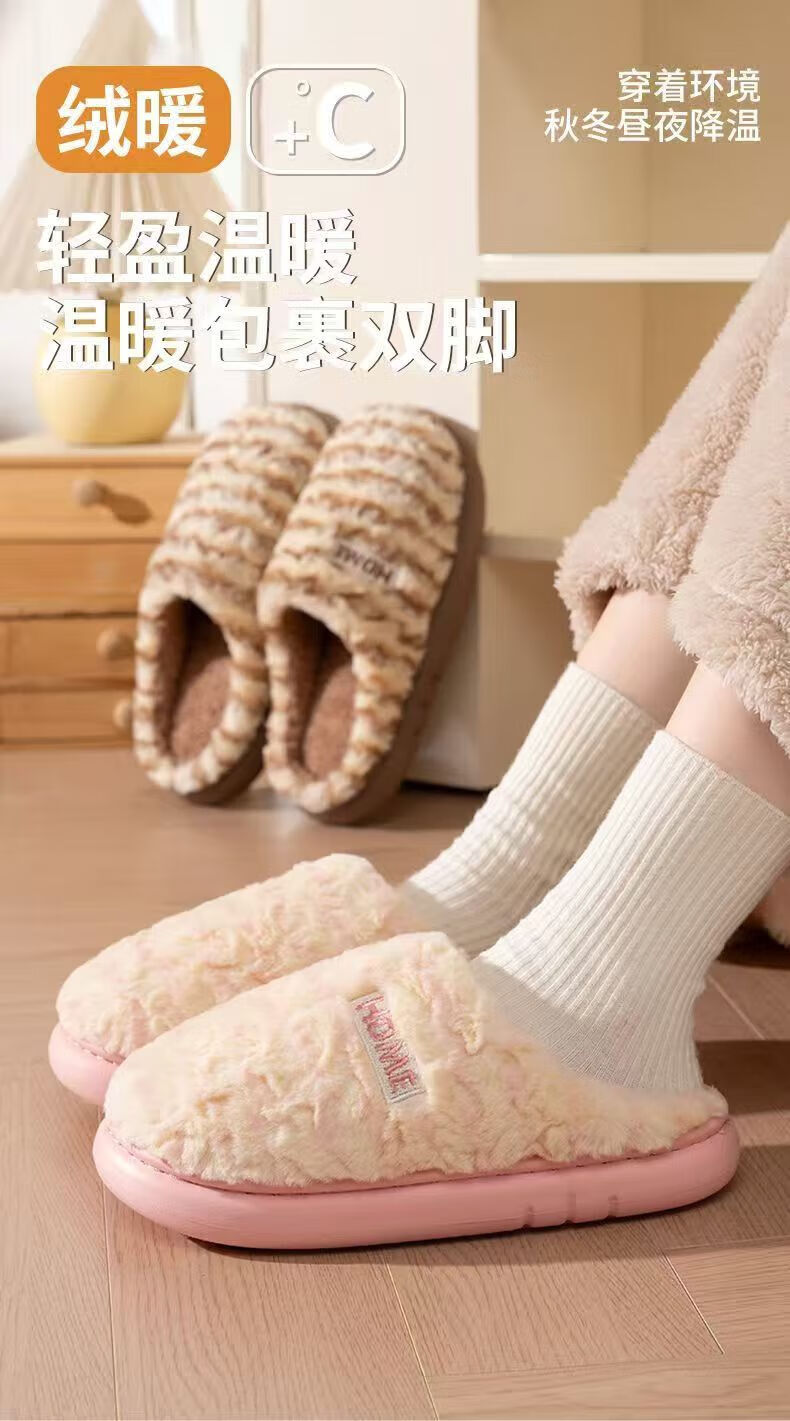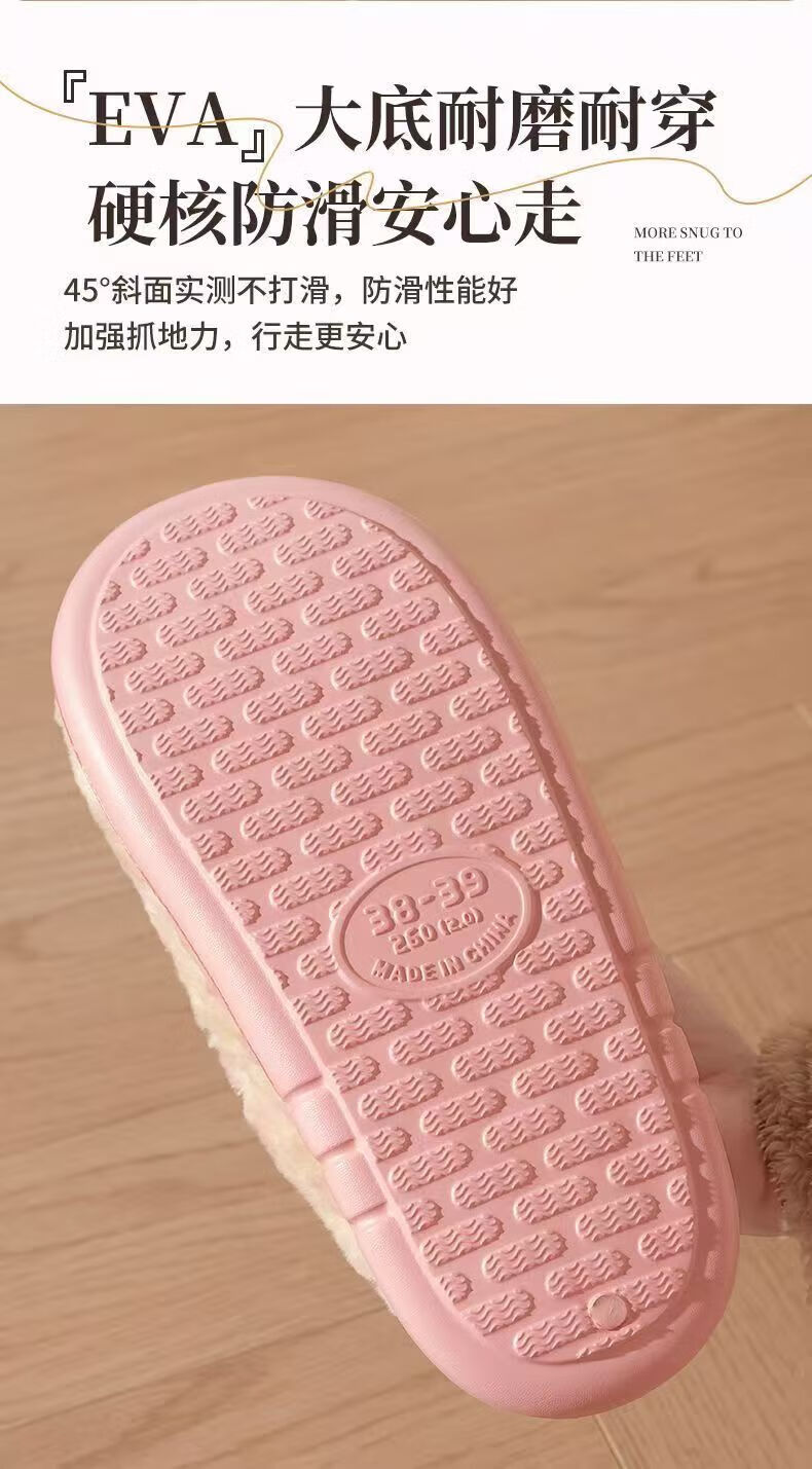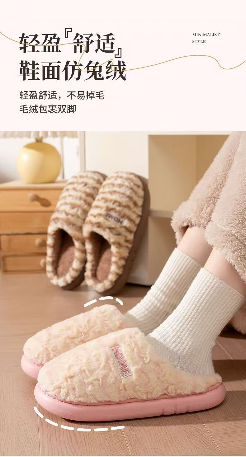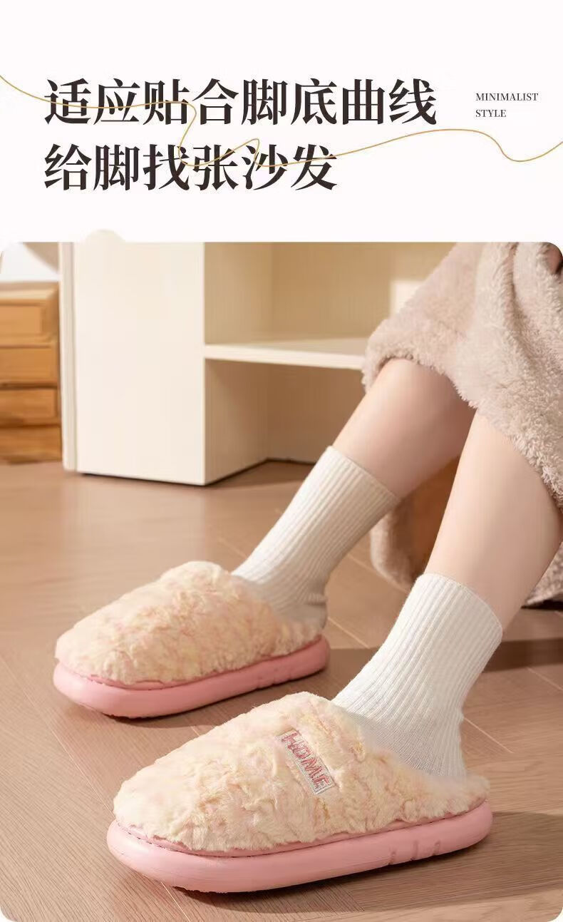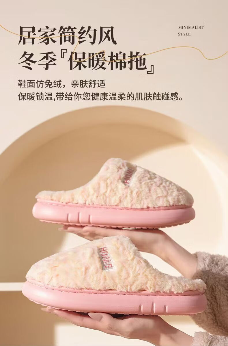 洁丽雅(grace)毛绒棉拖鞋男士冬季室内居家情侣款厚底防滑加绒保暖棉拖 pink少女粉 38-39 适合【37-38】
