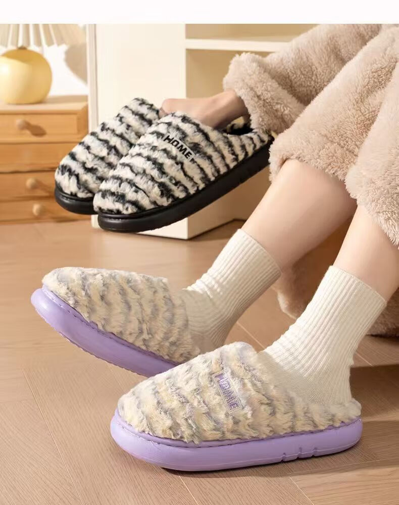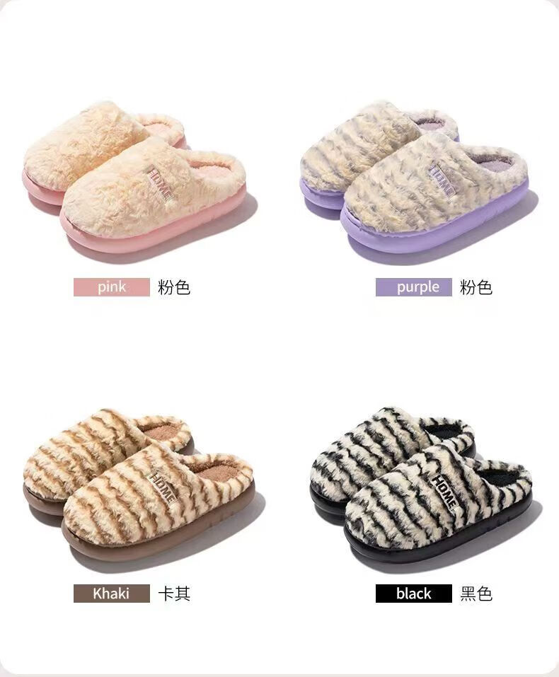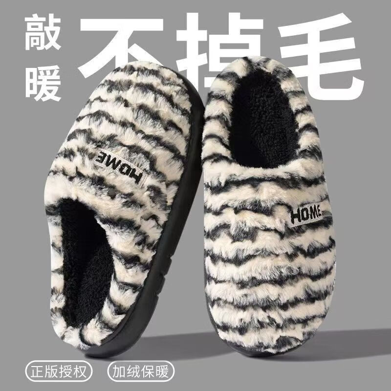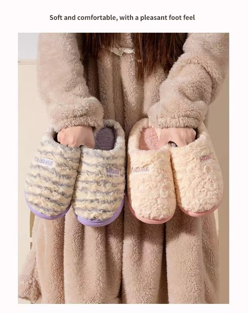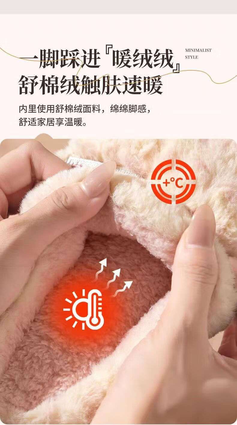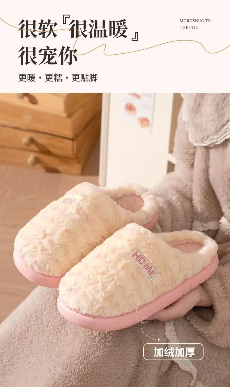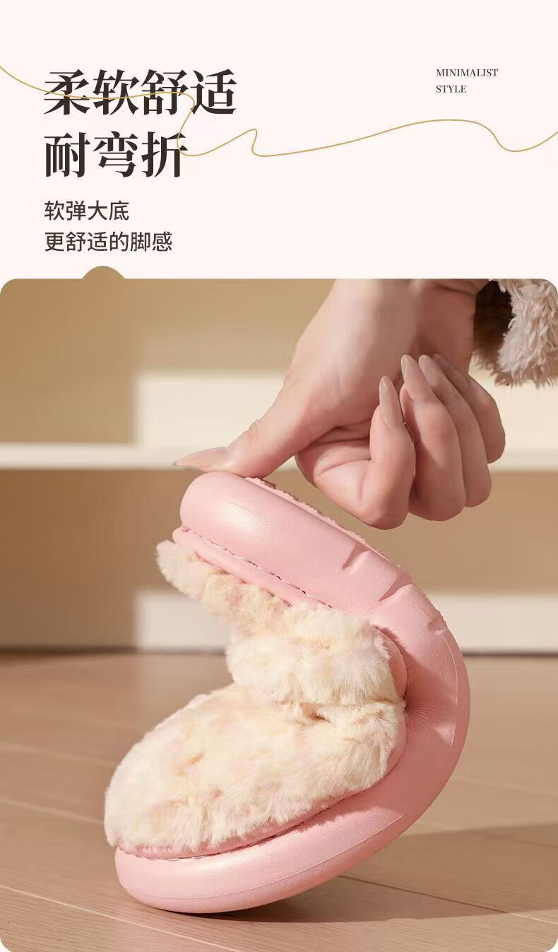 洁丽雅(grace)毛绒棉拖鞋男士冬季室内居家情侣款厚底防滑加绒保暖棉拖 pink少女粉 38-39 适合【37-38】