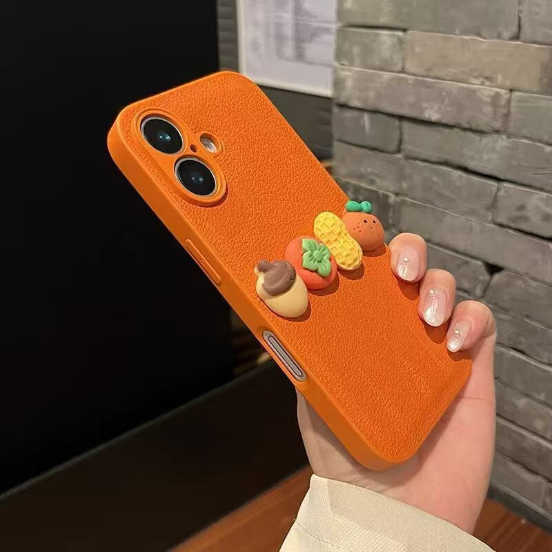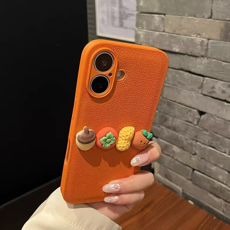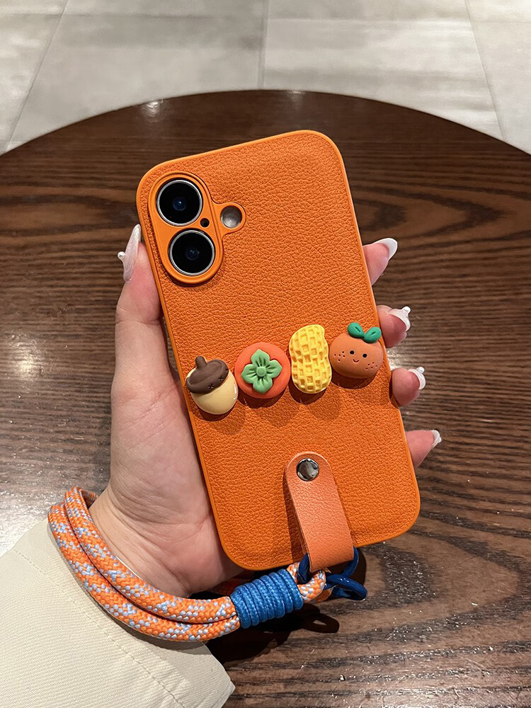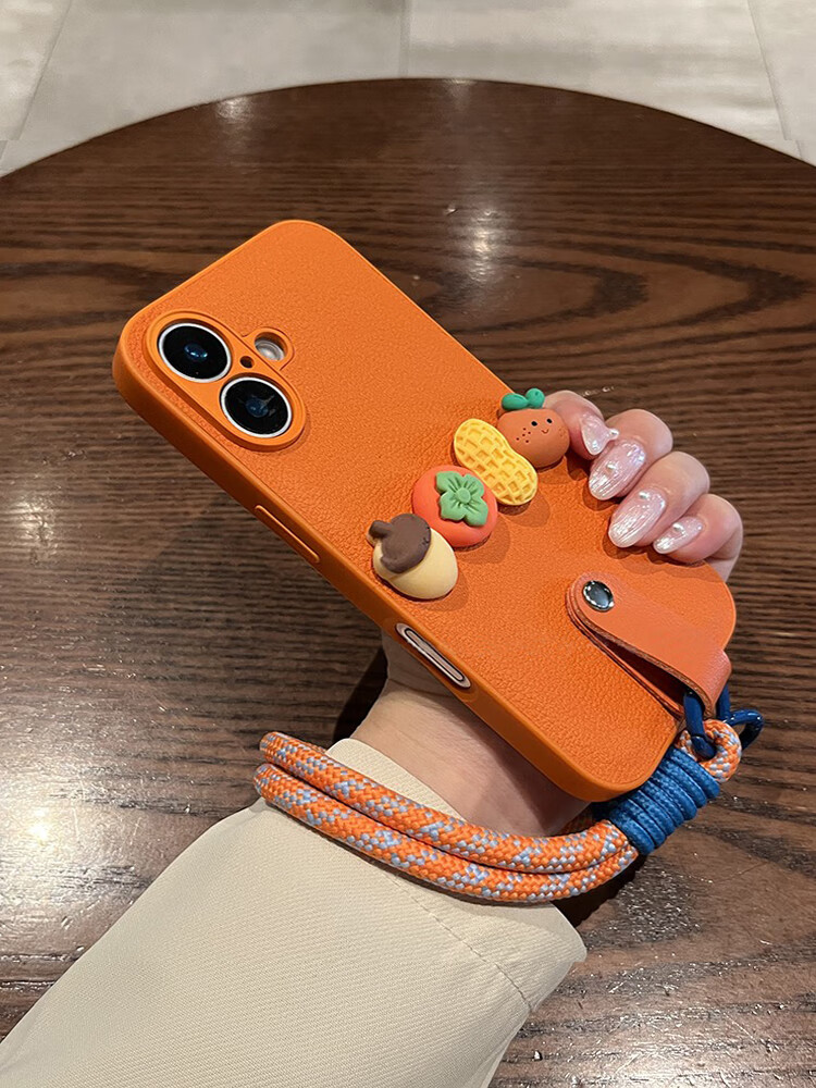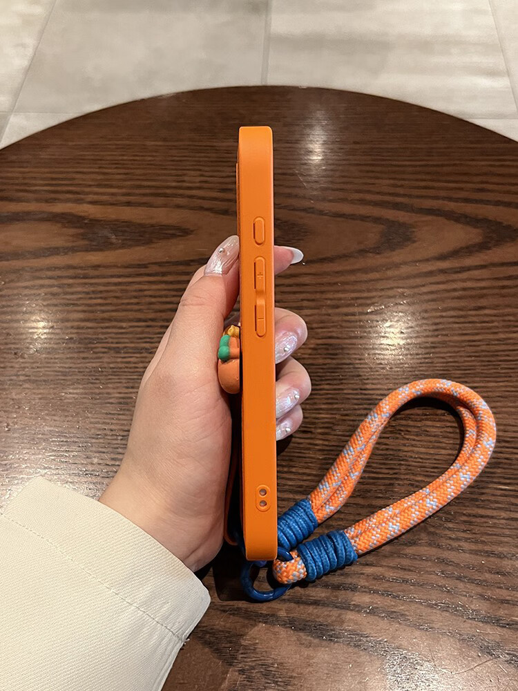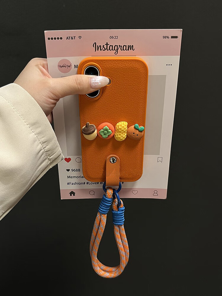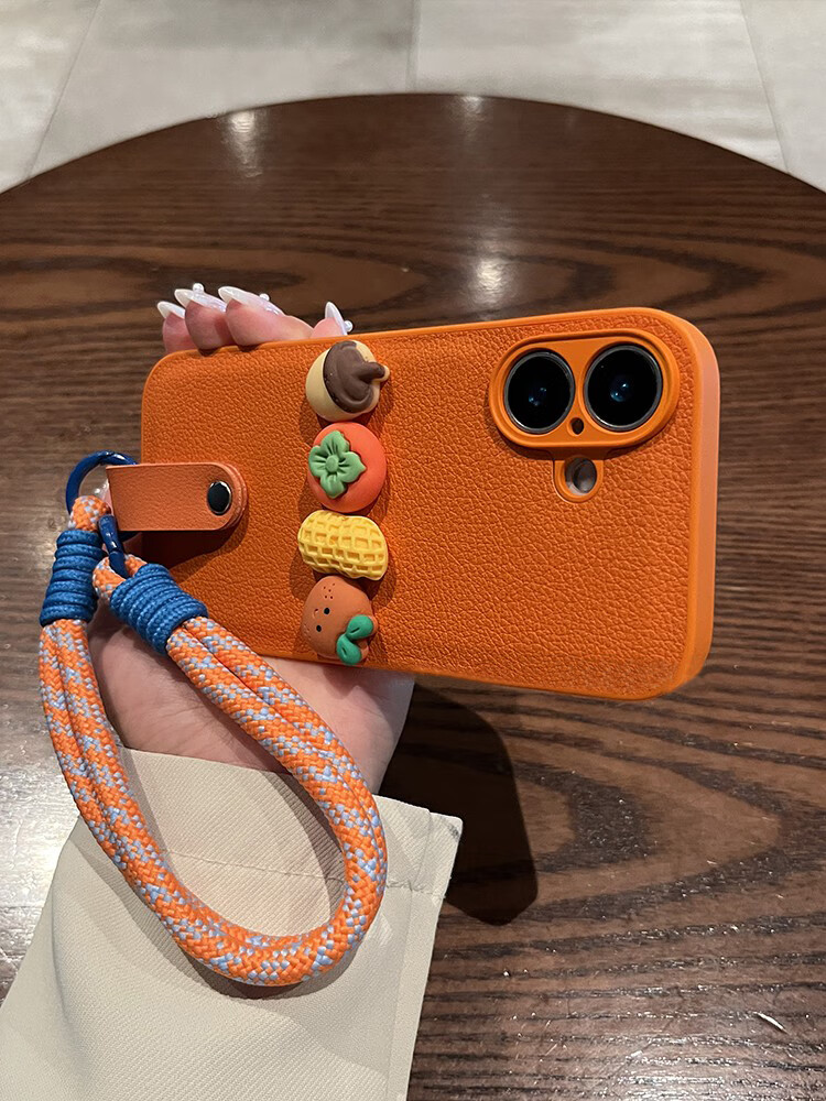 八脚兽适用苹果17手机壳新款橙素皮纹iphone16好事发生公仔15pro手提绳高级感14女款手腕绳13pro保护套 橙色素皮皮纹壳+好柿发生公仔+手提绳 iPhone 13 Promax