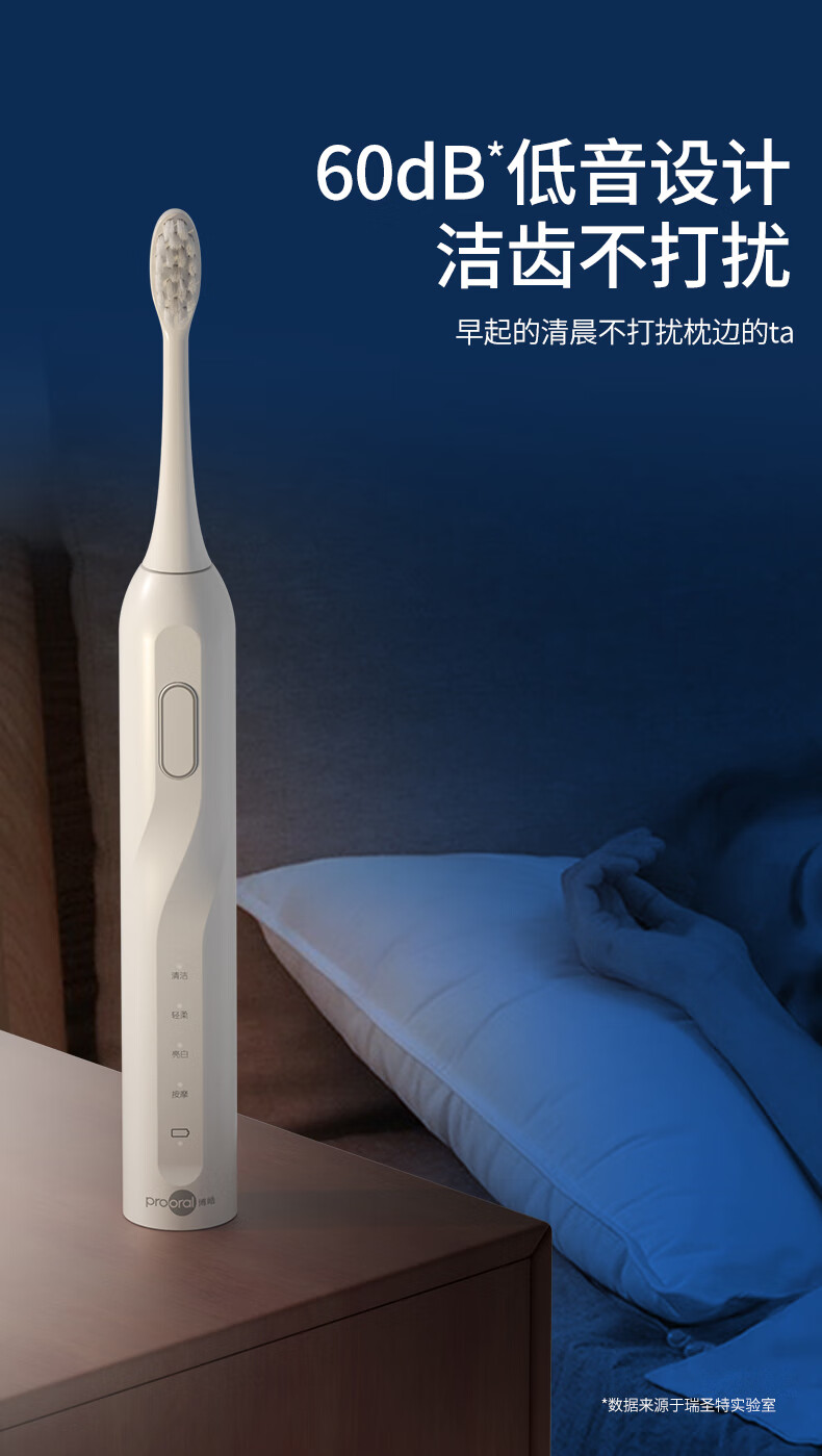 博皓(prooral)声波电动牙刷自动牙刷充电式情侣电动牙刷便携正畸牙套 智能牙刷软毛刷头 象牙白