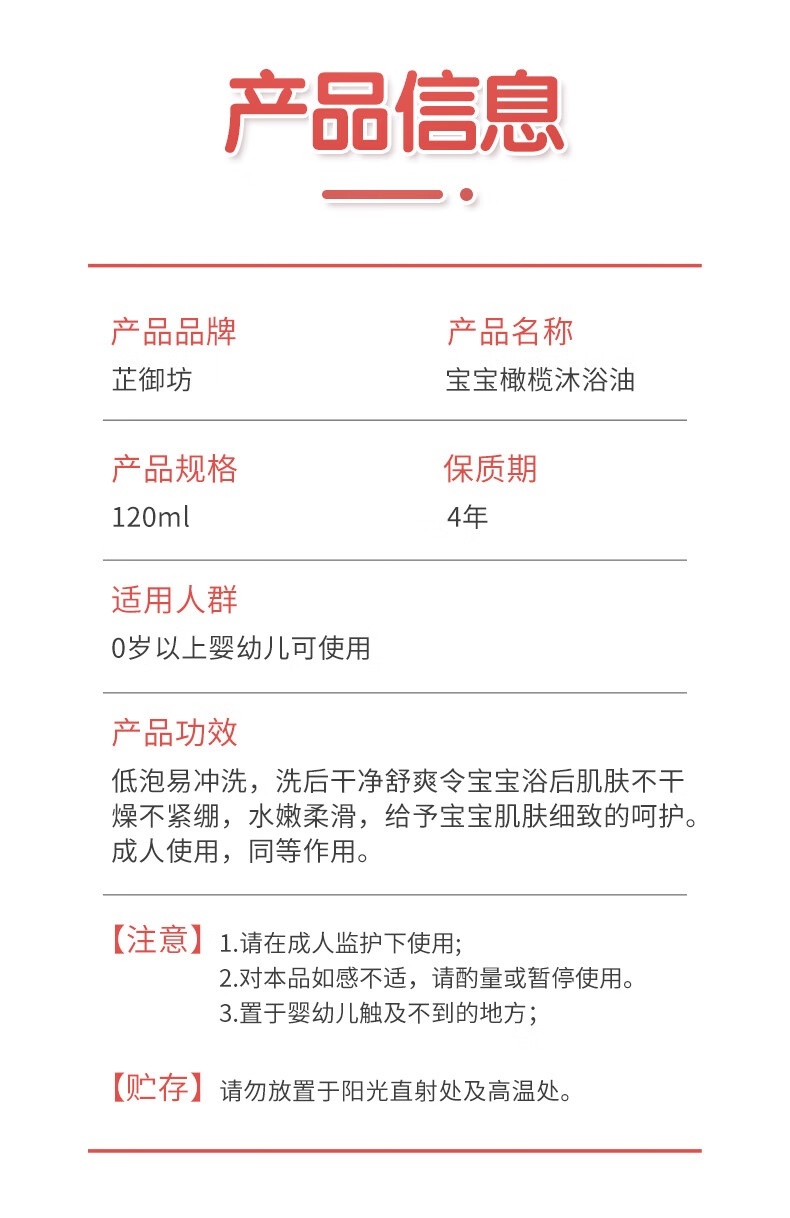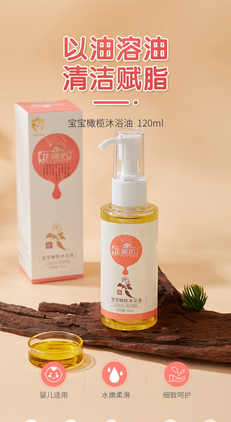 芷御坊橄榄沐浴油新生婴儿宝宝可用清洁赋脂滋润温和不干燥沐浴露沐浴油 120ml*1瓶