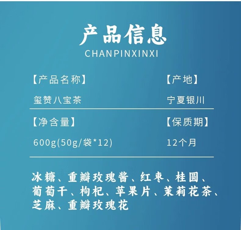 玺赞农庄宁夏特产枸杞八宝茶枸杞红枣茶袋装600g伴手礼送礼宁夏特产 *玺赞农庄八宝茶 600g 1袋