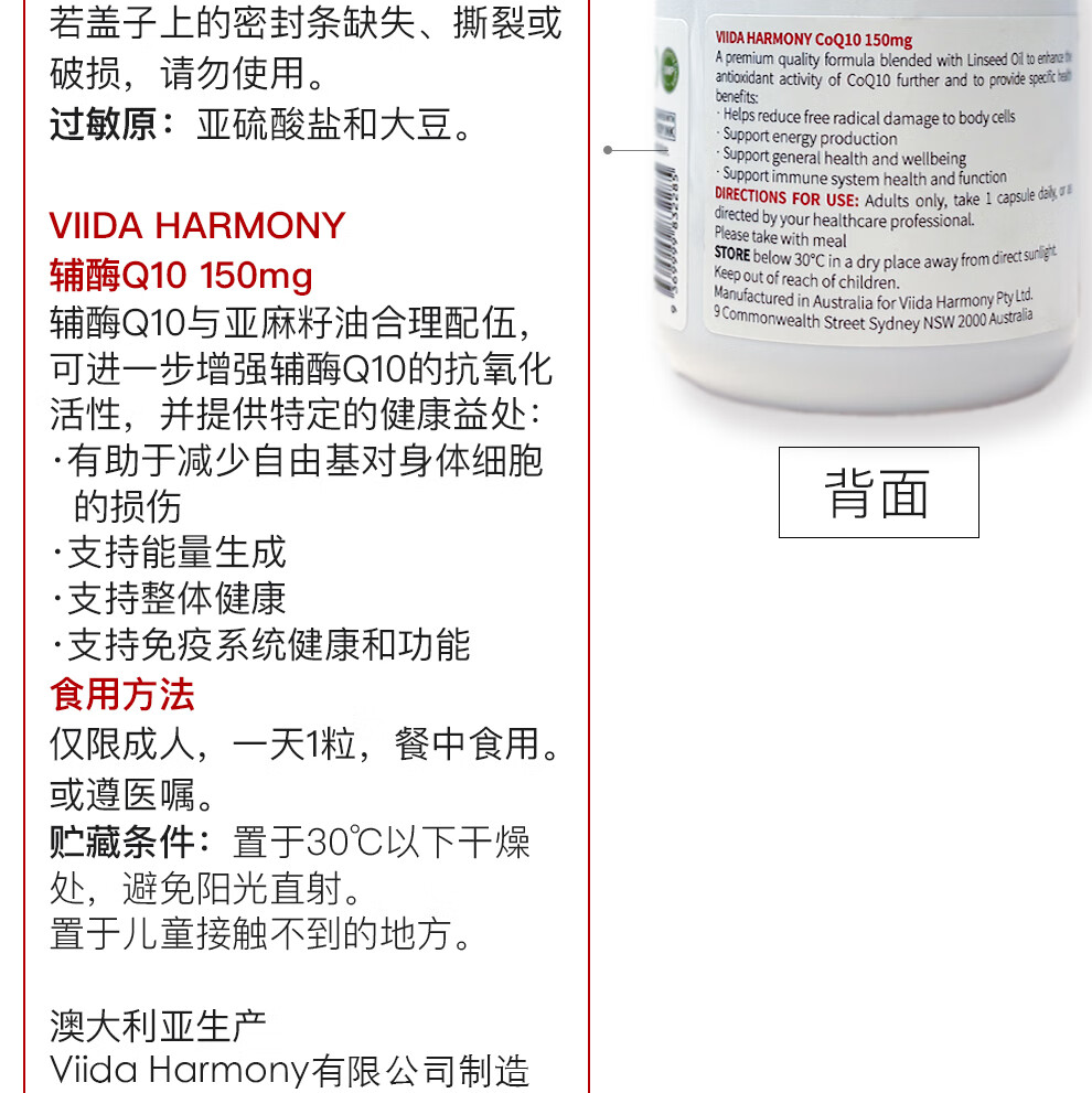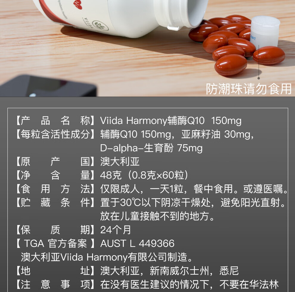 VIIDA HARMONY澳洲进口护心脏辅酶Q10+滋润皮肤高原旅游高反角鲨烯 1瓶辅酶Q10+1瓶角鲨烯 60粒*1瓶