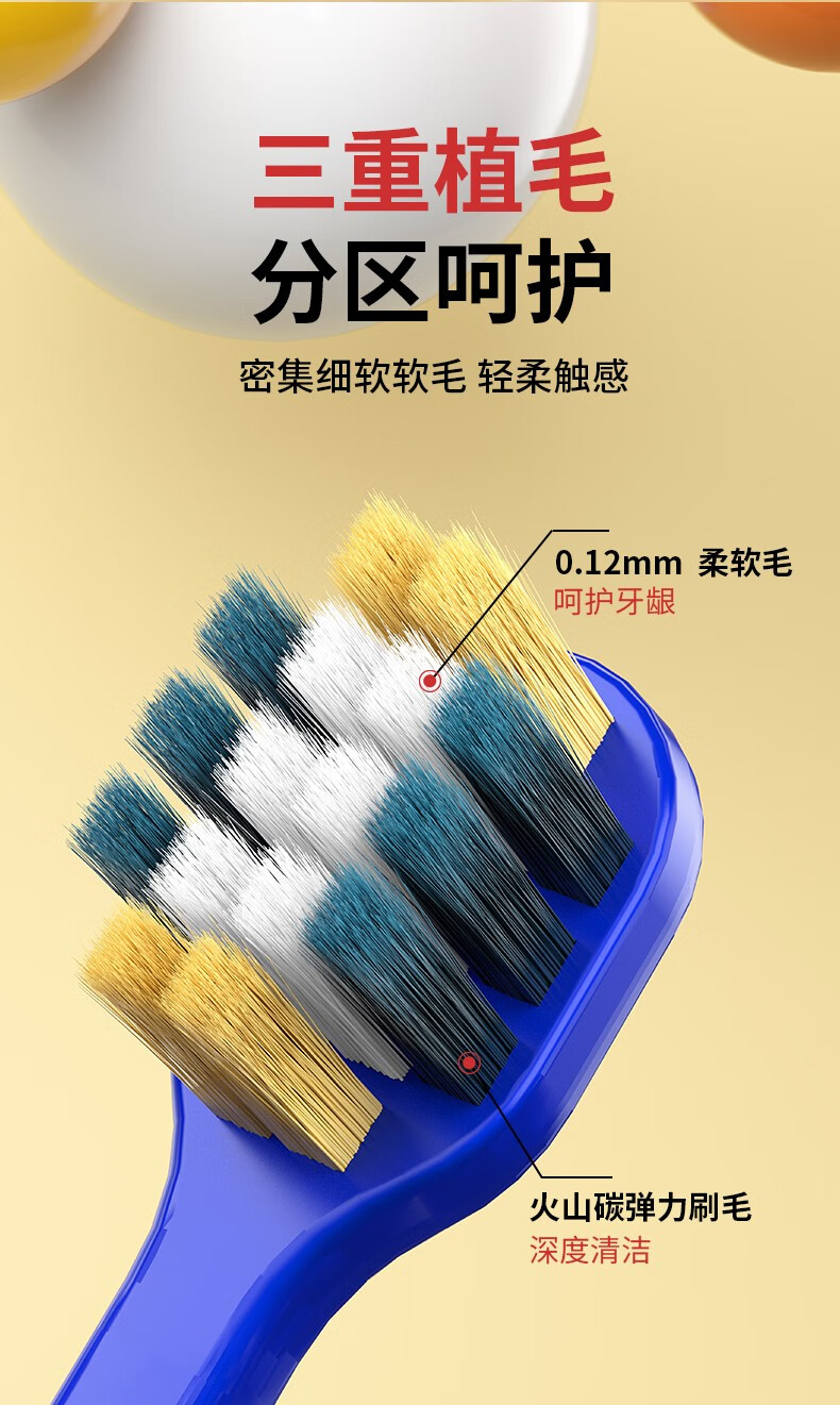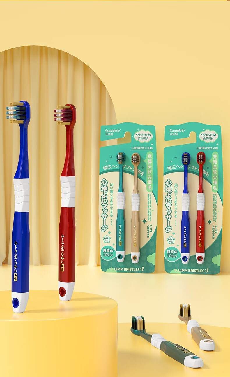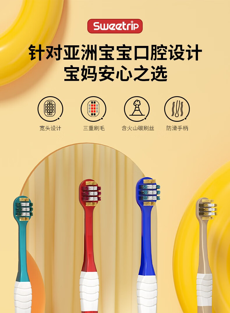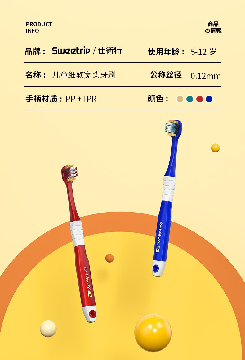 Sweetrip仕卫特日本儿童牙刷细软绵柔护齿幼儿6-12岁宝宝护龈16孔软毛牙刷 【火山碳丝】随机颜色-2卡4支