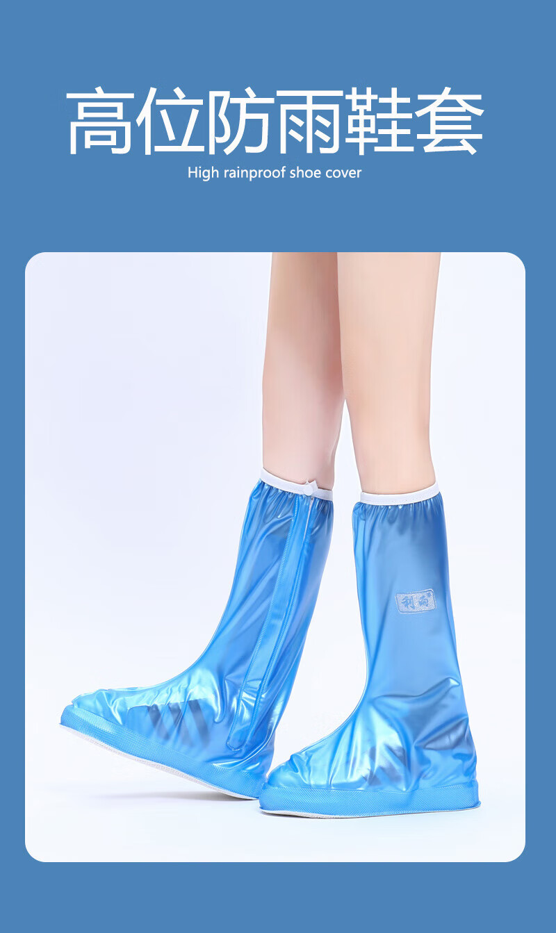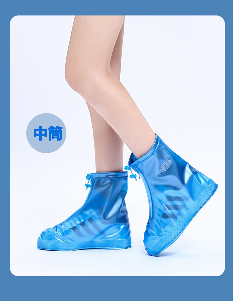 【优选好物】防水鞋套成人男女雨靴防滑加厚耐磨硅胶雨鞋套中高筒 水墨蓝高筒双层加厚鞋底+2年质 M34一36