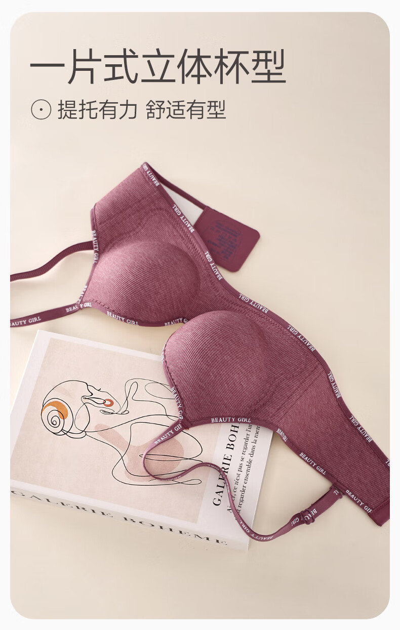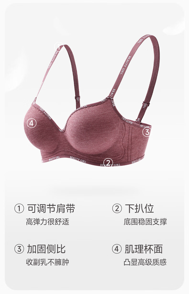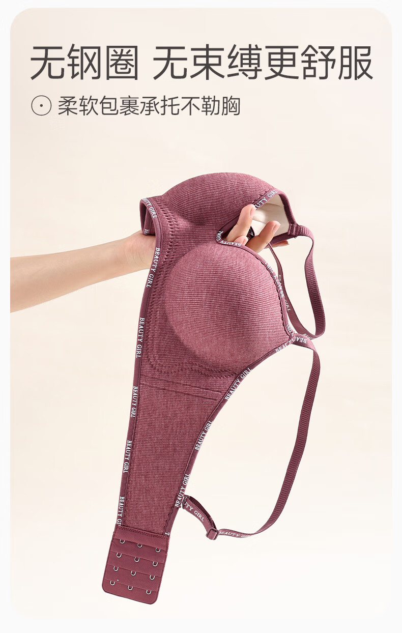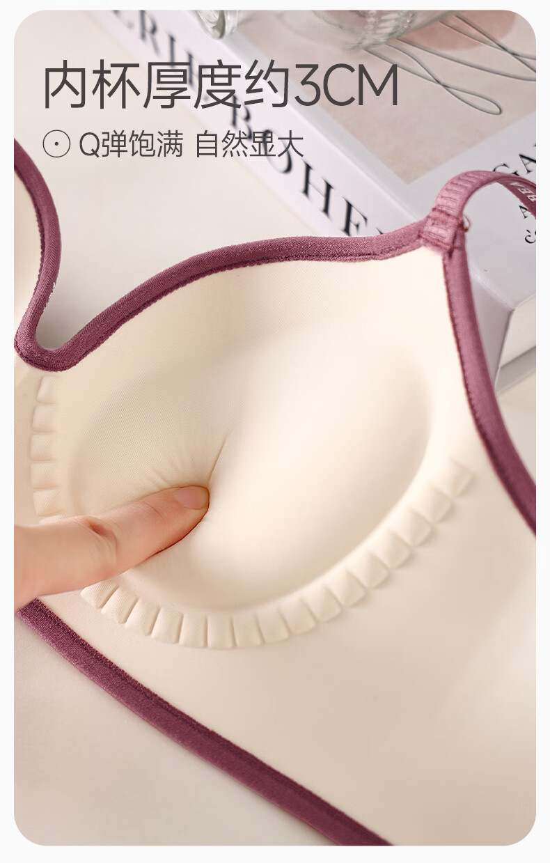 芬腾舒适聚拢防下垂收副乳透气无痕无钢圈大胸小胸一体式女士文胸罩 1173花灰 【小胸显大立体】 M 【推荐75ABC】