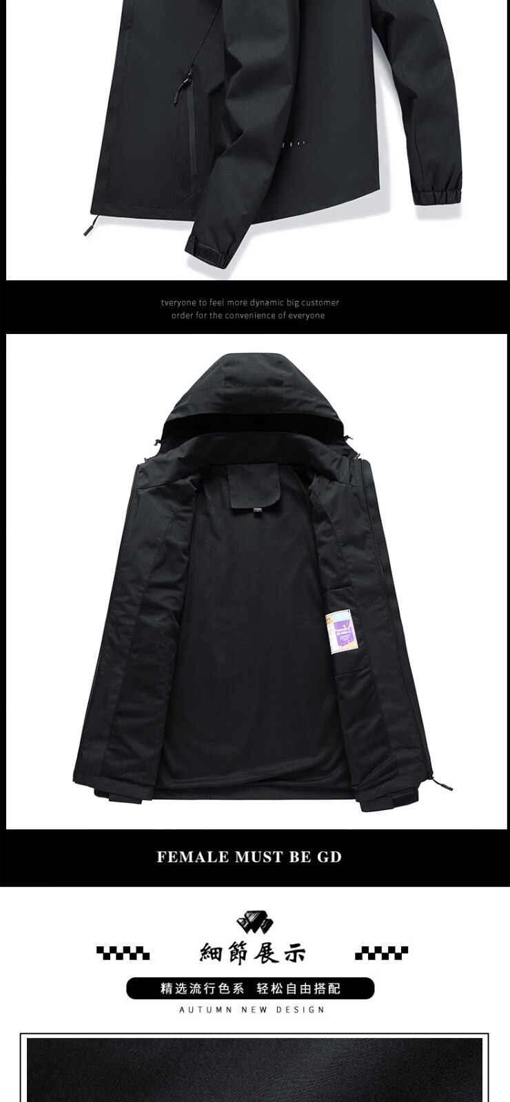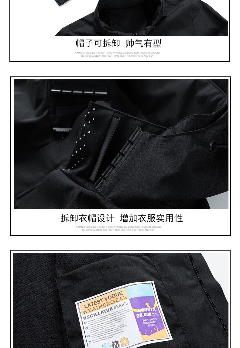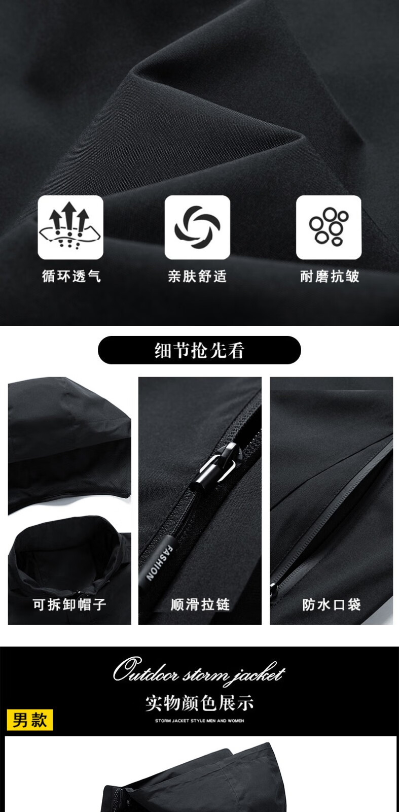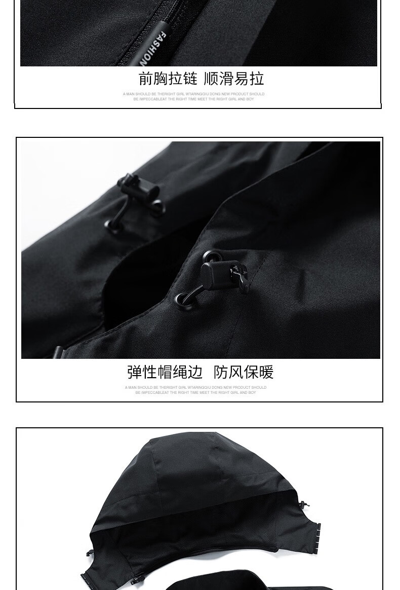 金盾冲锋衣外套男春秋青年夹克可拆帽情侣外套 男款【深灰】 2XL