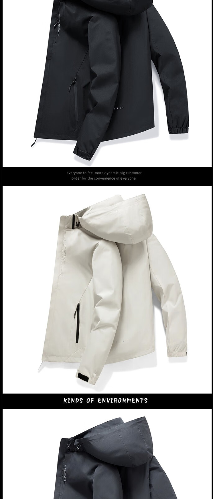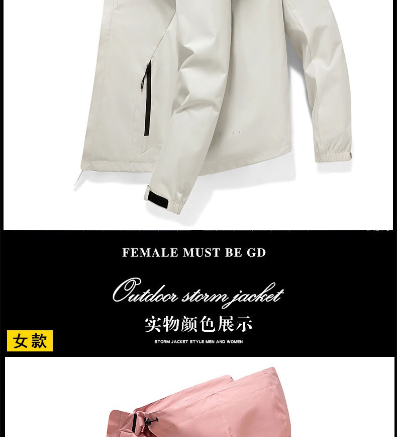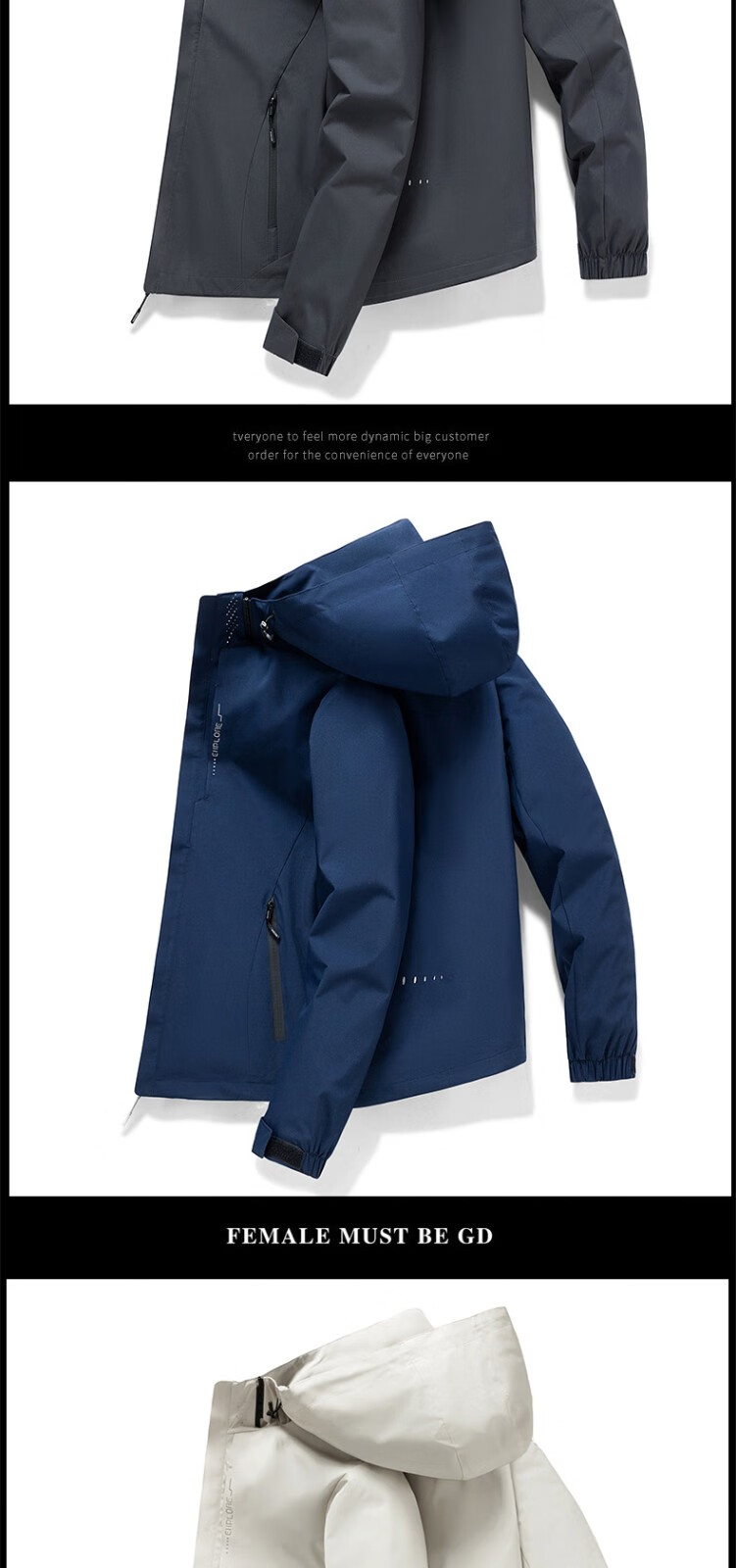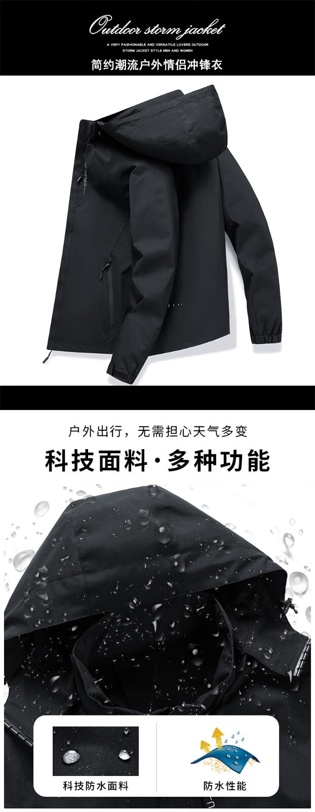 金盾冲锋衣外套男春秋青年夹克可拆帽情侣外套 男款【深灰】 2XL