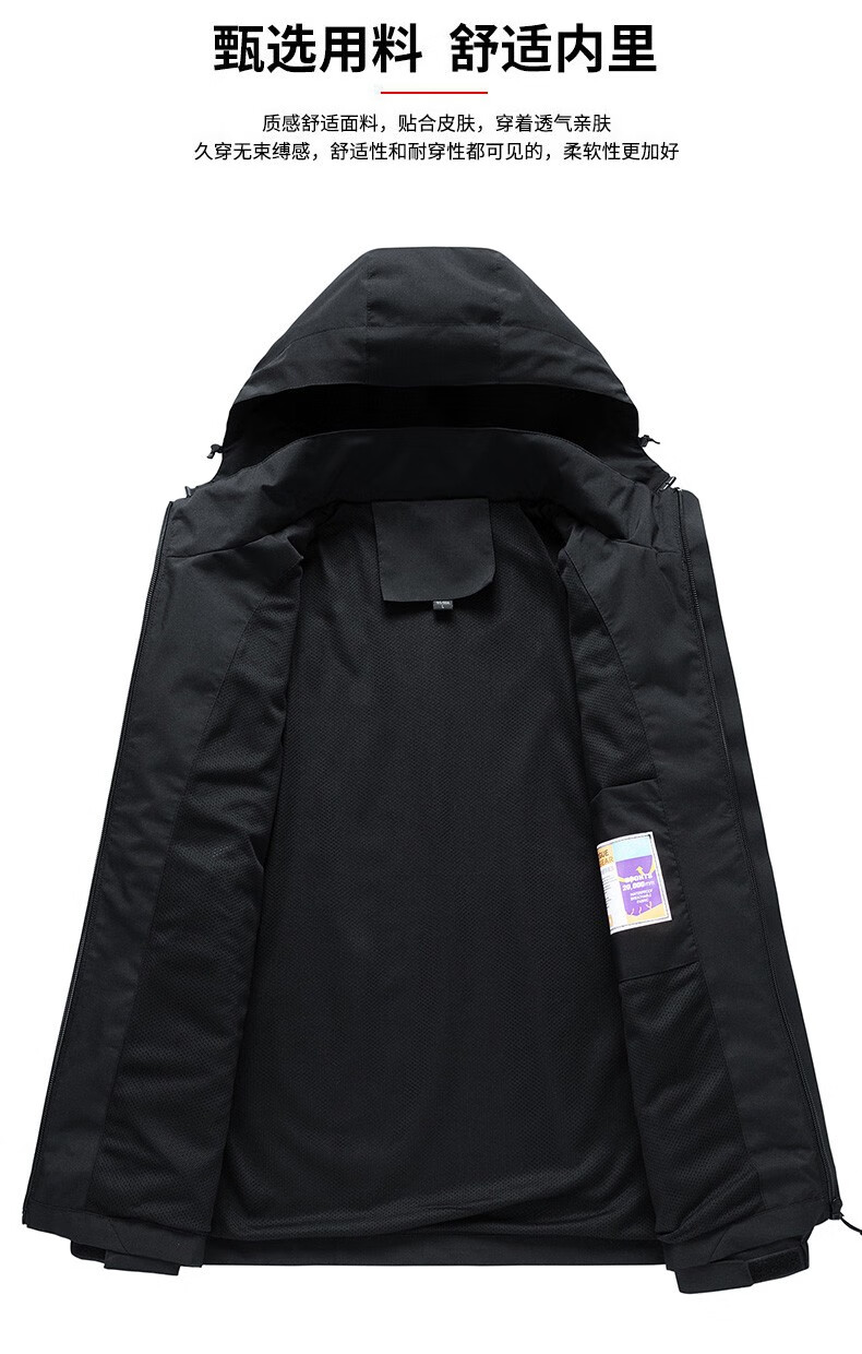 JEEP SPIRIT吉普冲锋衣三合一情侣款秋冬季加厚两件套防风防水保暖棉服外套男 女款-黑色B【三合一两件套】 XL