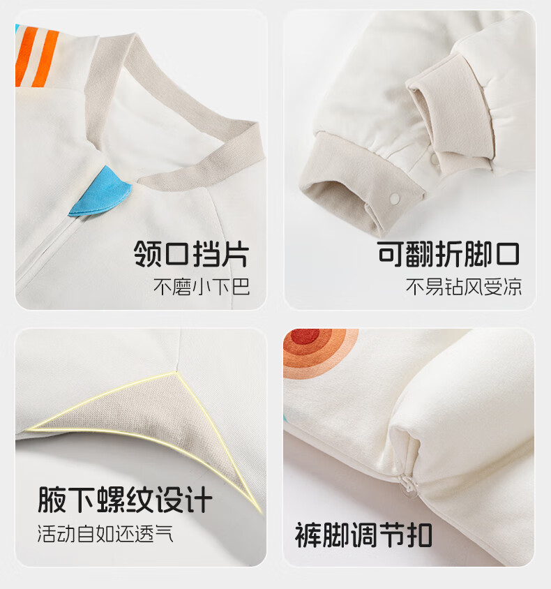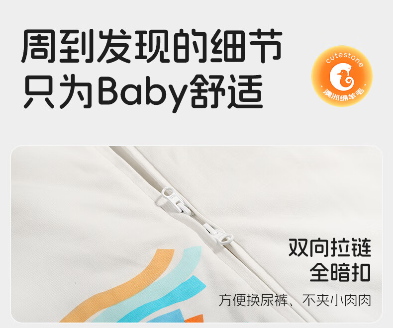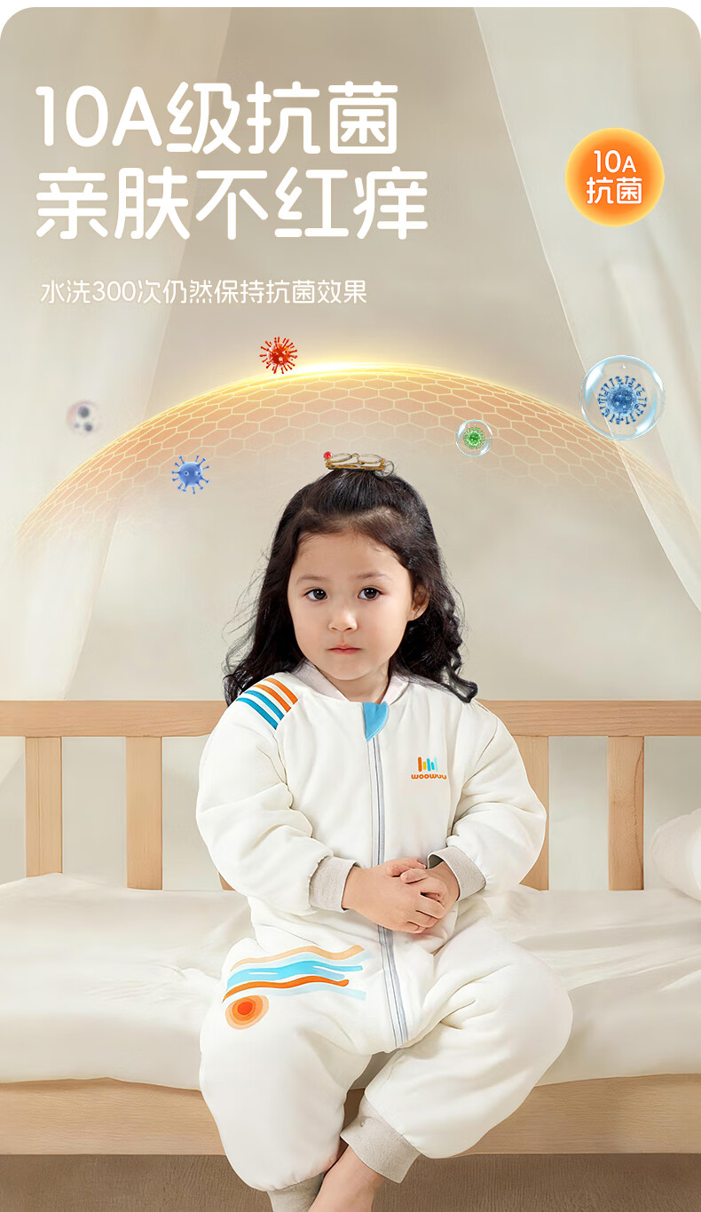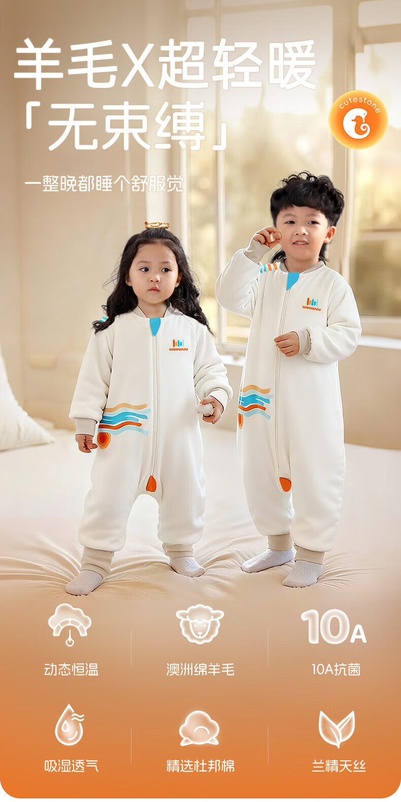 盟石(cute stone)婴儿睡袋1-3岁秋冬宝宝睡袋冬季加厚防寒儿童睡袋3-6岁秋冬防踢被 10A抗菌-秋冬中厚【羊毛×恒温 推荐室温10-20°】 100码(建议身高95-105cm)适龄3-4岁