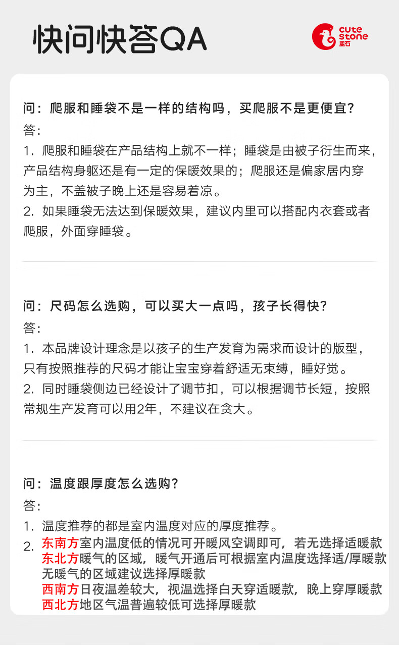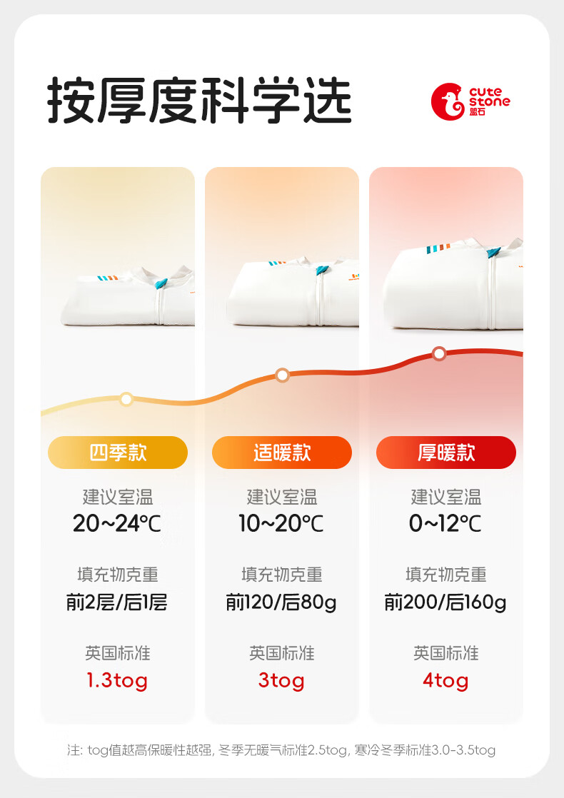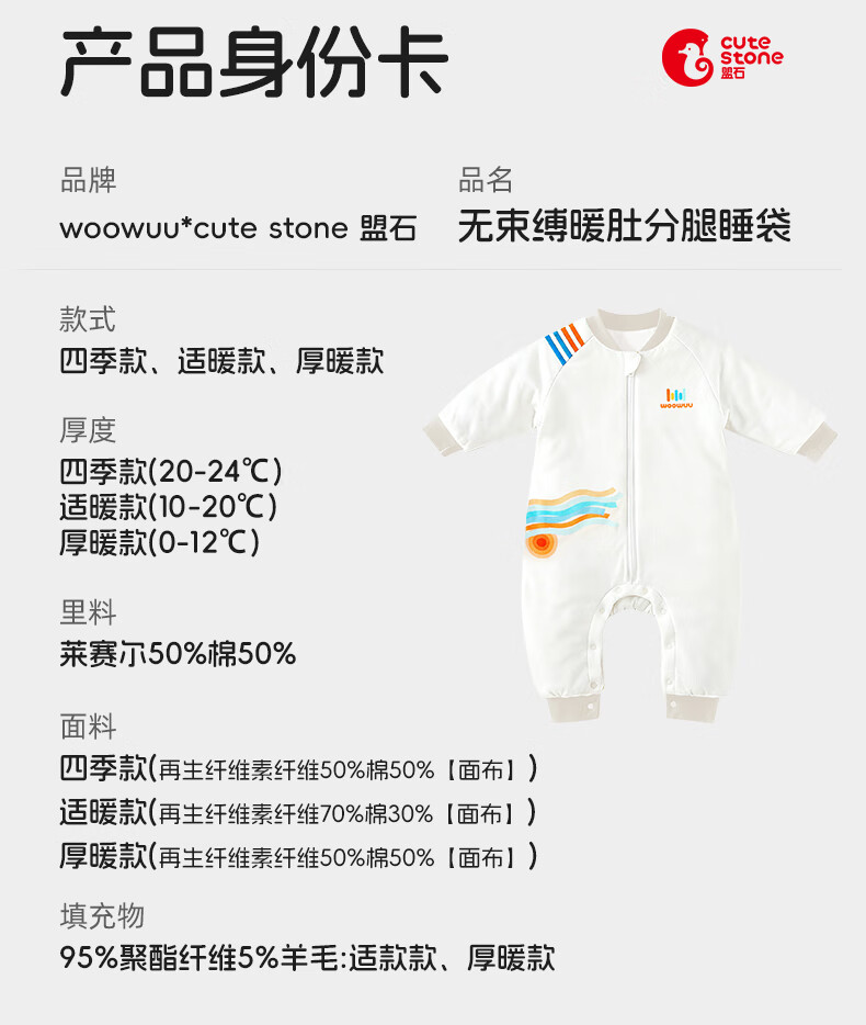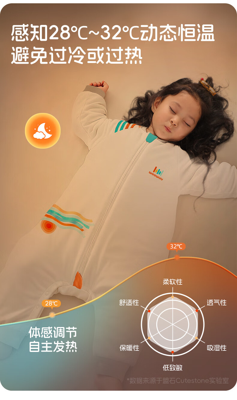 盟石(cute stone)婴儿睡袋1-3岁秋冬宝宝睡袋冬季加厚防寒儿童睡袋3-6岁秋冬防踢被 10A抗菌-秋冬中厚【羊毛×恒温 推荐室温10-20°】 100码(建议身高95-105cm)适龄3-4岁