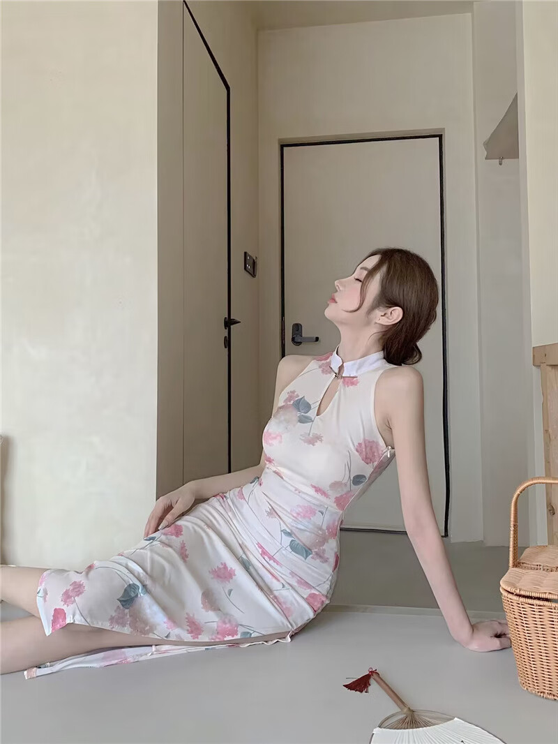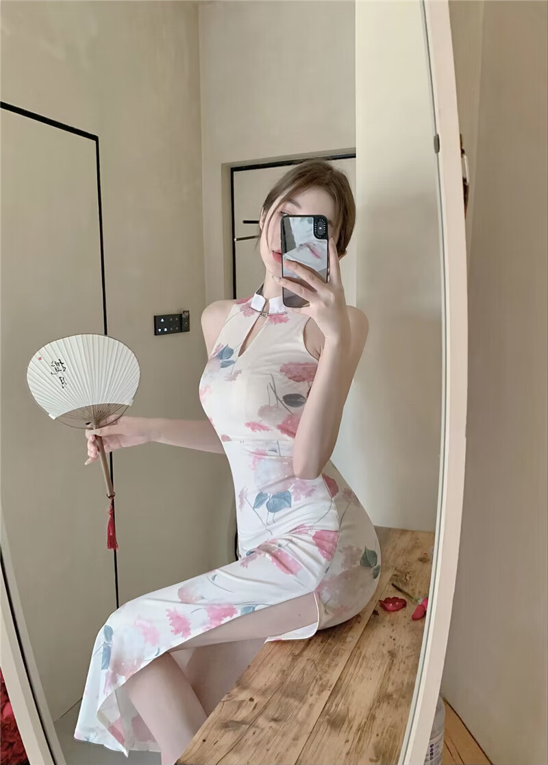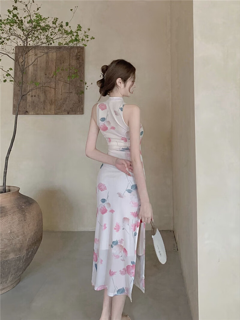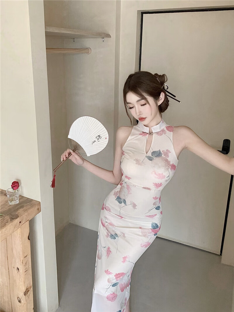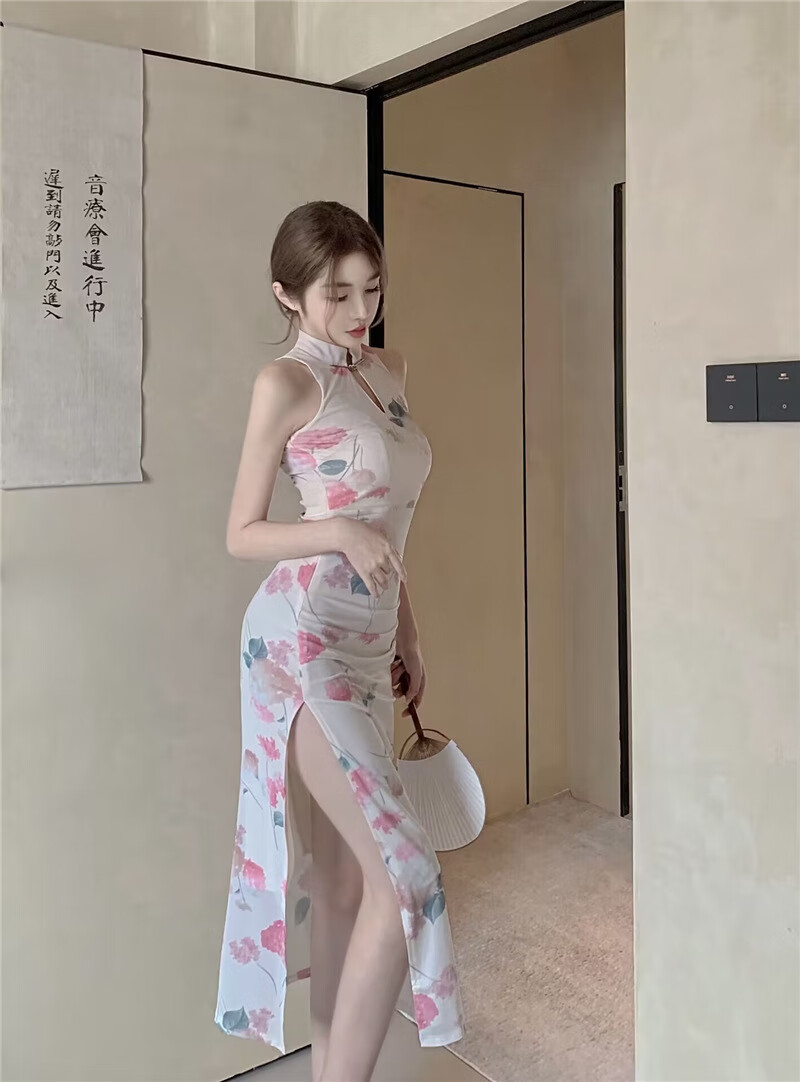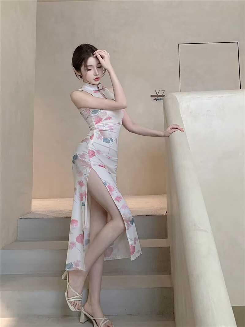 【优选】新中式御姐复古改良旗袍女早春夏季性感网纱高开叉露肩挂 图片色【双层网纱】 M