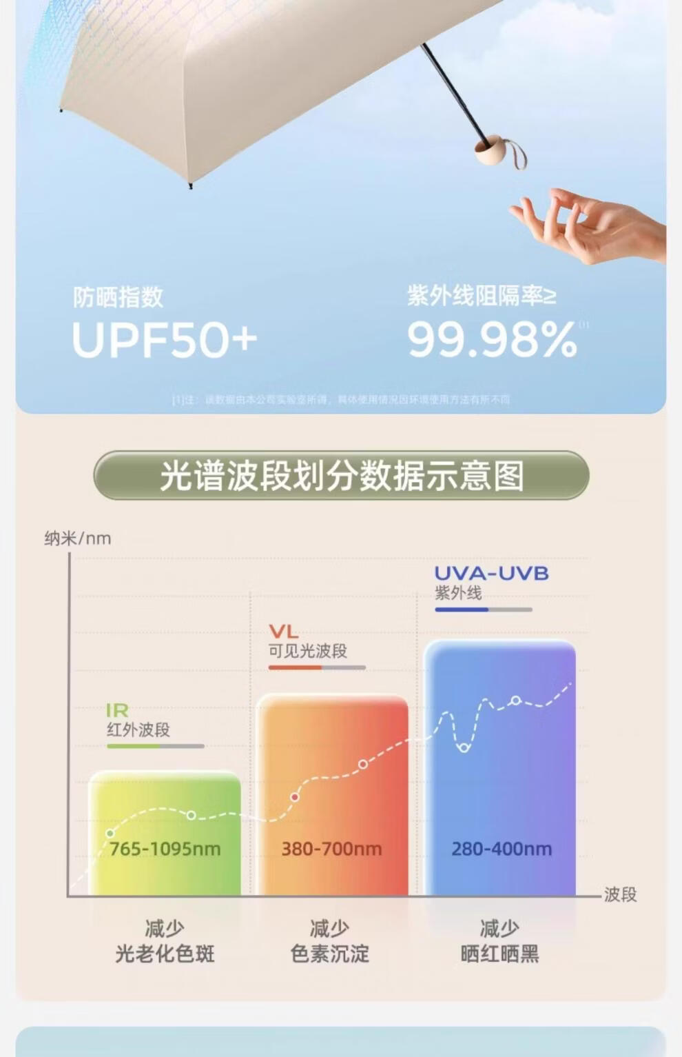 蕉下(beneunder)防紫外线遮阳伞三折倍护黑胶晴雨伞防晒伞野花BM398澄塘游兰