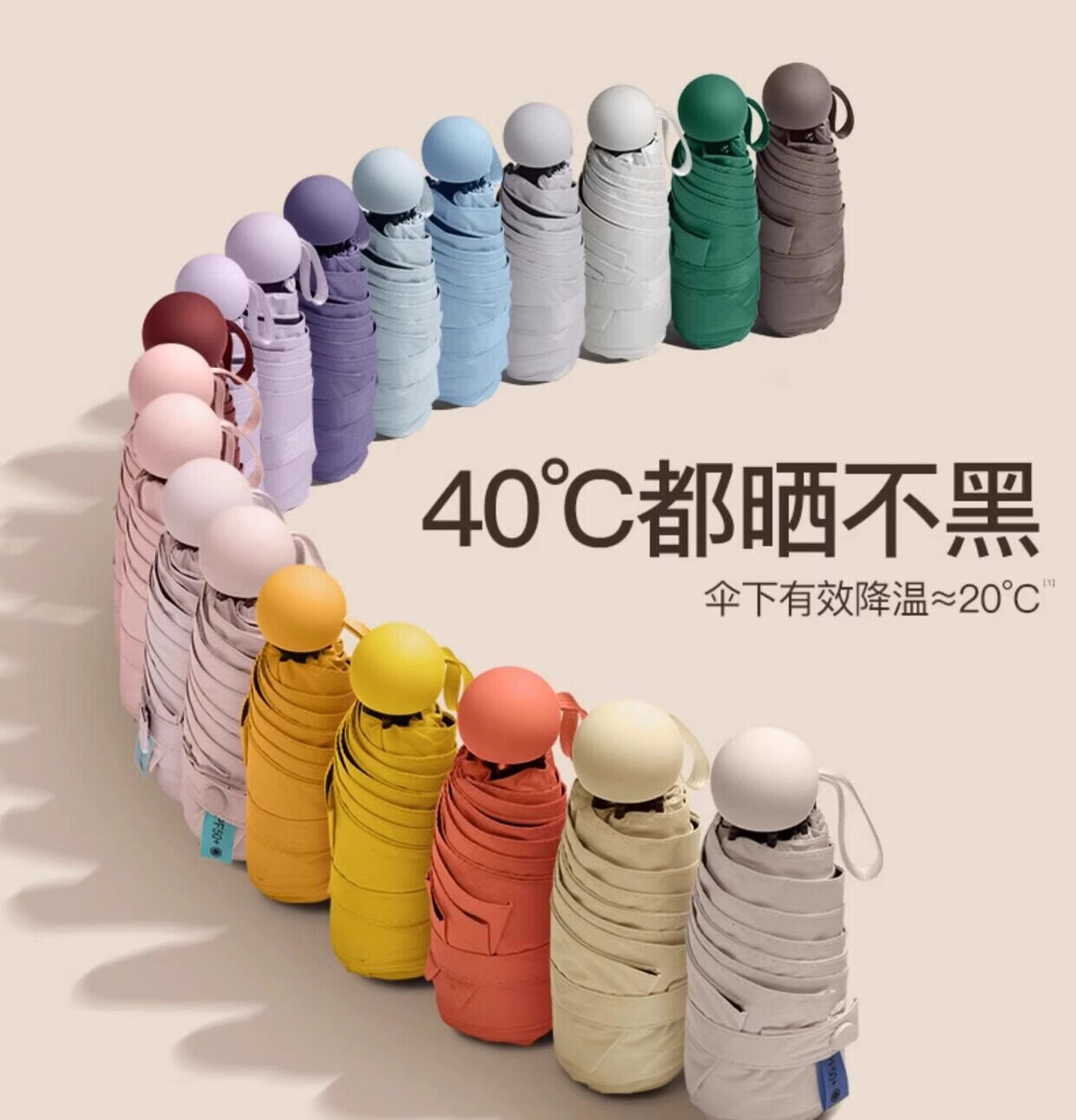 五折伞迷你便携小巧胶囊伞遮阳晴雨伞两用太阳伞女定制 粉色(布袋装)